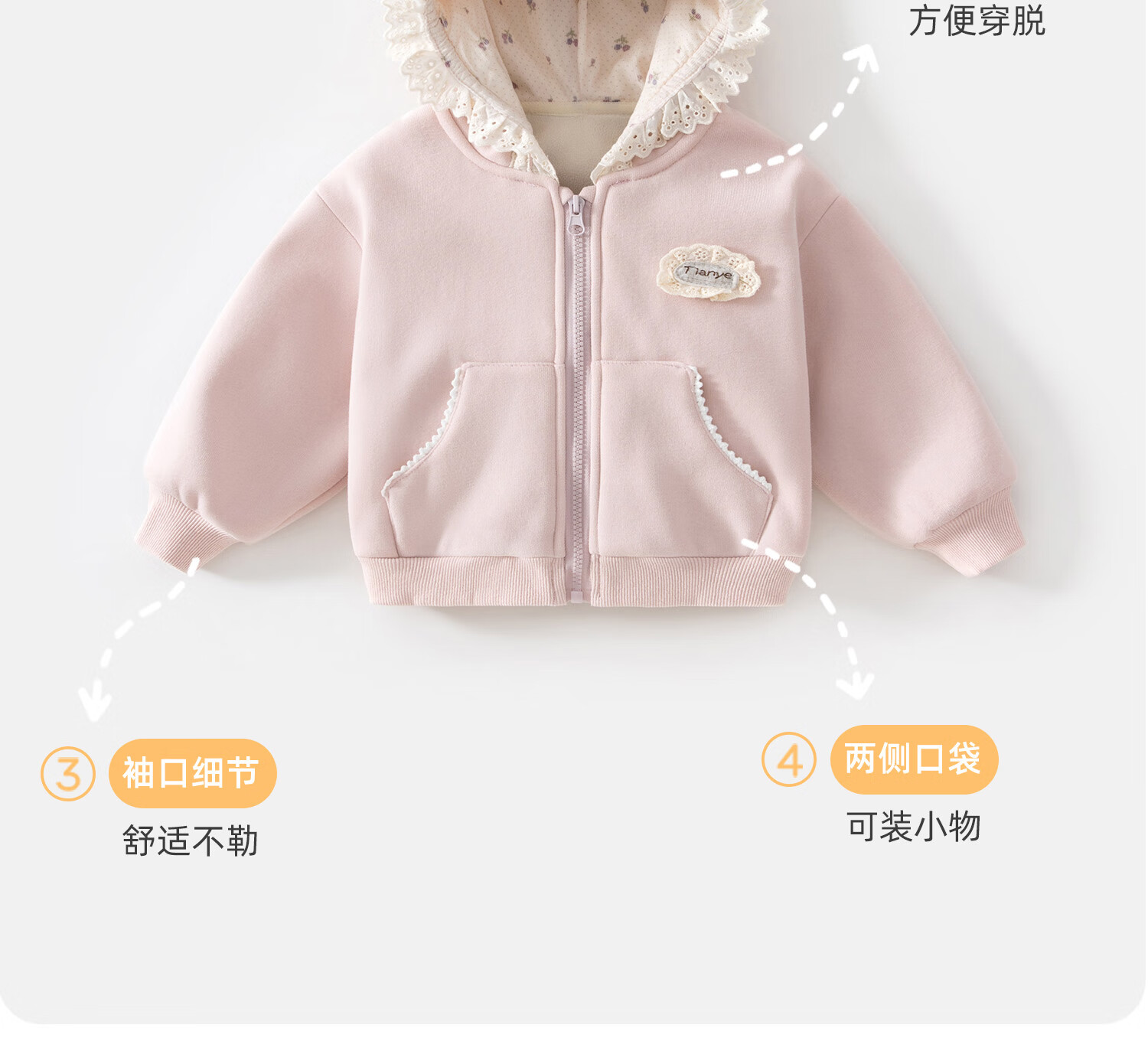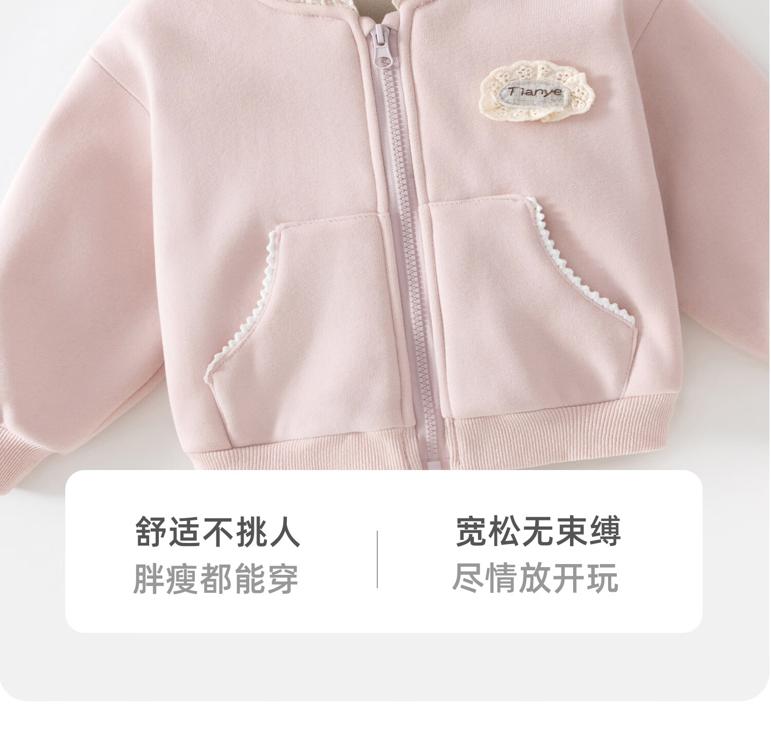 班喜迪女童外套秋冬装2025新款女宝宝秋季加绒上衣儿童洋气连帽开衫卫衣 粉色 加绒 90