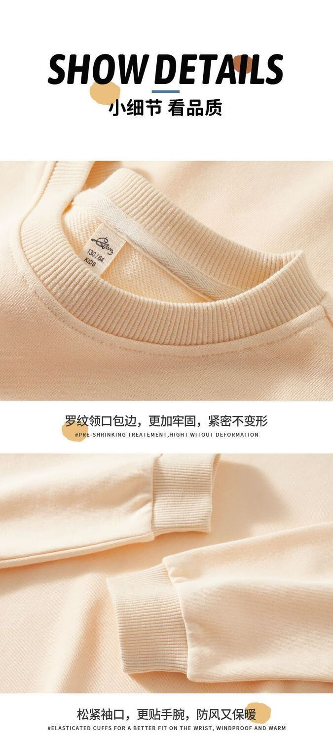 真维斯童装女童套装春秋款女孩百搭束腿裤儿童秋装新中式国风卫衣 杏色+纯色束口裤-杏色 150 【推荐68-80斤】