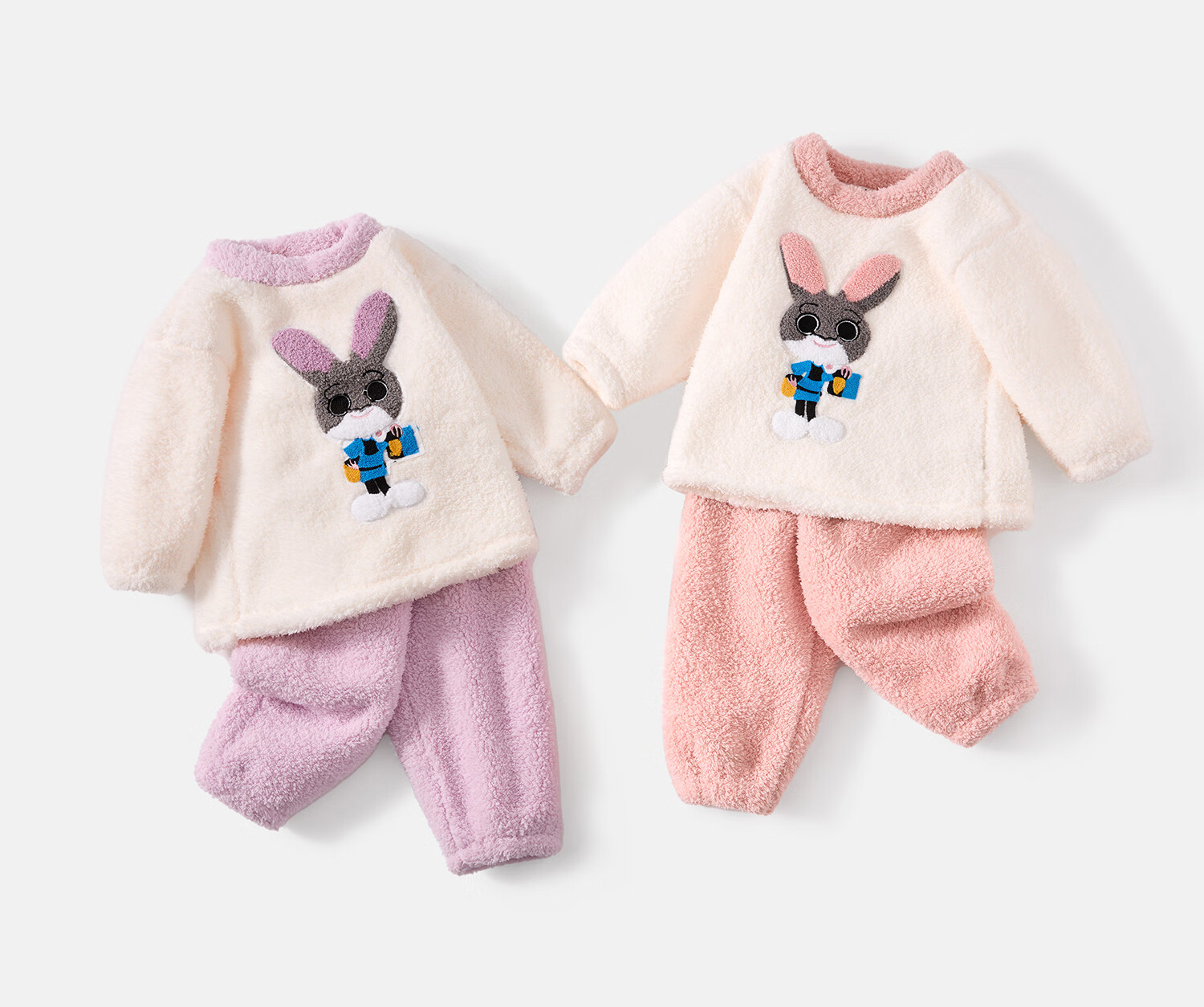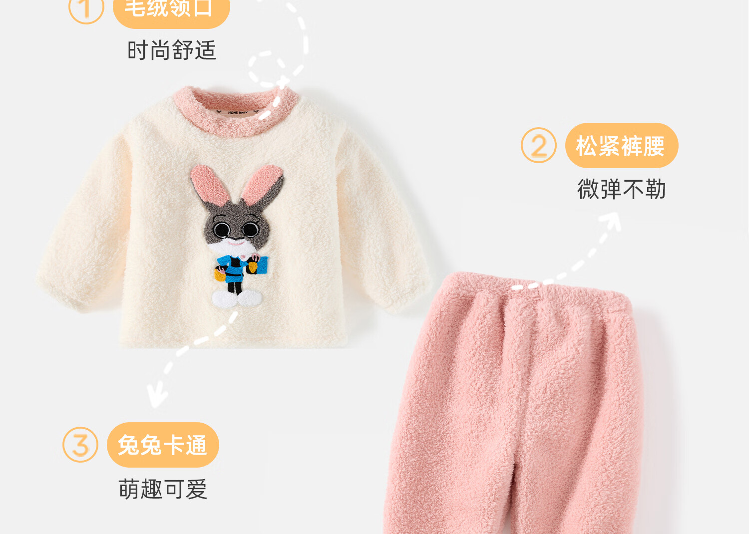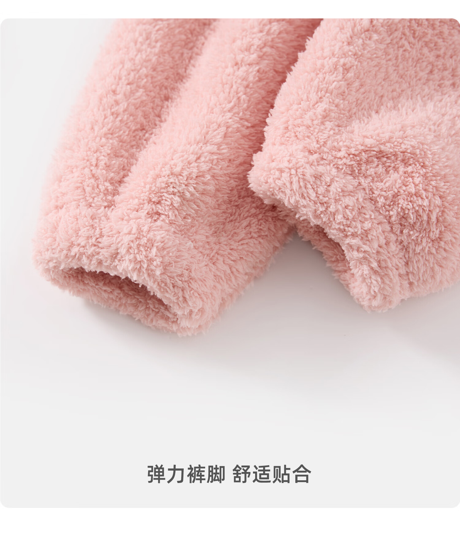 班喜迪女童睡衣秋冬装2025新款儿童加绒珊瑚绒套装女宝宝睡裤冬季家居服 紫色 110
