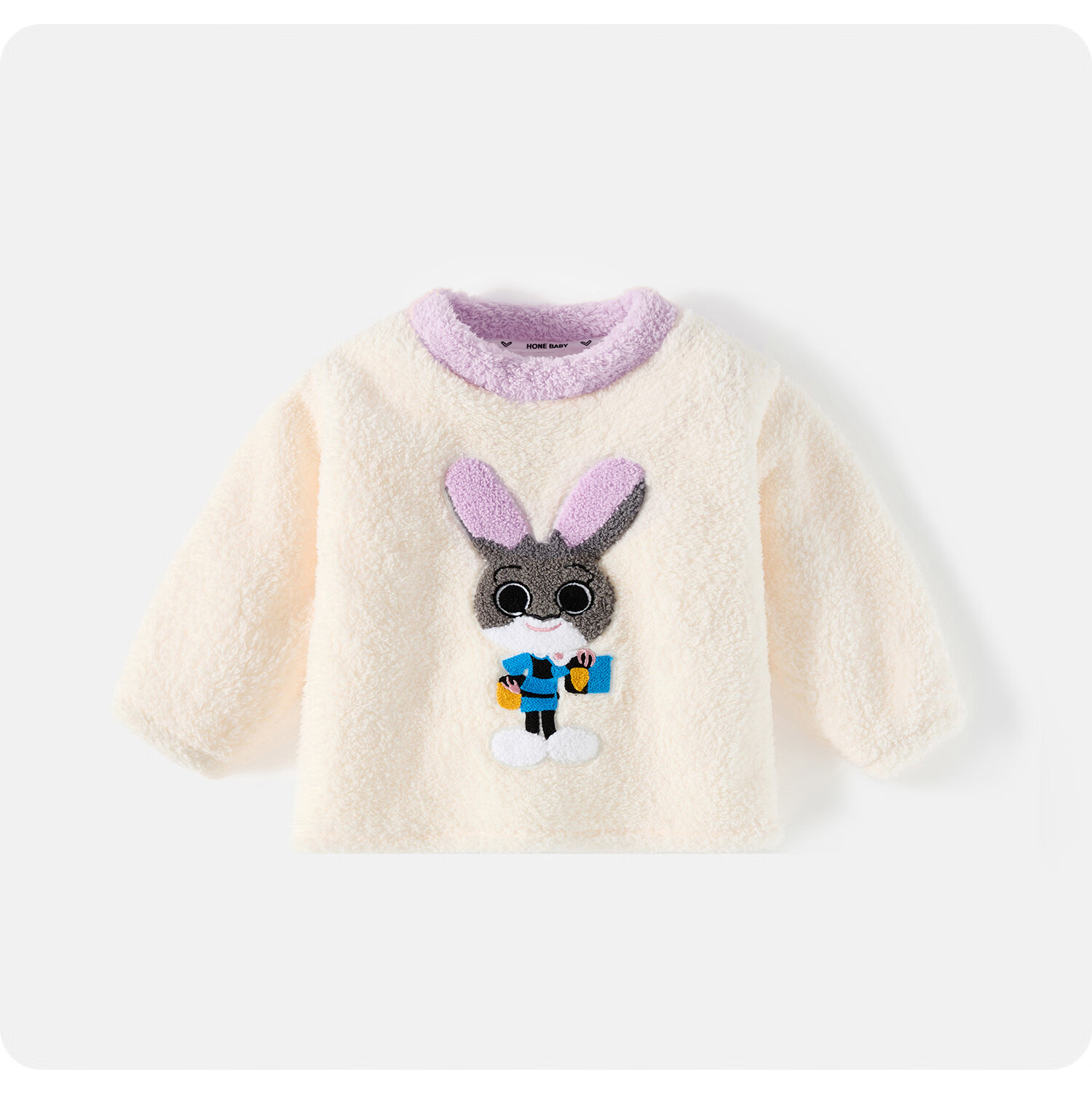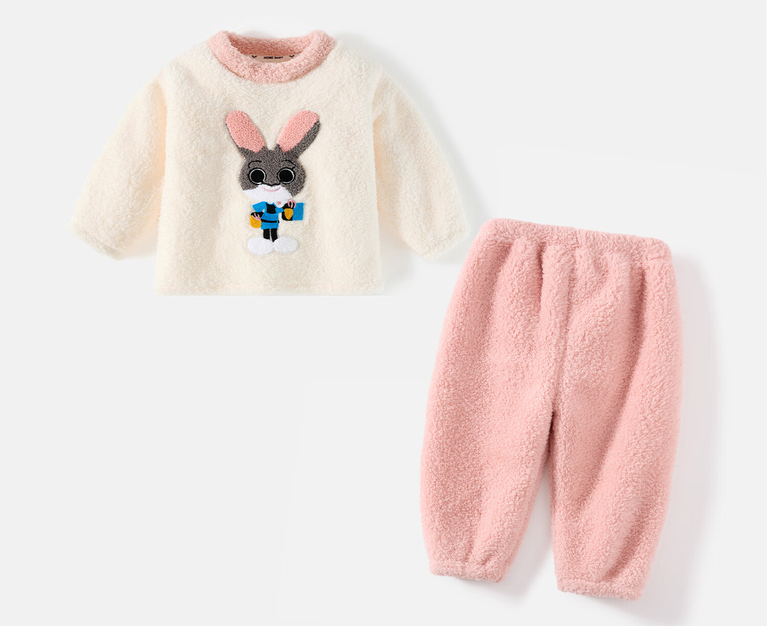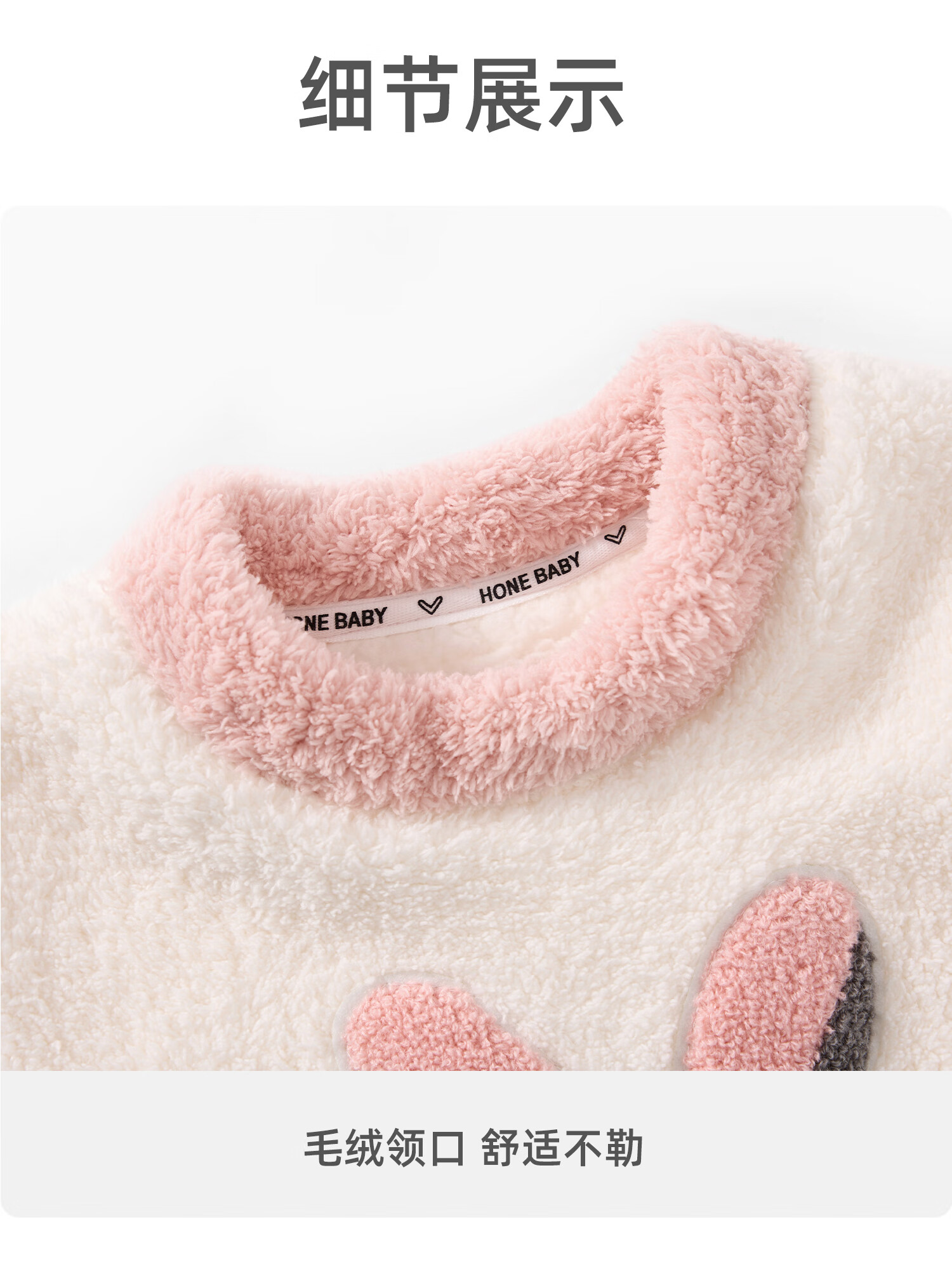 班喜迪女童睡衣秋冬装2025新款儿童加绒珊瑚绒套装女宝宝睡裤冬季家居服 紫色 110