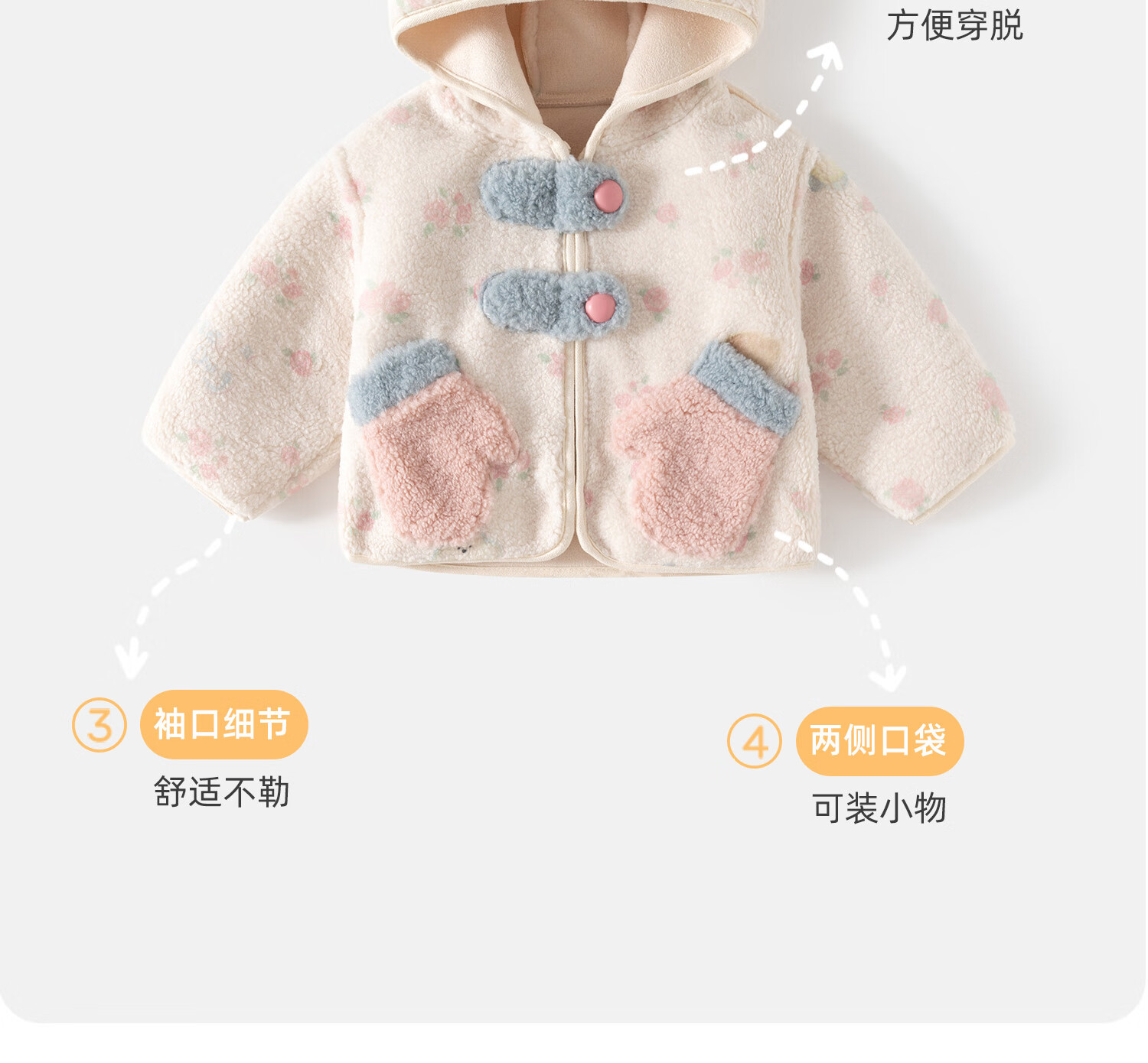 Banxidi Girls' Jacket Autumn and Winter Clothing 2025 New Children's Princess Style Polar Fleece Hooded Top Baby Autumn Children's Clothing Beige 90