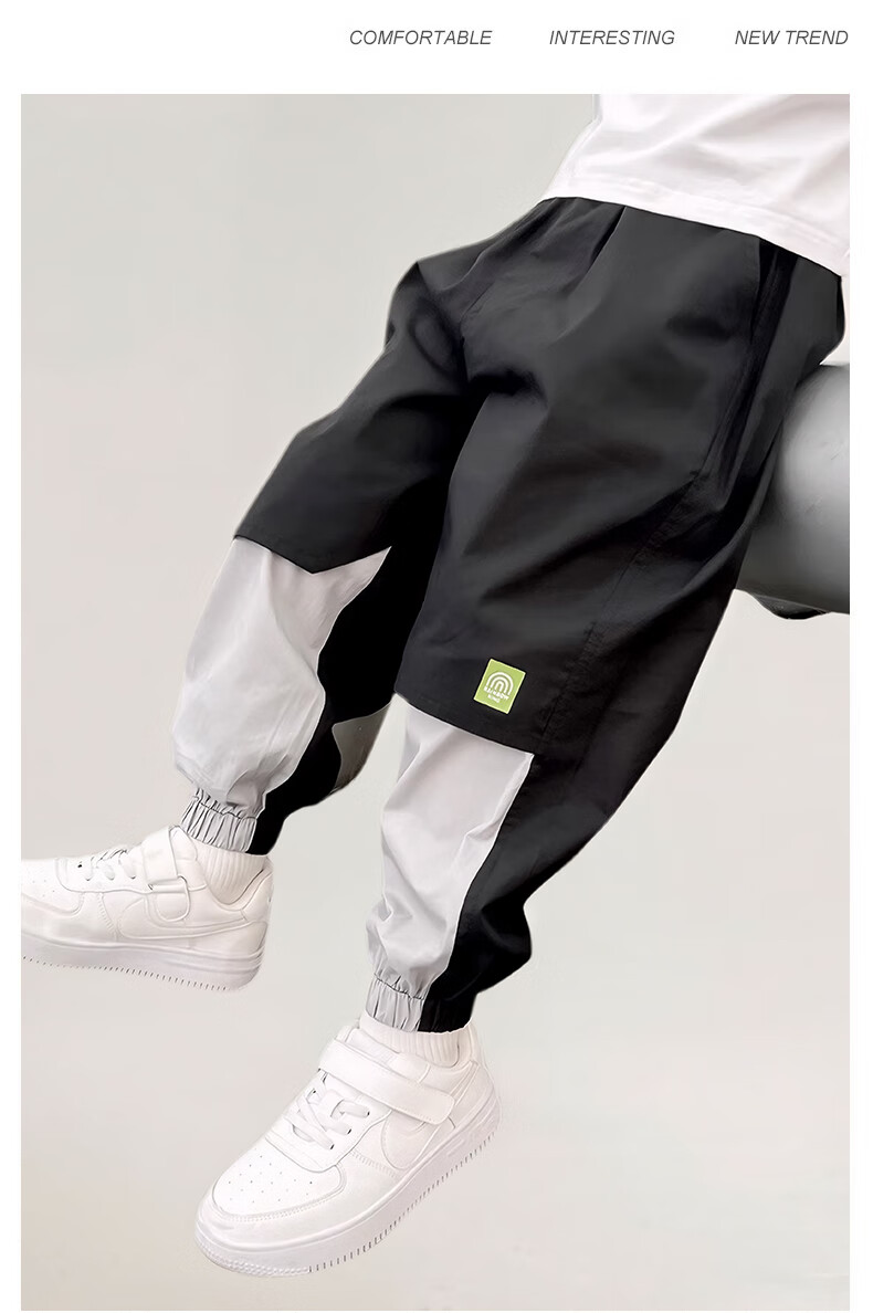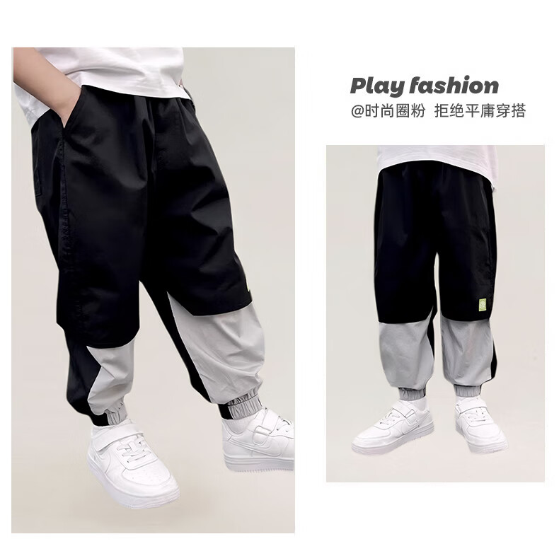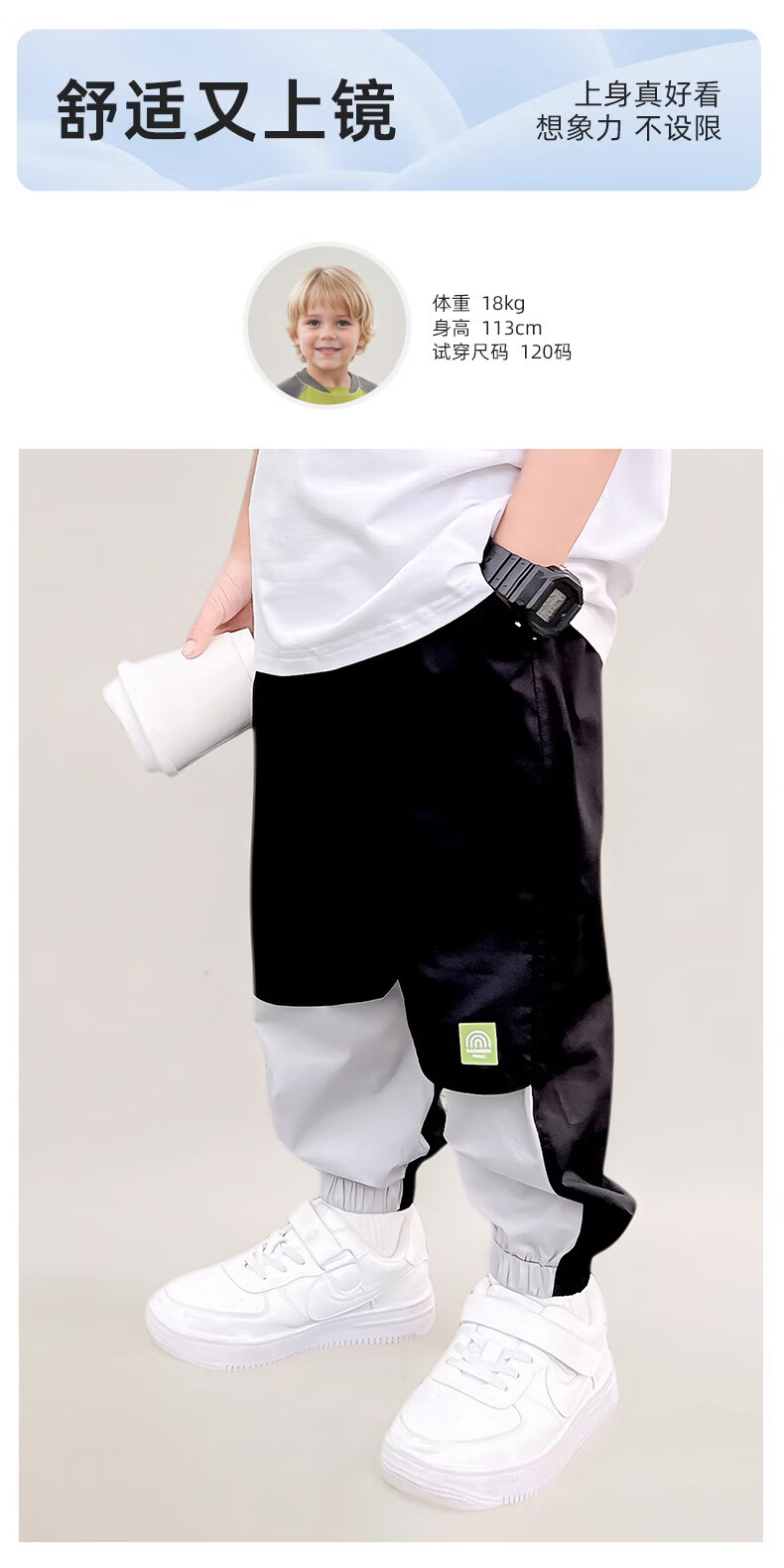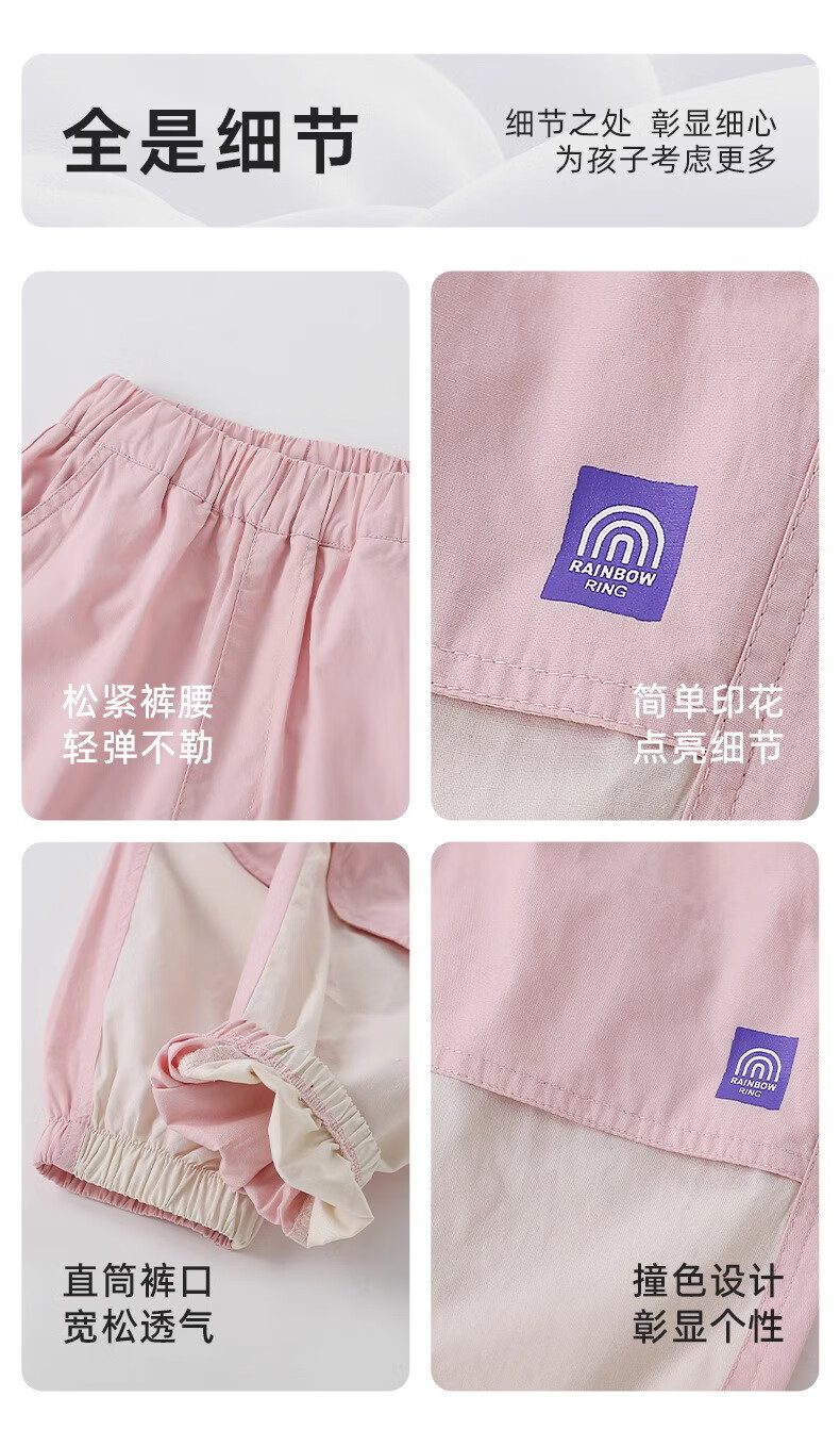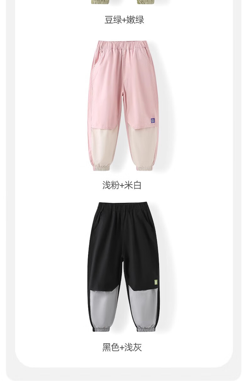 舒贝怡儿童裤子男女童束脚长裤大童潮帅新款男孩休闲运动裤 浅粉+米白 120
