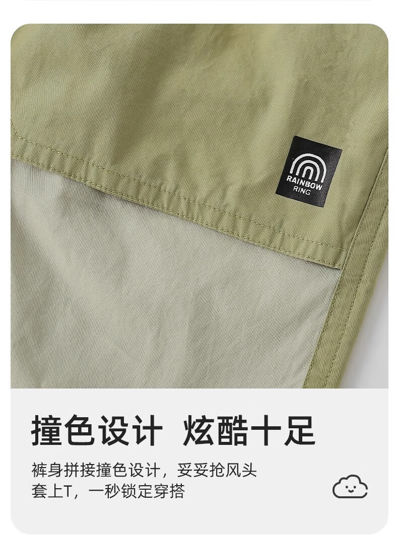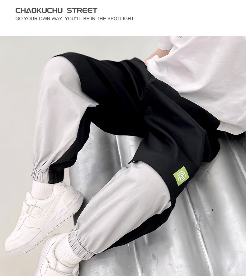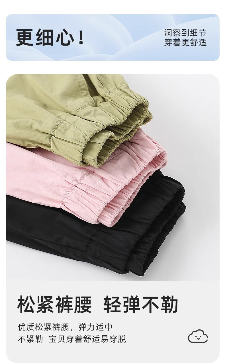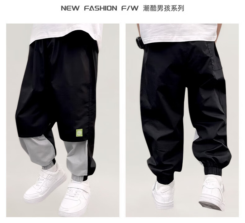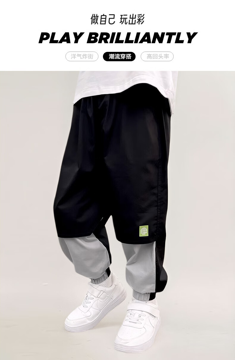 舒贝怡儿童裤子男女童束脚长裤大童潮帅新款男孩休闲运动裤 浅粉+米白 120