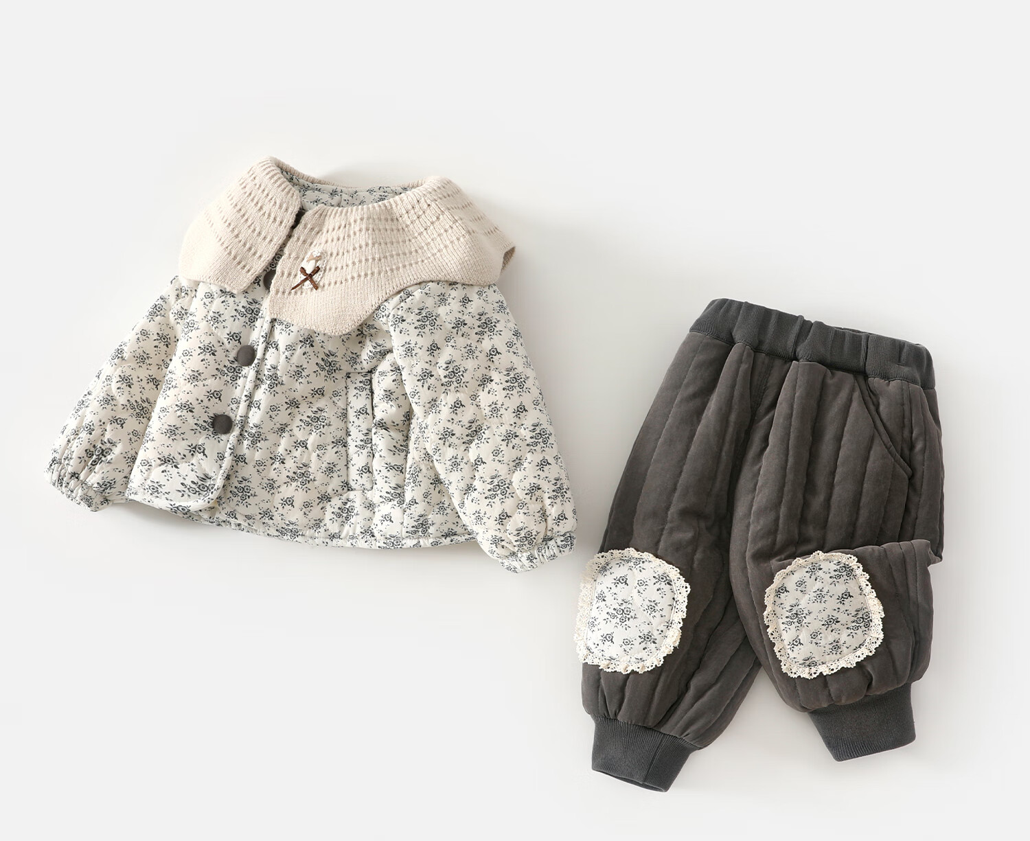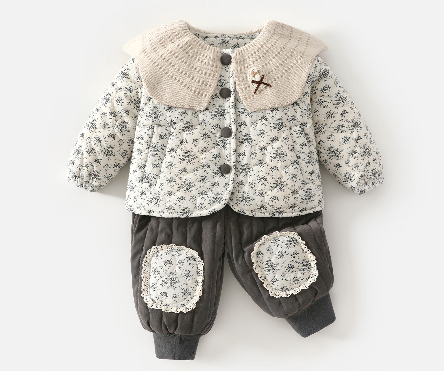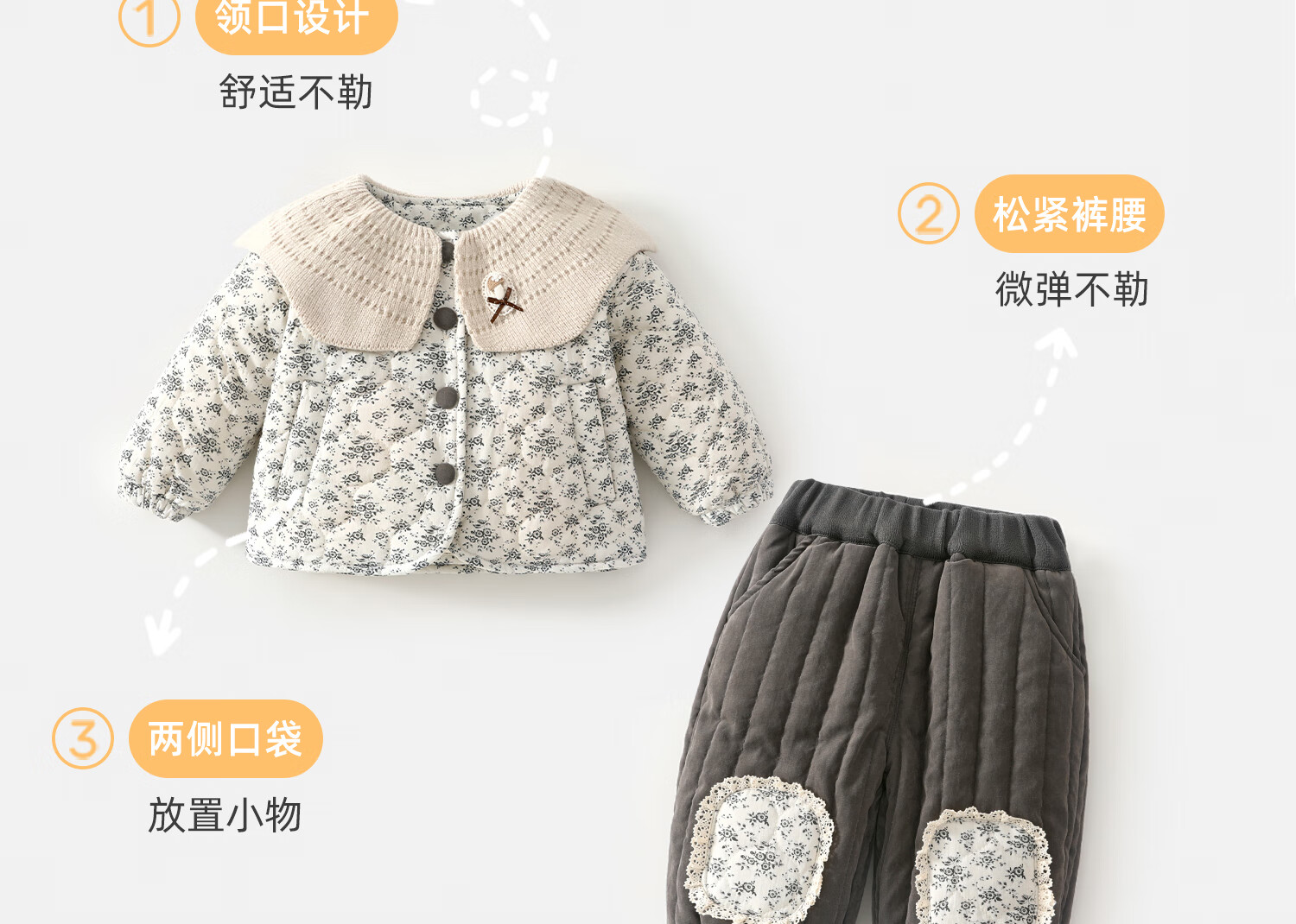 Banxidi Girls Suit Autumn and Winter Clothing 2025 New Children's Jacket Pants Plus Velvet Padded Clothes Baby Winter Children's Clothing Beige 80