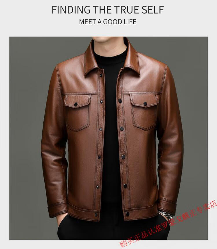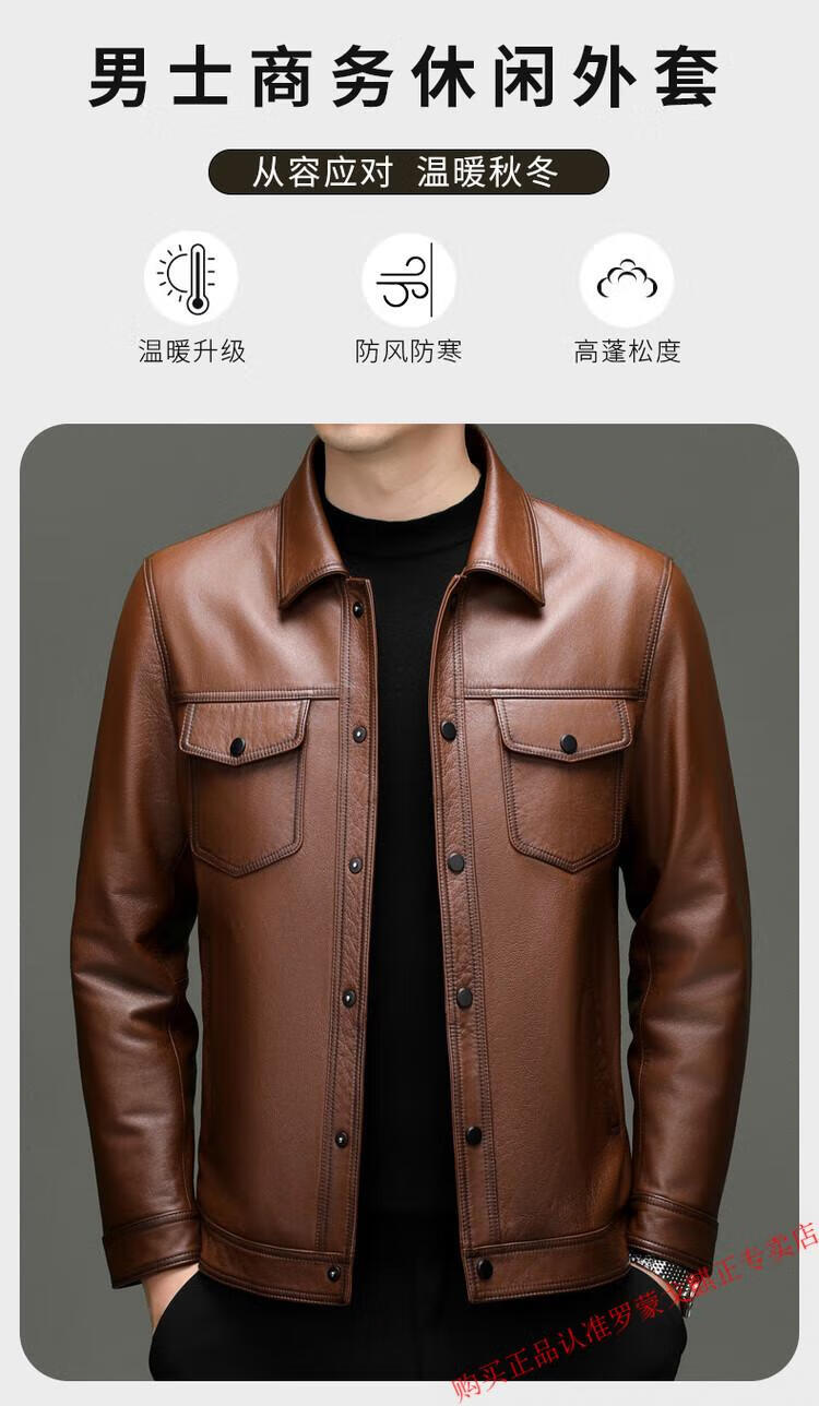 ROMON Haining мужская куртка из воловьей кожи первого слоя, осенне-зимняя повседневная утолщенная куртка с лацканами 90, белый гусиный пуховик для мужчин, коричневый 90, наполнитель из белого гусиного пуха, 3XL (54) 145-160Цзиньцзинь равен 0,5 кг