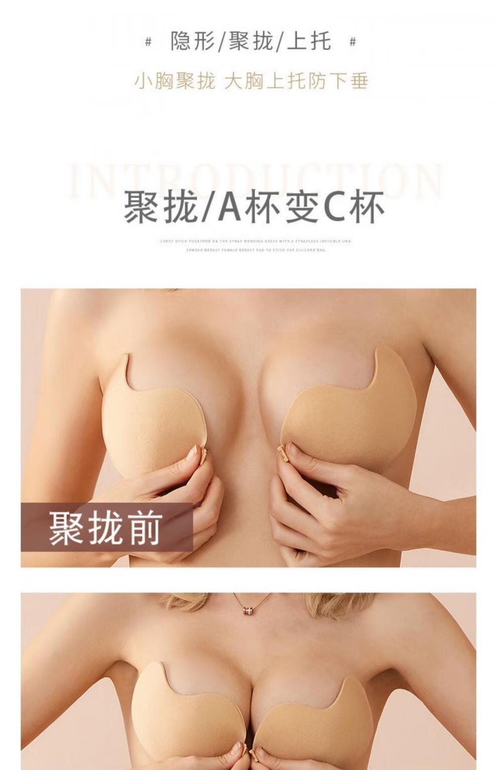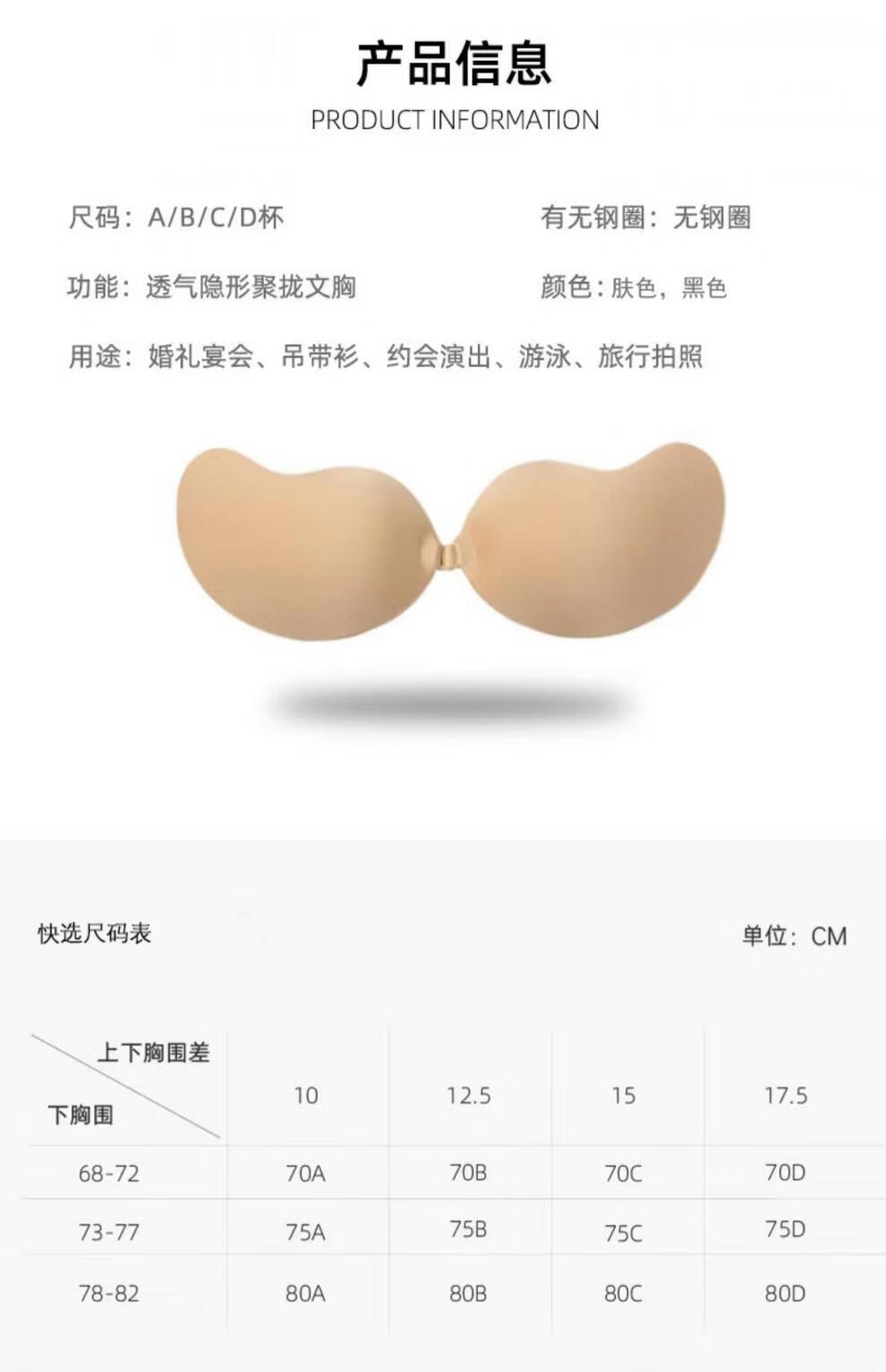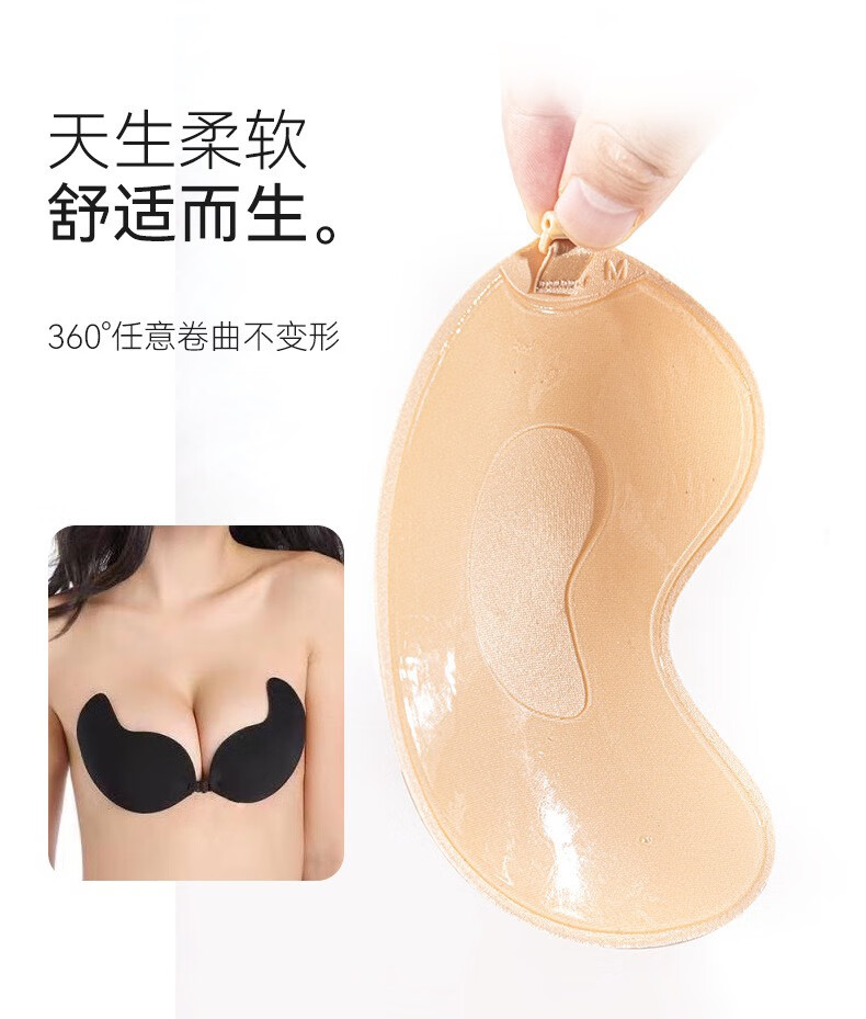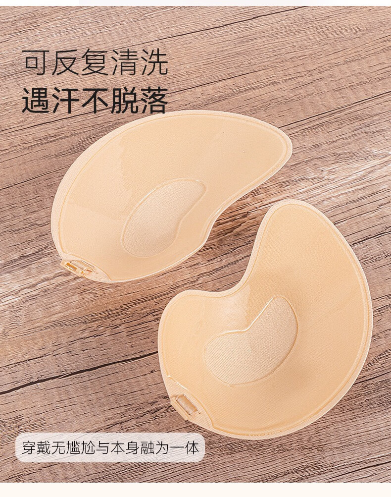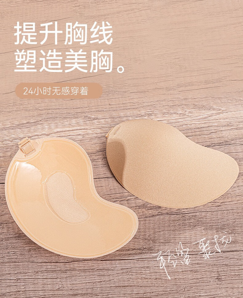 LEOEZYA芒果胸贴胸贴女婚纱礼服用矽胶隐形无肩带隐藏款女内衣防下垂聚拢 B杯-_肤色_升级款【一对装】