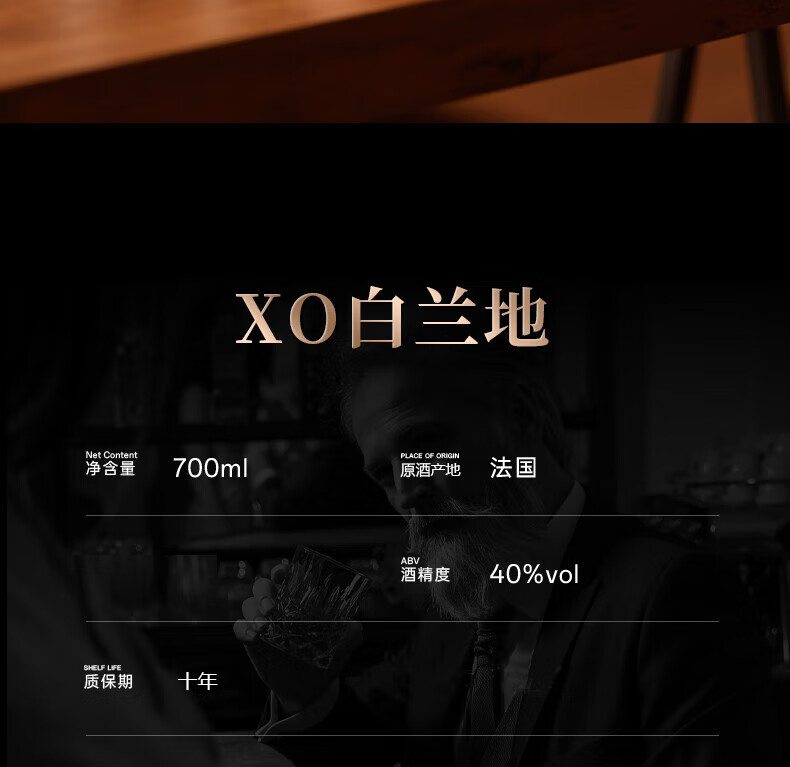 TARALOTTI白兰地xo洋酒威士忌烈酒进口原酒调酒吧自饮摆柜口粮酒40度 白兰地 700mL 1瓶