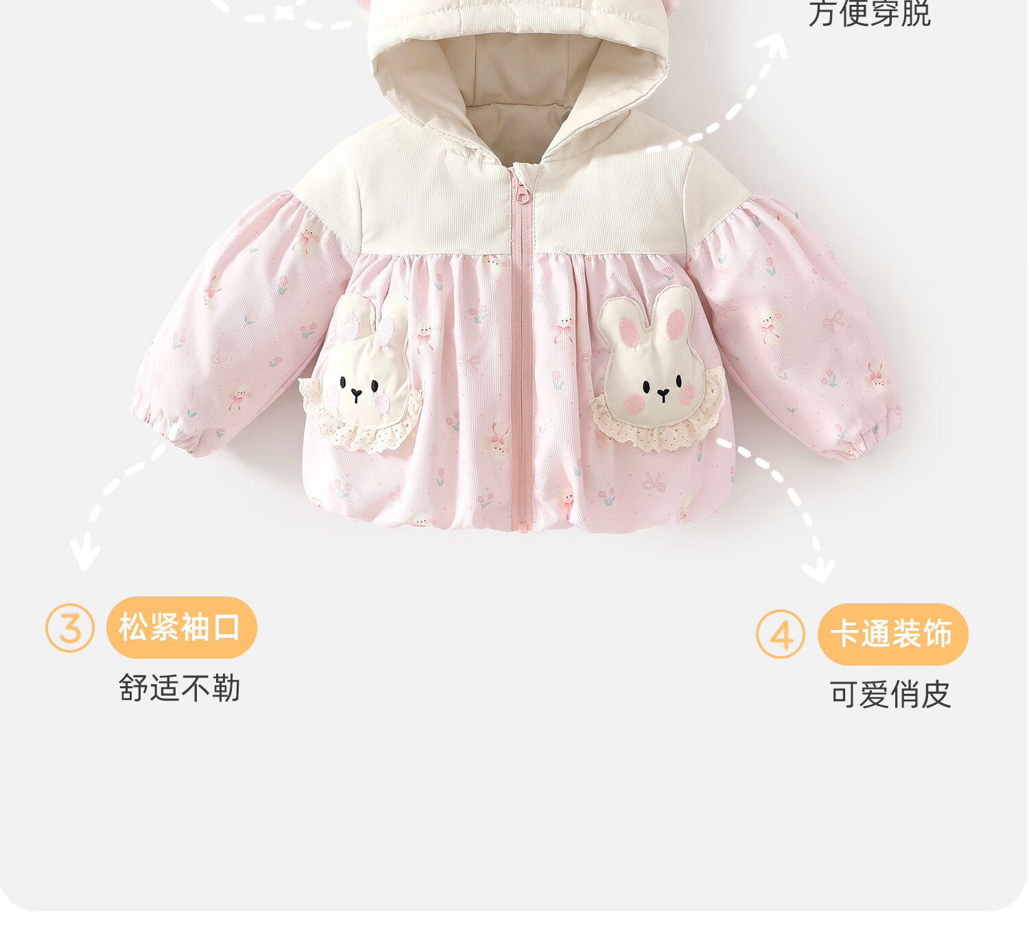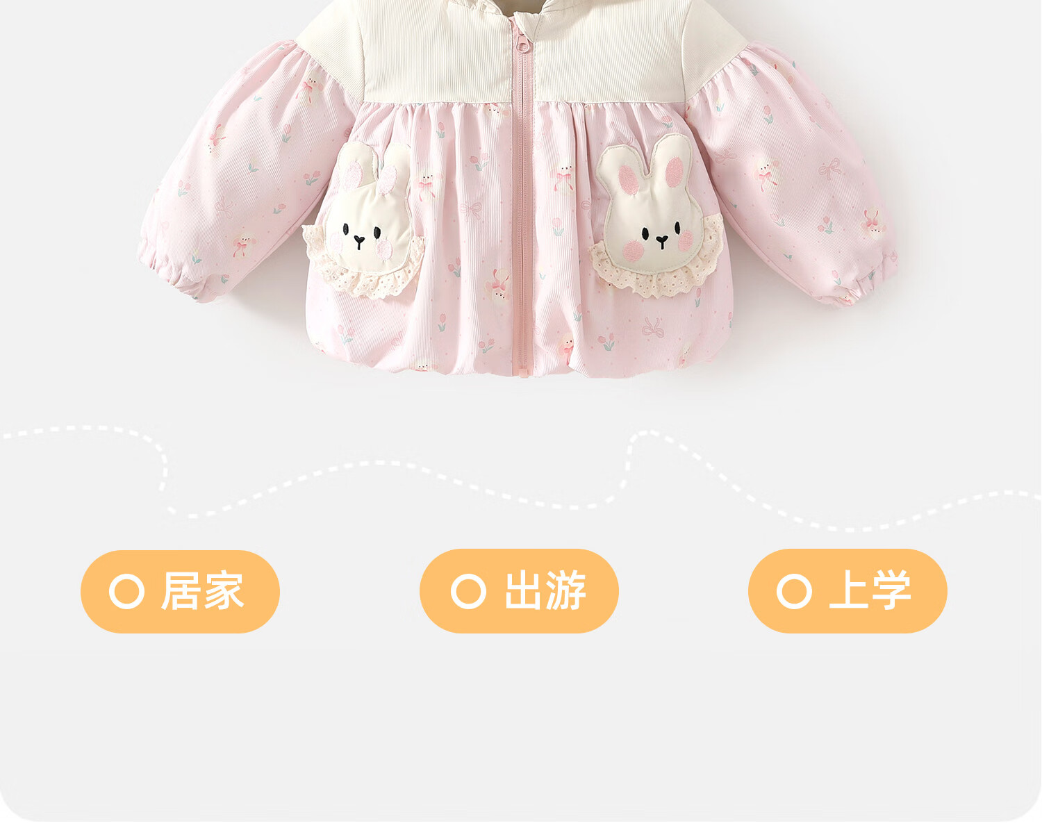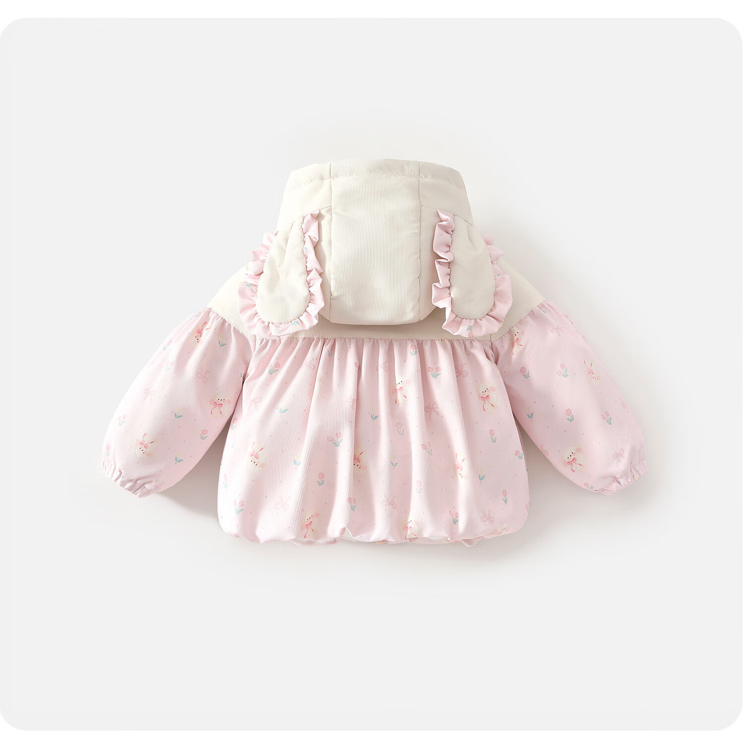 班喜迪女童外套宝宝棉服秋冬装2025新款儿童冬季洋气公主连帽上衣小童装 粉色 100