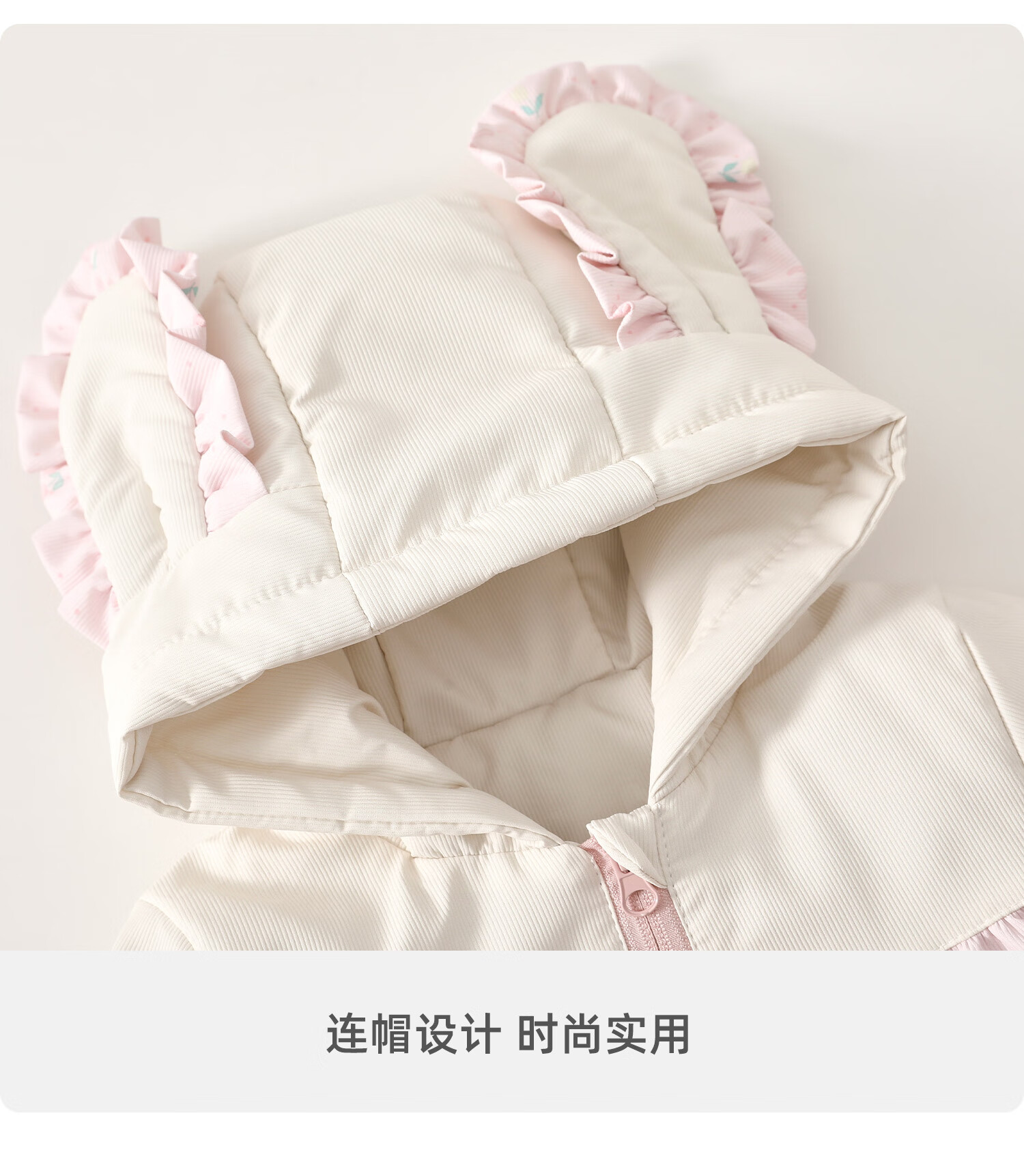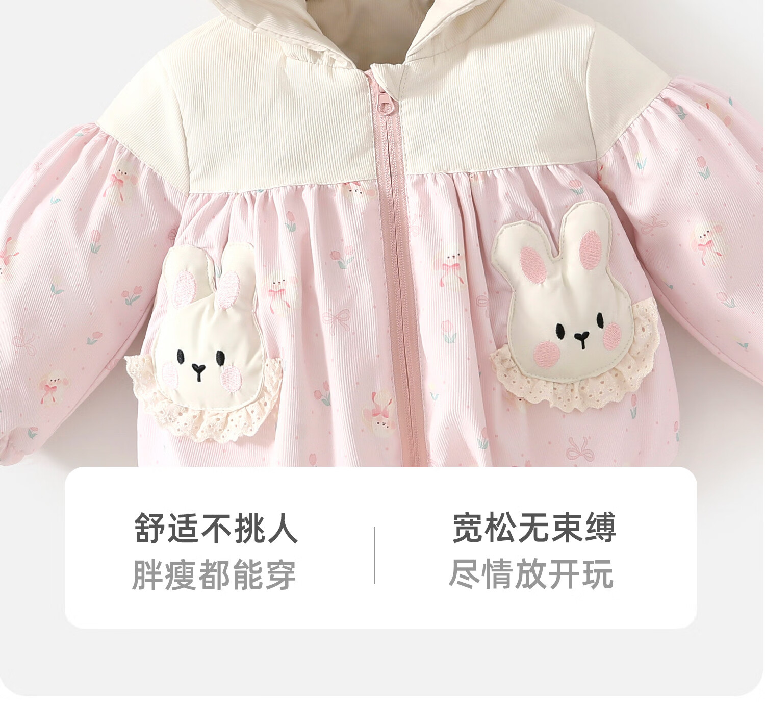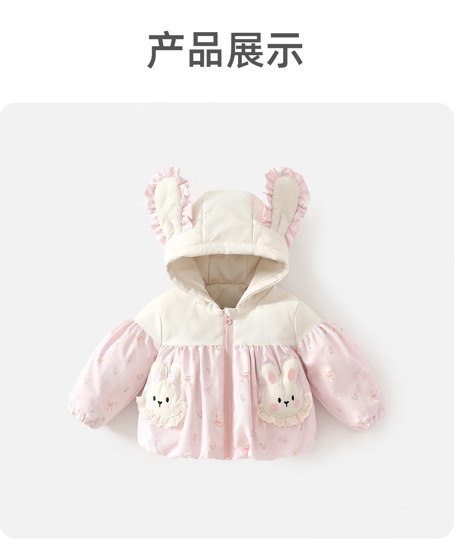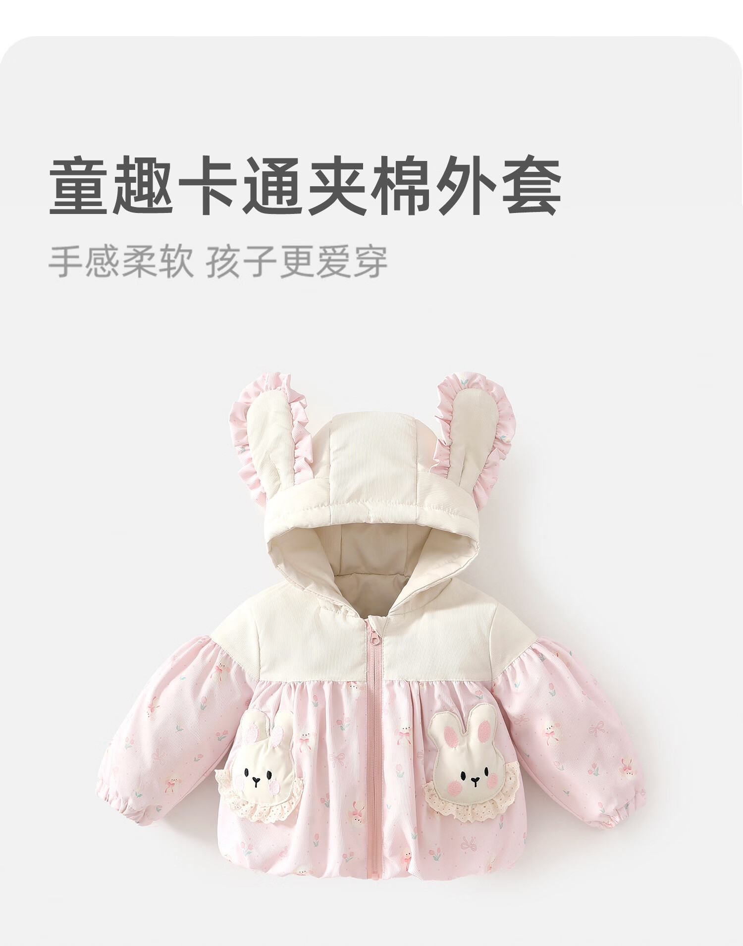 班喜迪女童外套宝宝棉服秋冬装2025新款儿童冬季洋气公主连帽上衣小童装 粉色 100