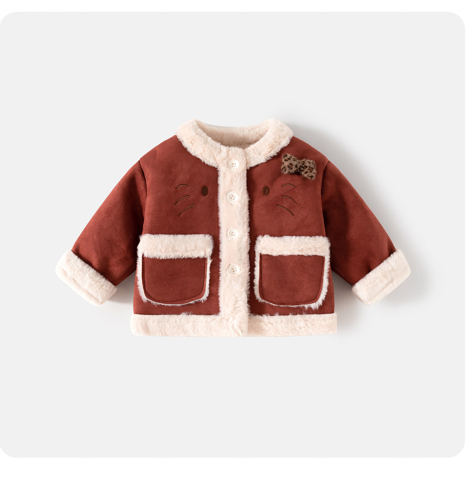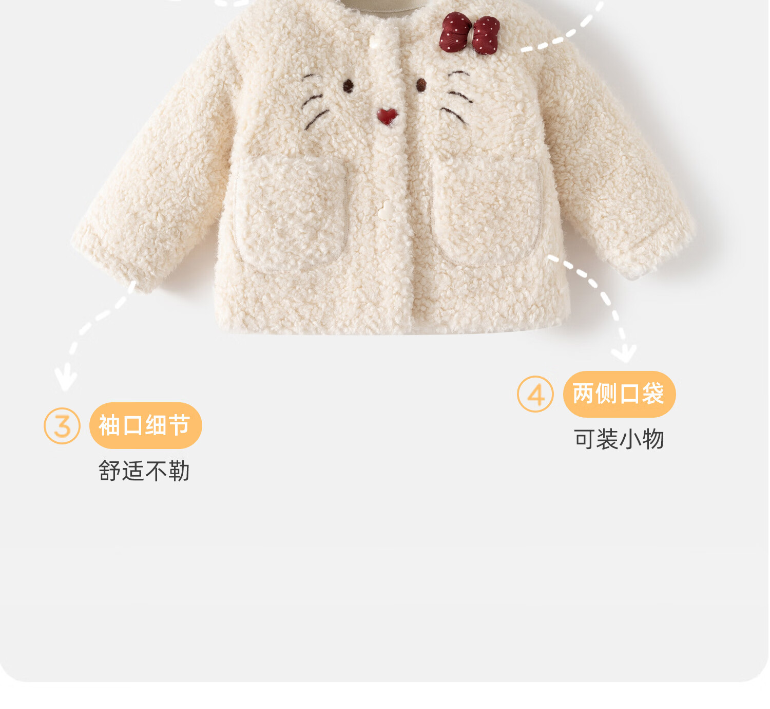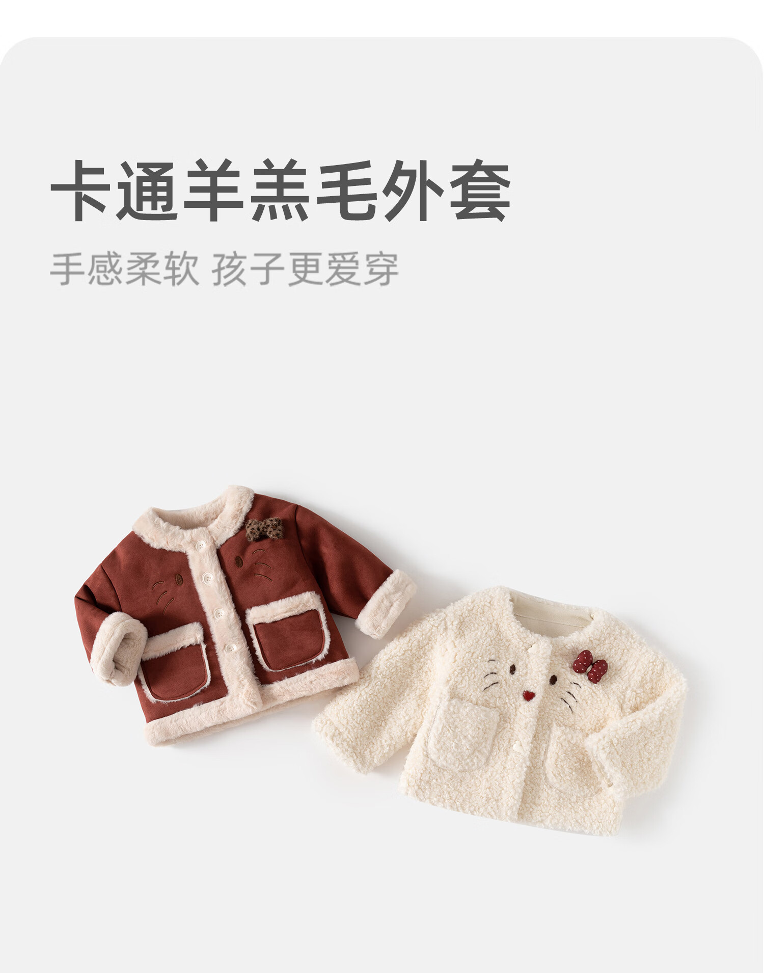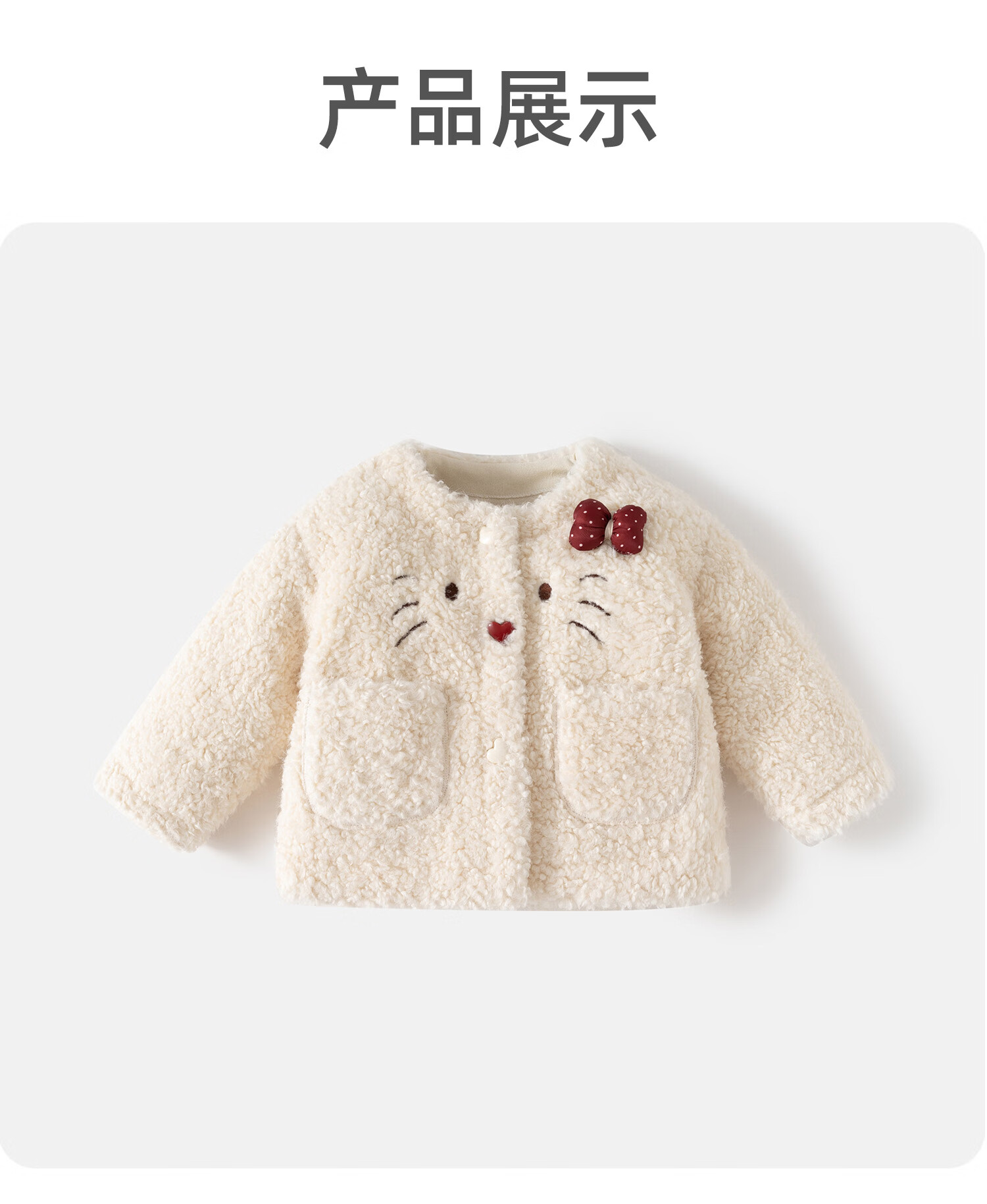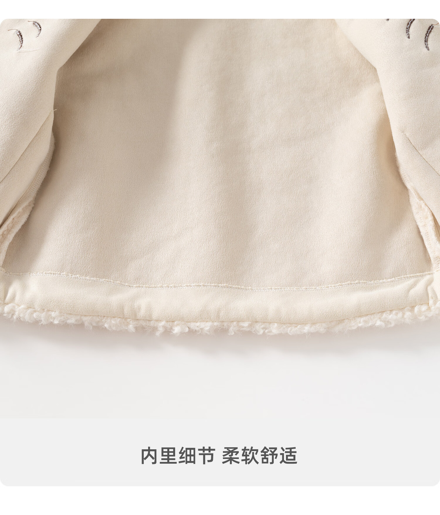 Banxidi girls coat autumn and winter 2025 new fashion baby princess children's lamb wool top winter warm children's clothing beige 90