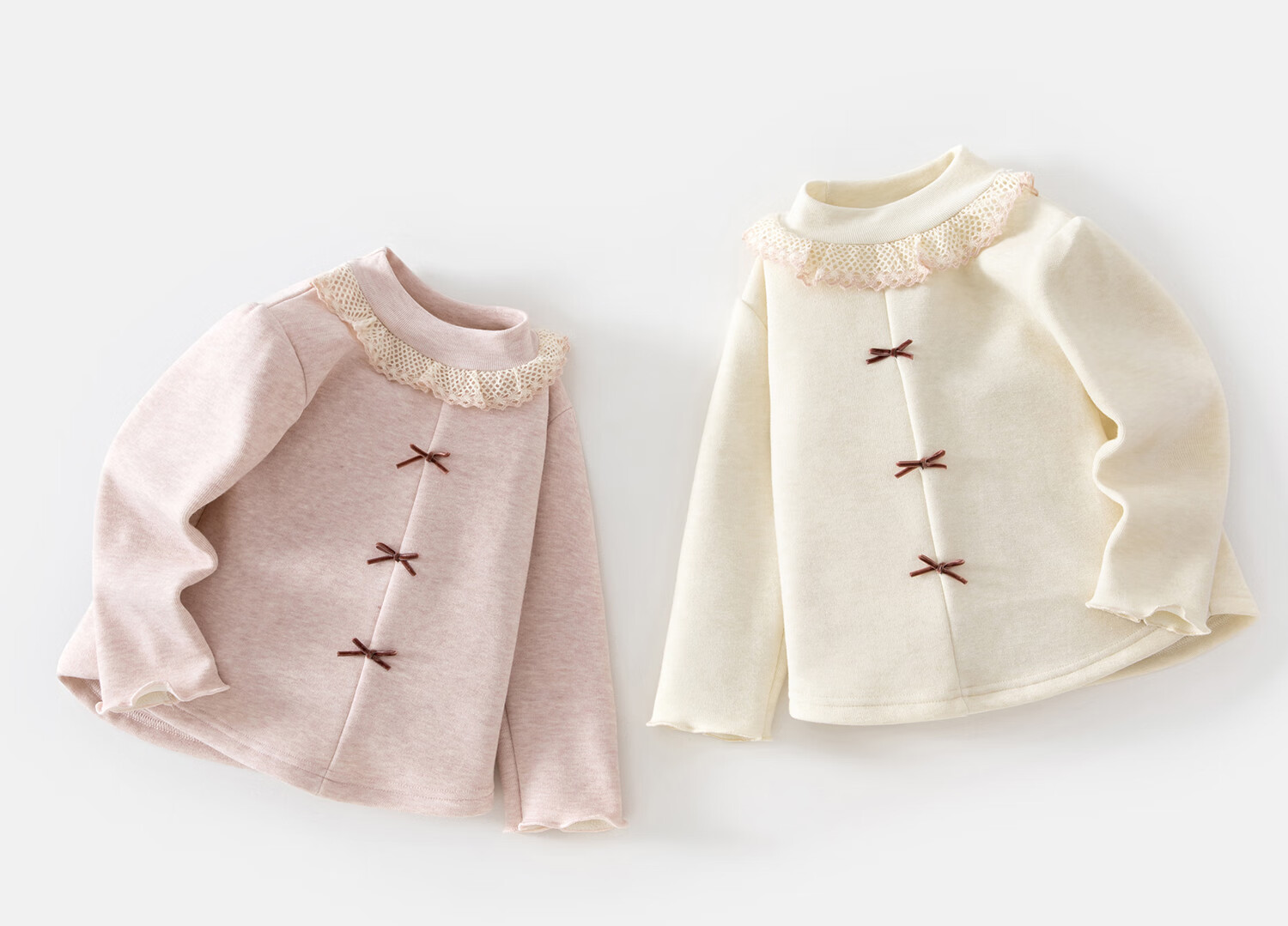 班喜迪女童长袖t恤冬装2025新款洋气加绒儿童打底衫秋冬款童装宝宝上衣 杏色 90