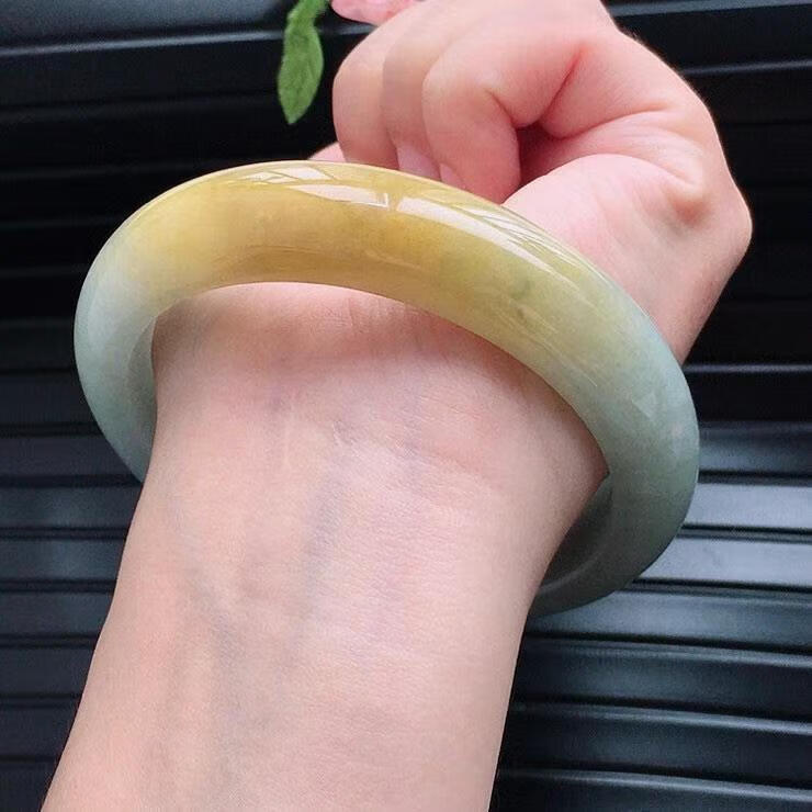 缅镯缅甸翡翠手镯冰糯种玉手镯冰种黄翡翠正圈老坑高冰玉镯子黄翡正品 53mm