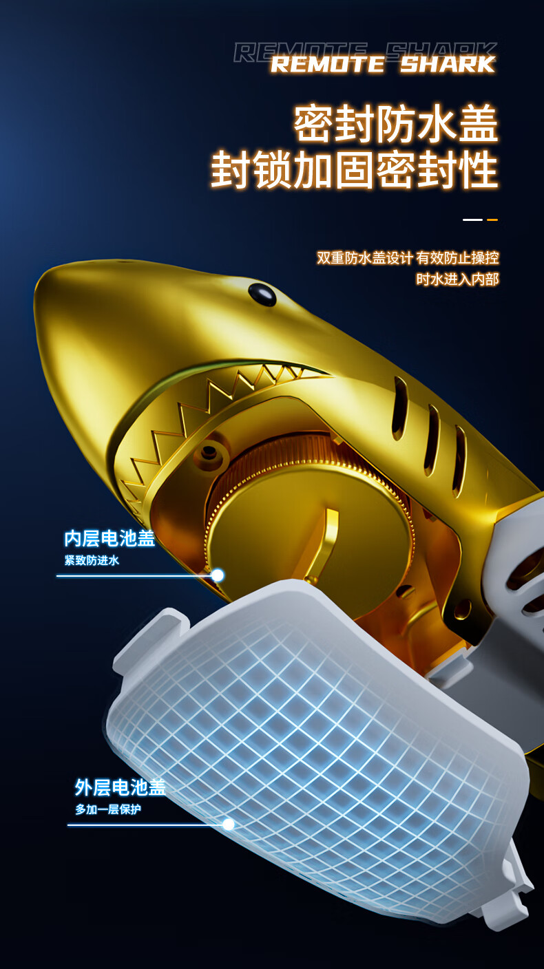 Télécommande jet d'eau requin étanche rechargeable simulation balançoire haute vitesse sous-marin télécommande bateau jouet pour enfants cadeau Manta poisson-or simulation natation + ensemble complet d'étanche + 3 versions standard 1 jeu de piles + hélice de rechange si endommagé après avoir joué