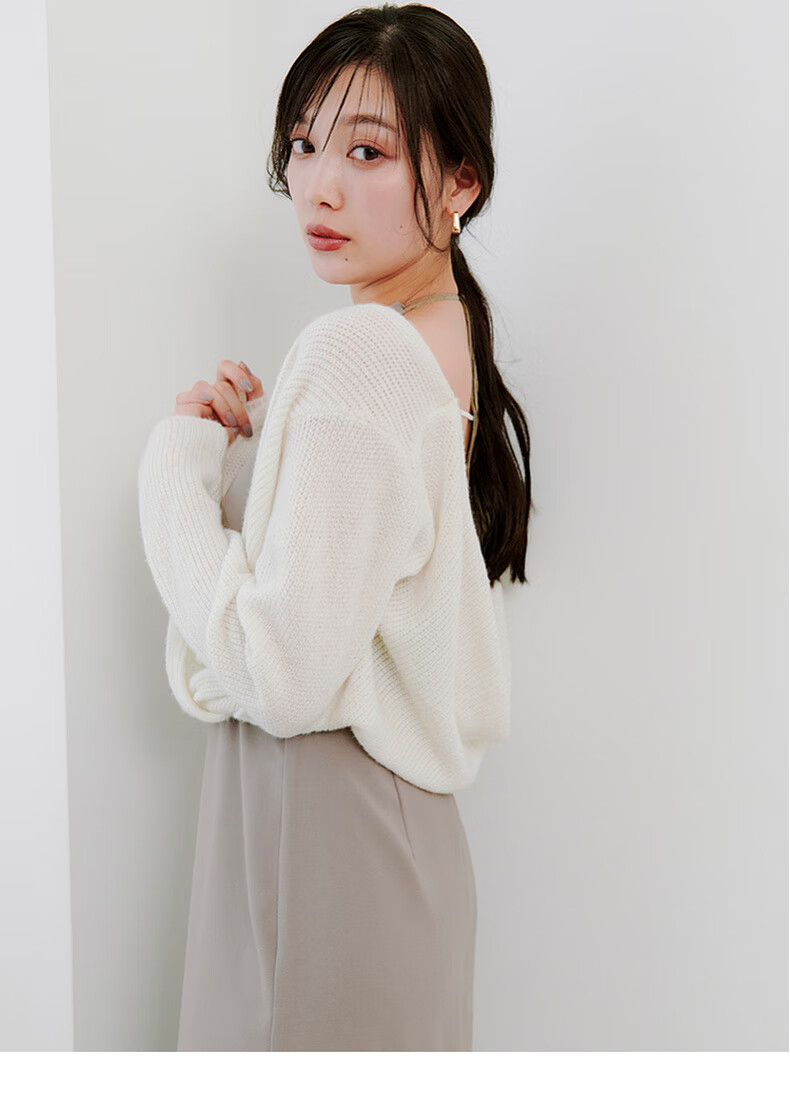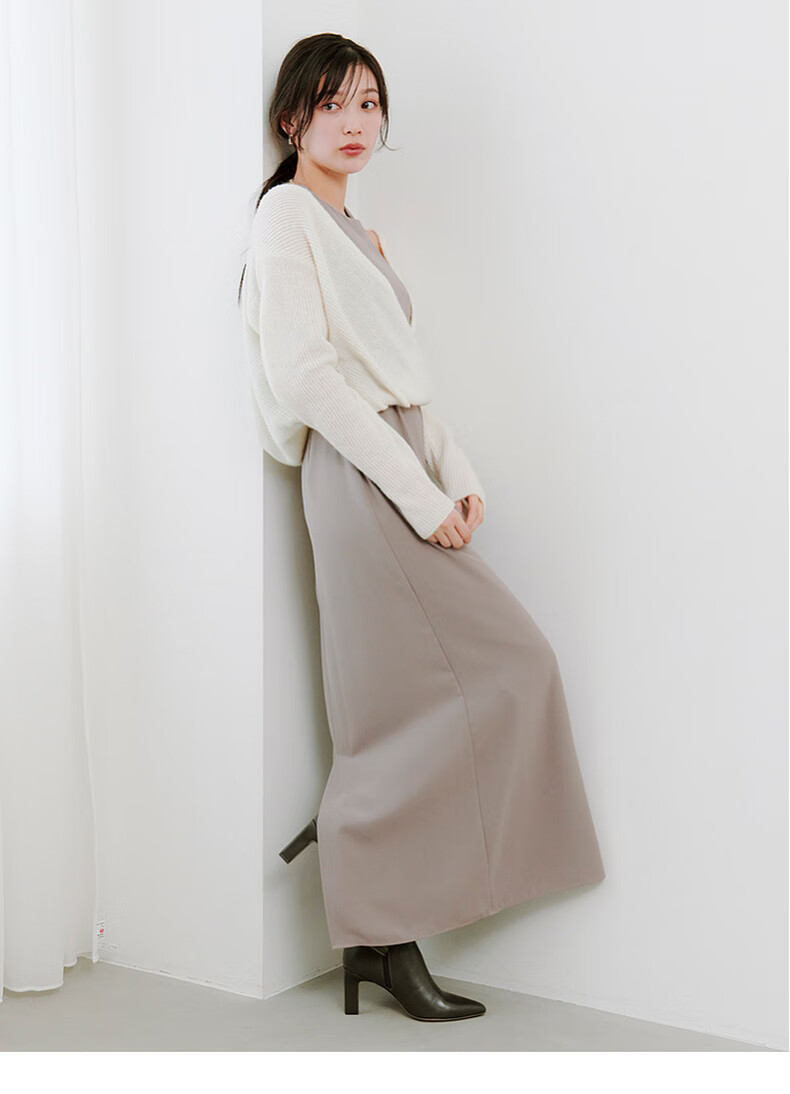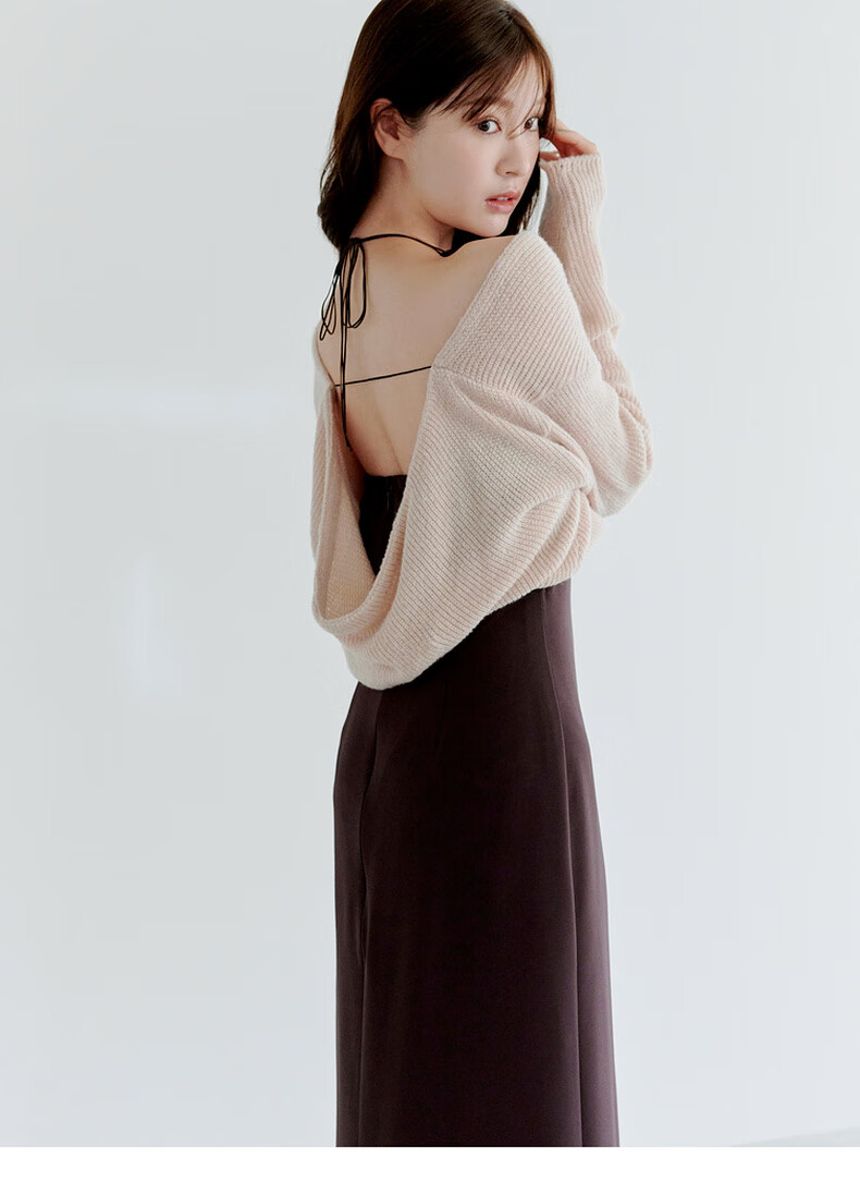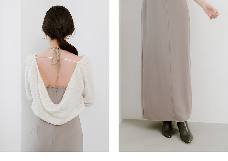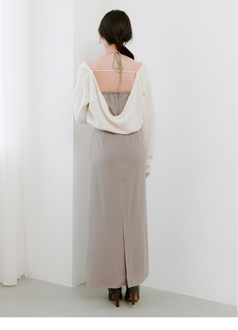 SNIDEL2025 automne et hiver nouveau produit simple robe dos nu pull paresseux ensemble deux pièces SWNO254192 rose clair M (1)