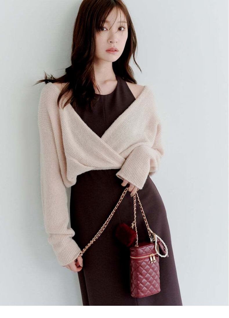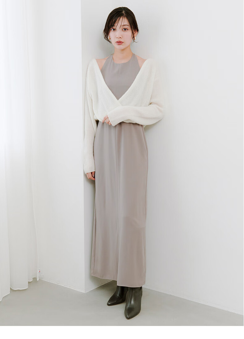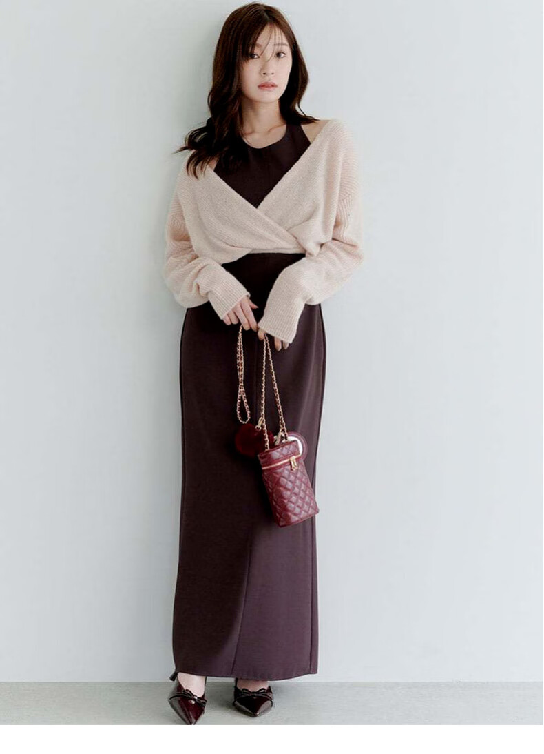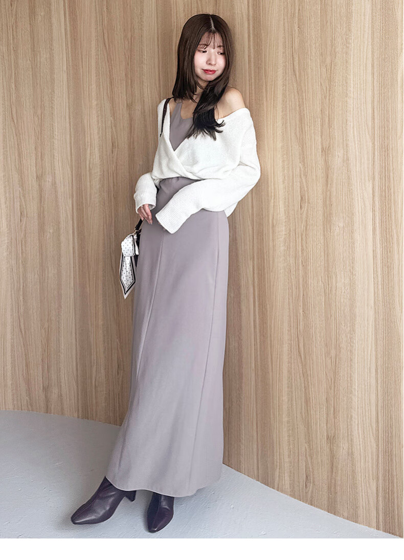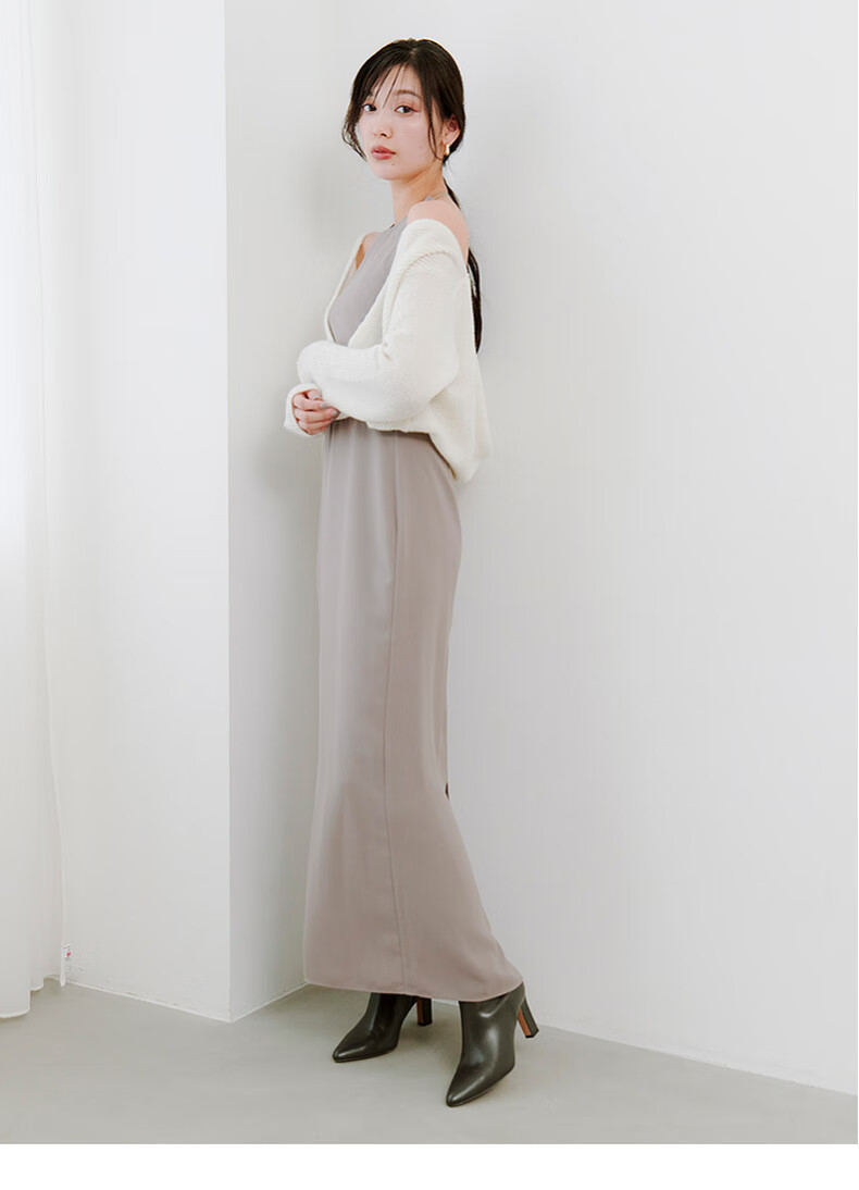 SNIDEL2025 automne et hiver nouveau produit simple robe dos nu pull paresseux ensemble deux pièces SWNO254192 rose clair M (1)