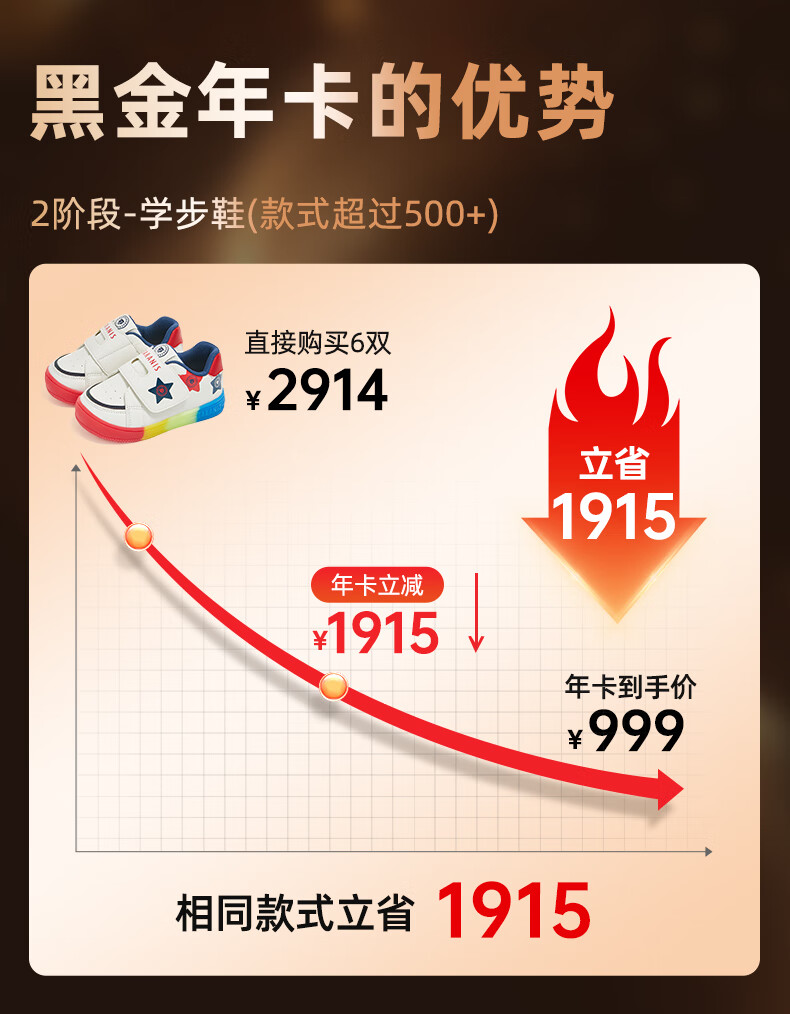 泰兰尼斯outlets精选童鞋黑金年卡0-16岁1卡通兑6双鞋1年有效