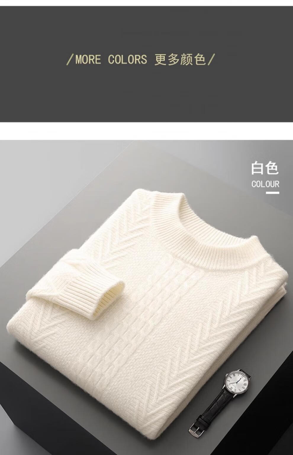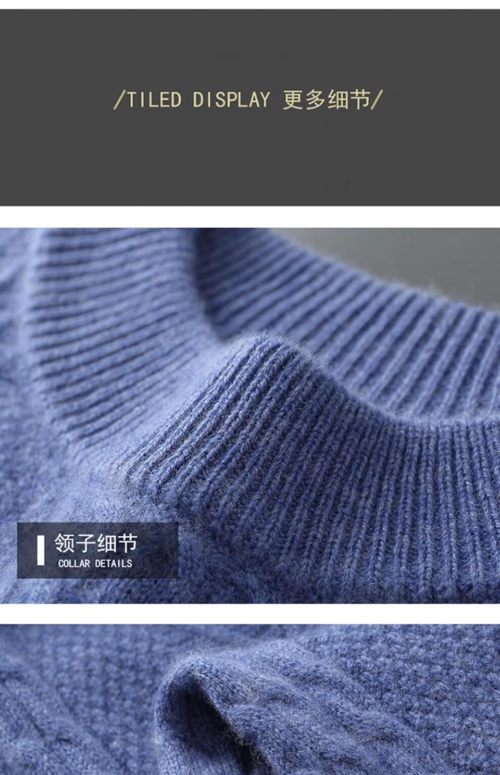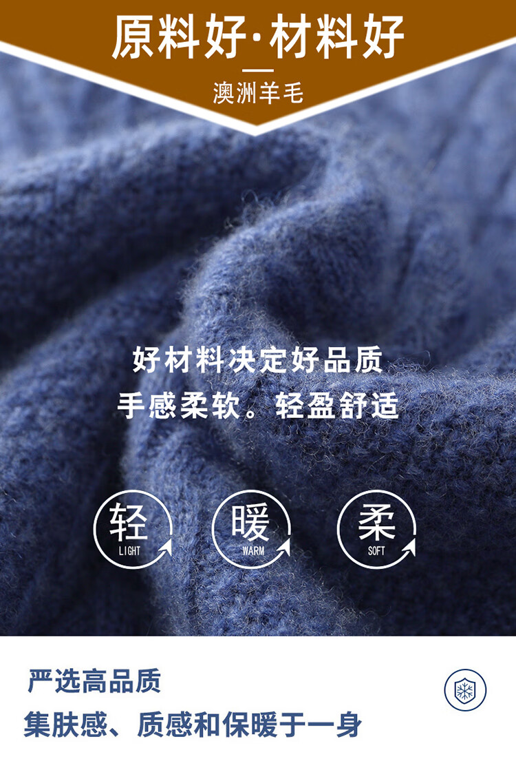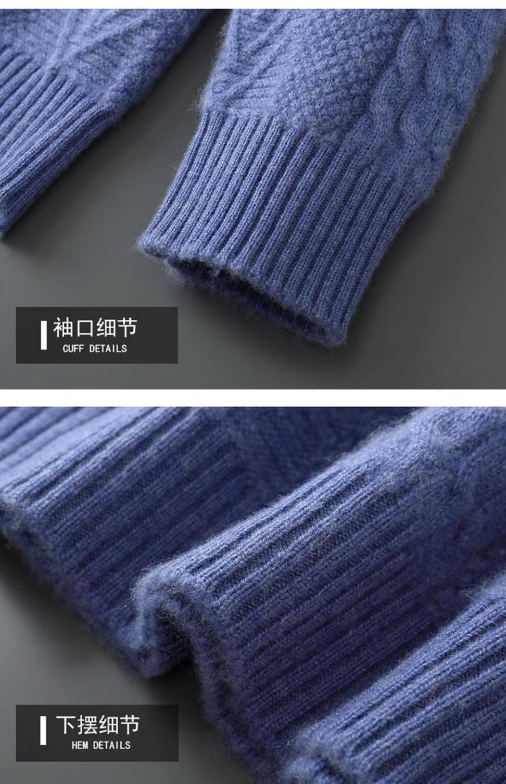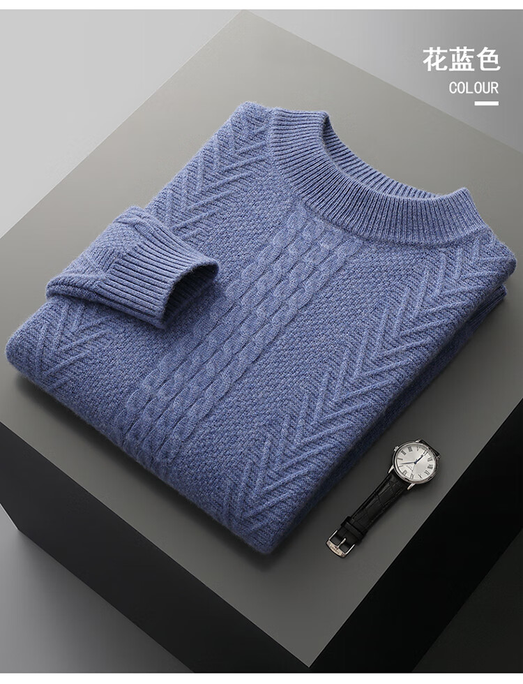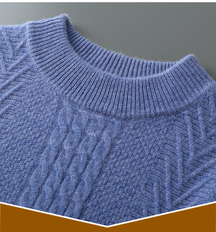 鄂尔多斯市产纯羊毛衫双股加厚男圆领针织毛衣商务休闲内搭扭花打 大象灰 XL