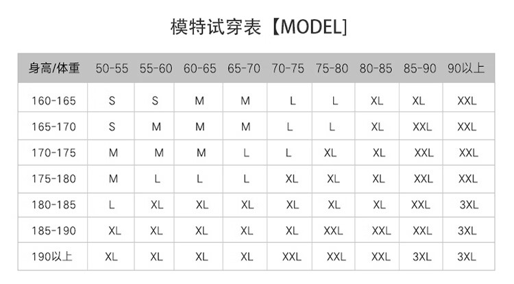 China (cm) 160-165/84-86 165-170 / 88-90 167-172 / 92-96 168-173 / 98-102 170-176 / 106-110