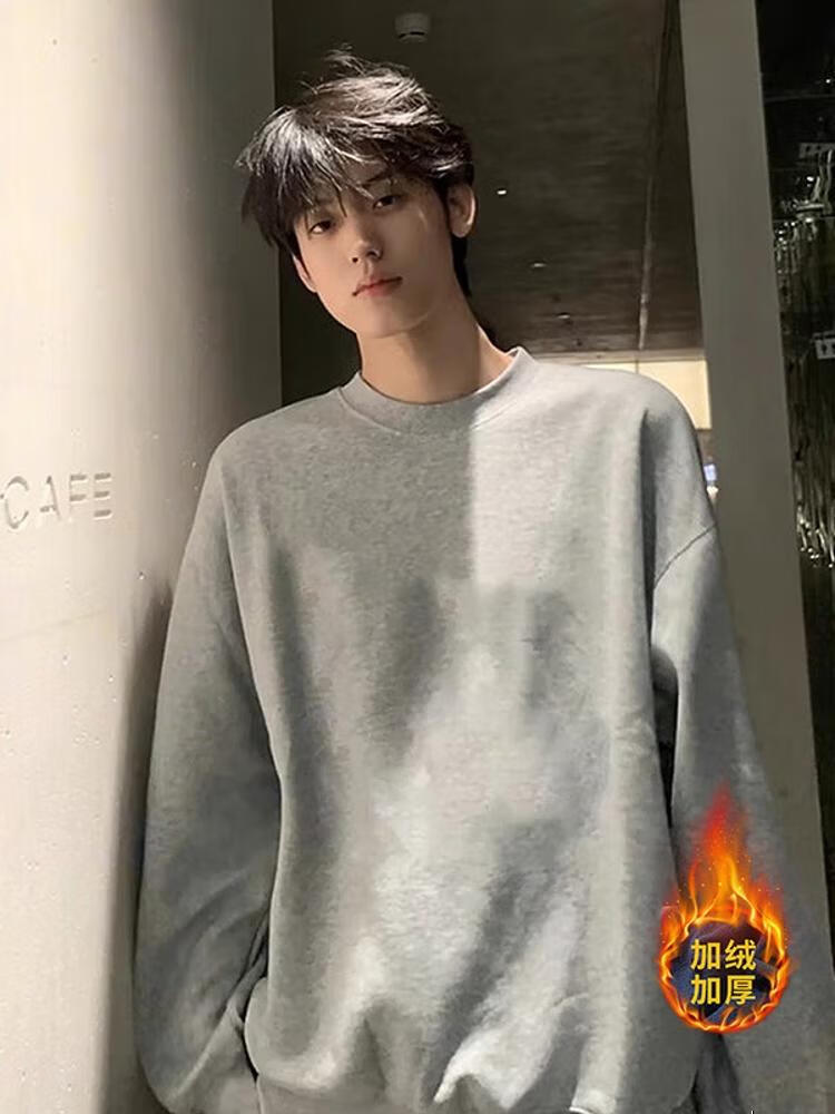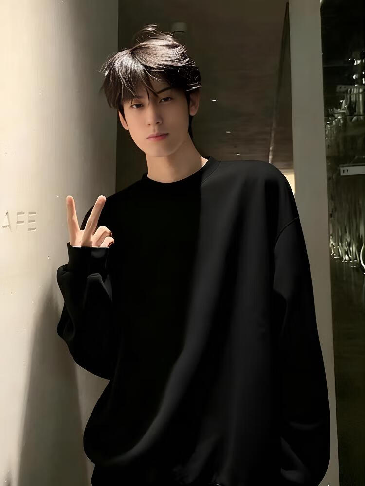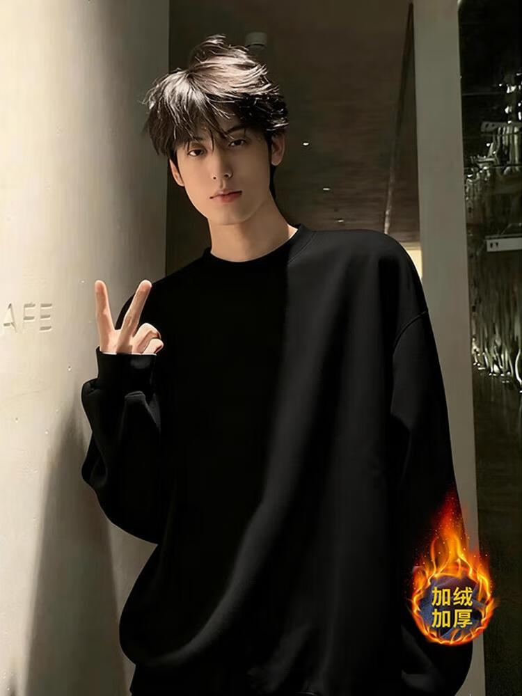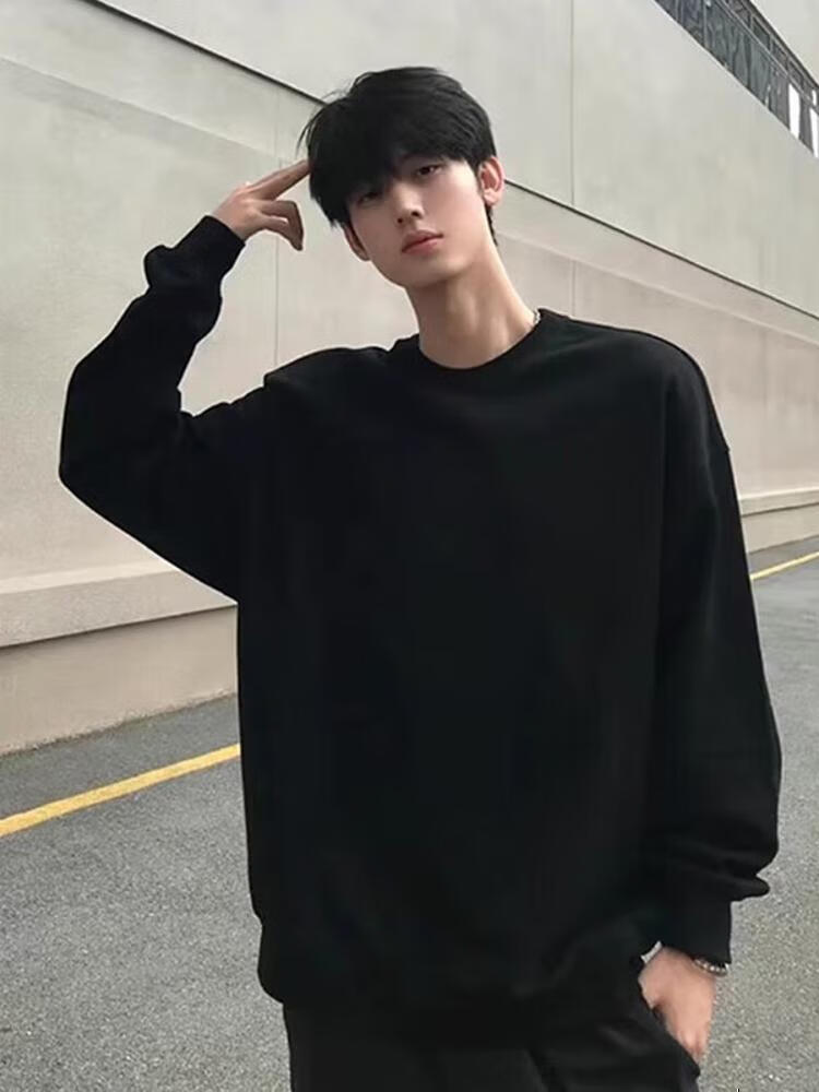 Katuchi cleanfit black heavyweight round neck sweatshirt men's autumn American retro handsome long-sleeved inner bottoming shirt top black XL
