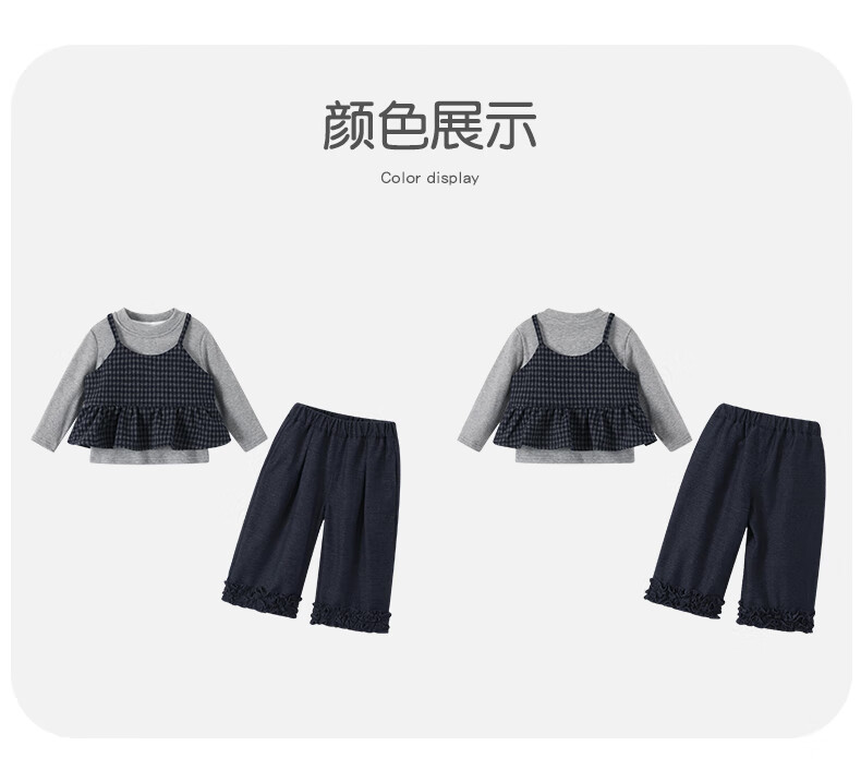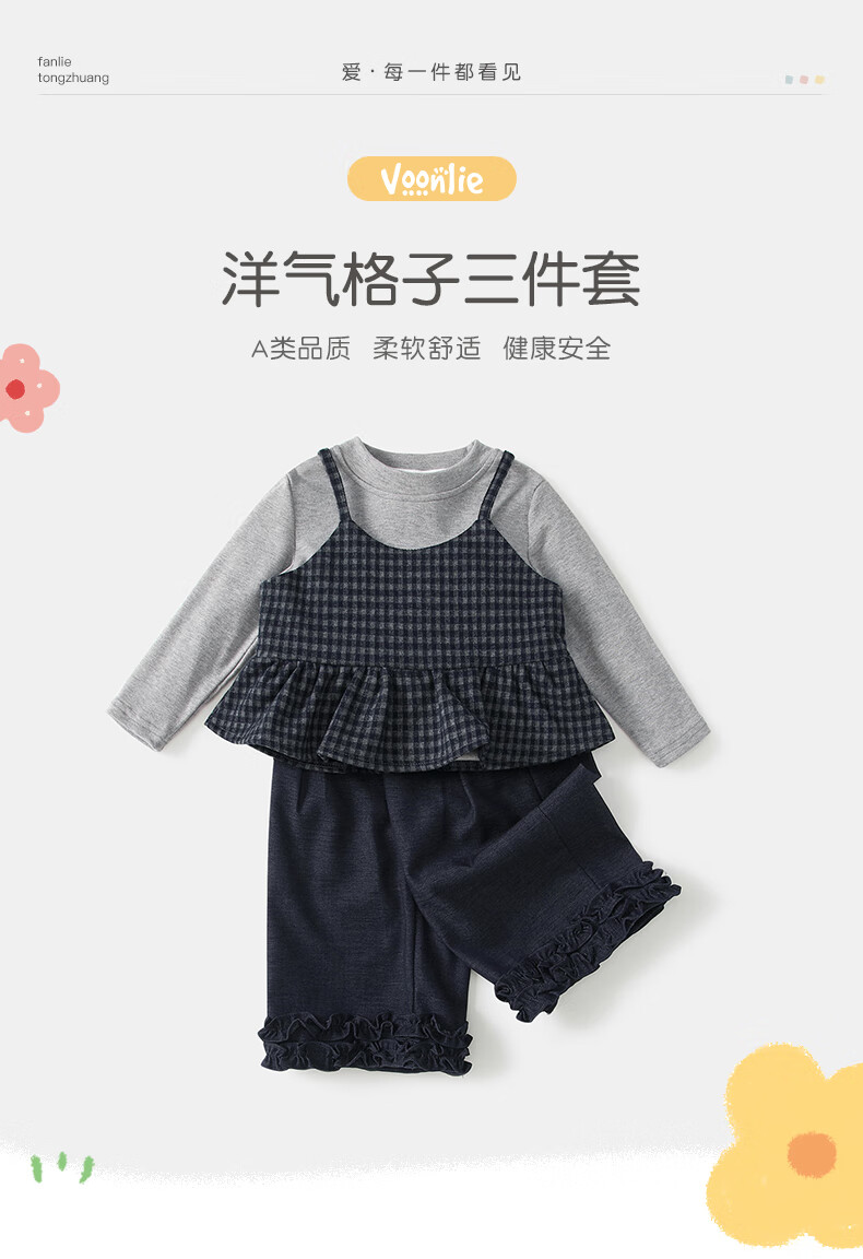 凡猎女童套装秋装2025新款儿童洋气衣服宝宝直筒裤休闲三件套春秋 灰色 80 cm