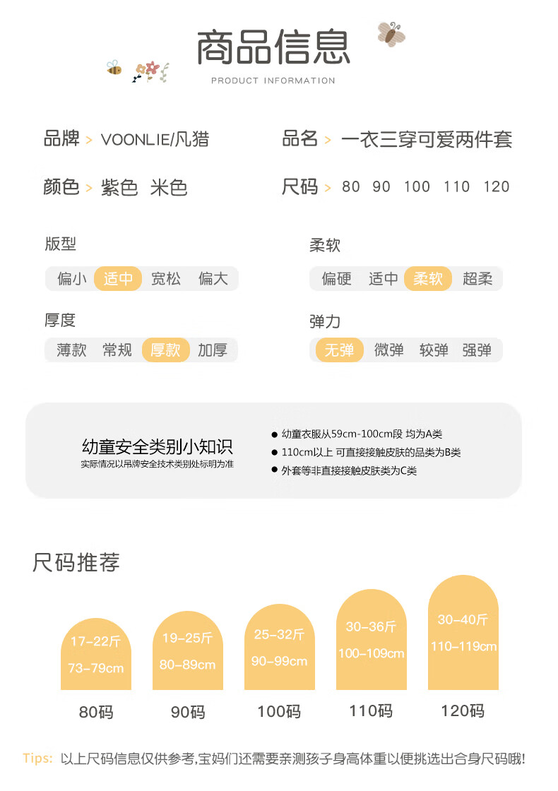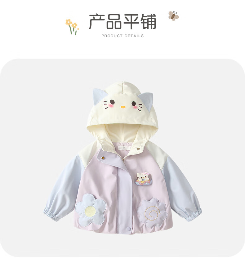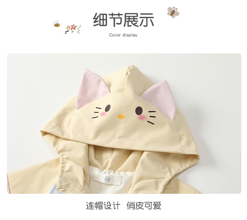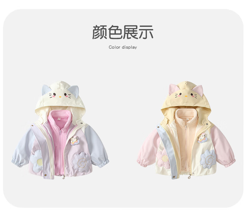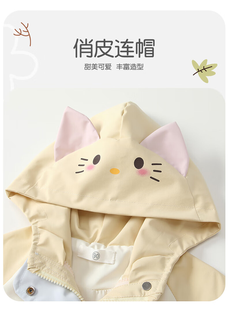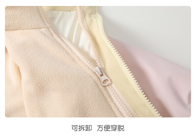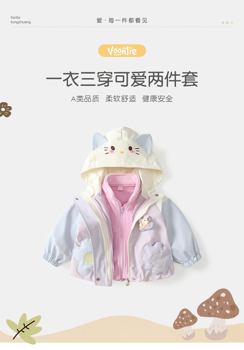 凡猎VOONLIE女童连帽外套秋装2025新款洋气儿童防风衣三合一宝宝衣服保暖秋冬 米色 90 cm