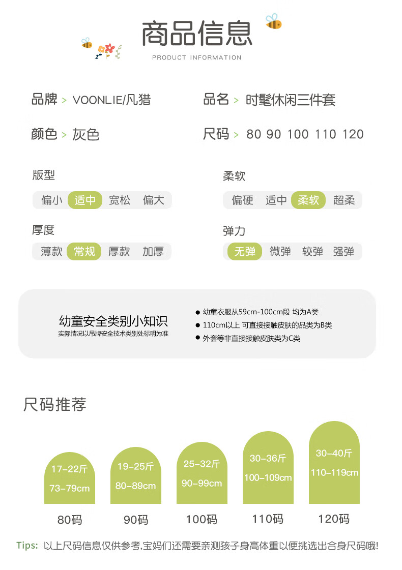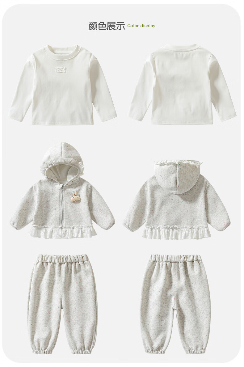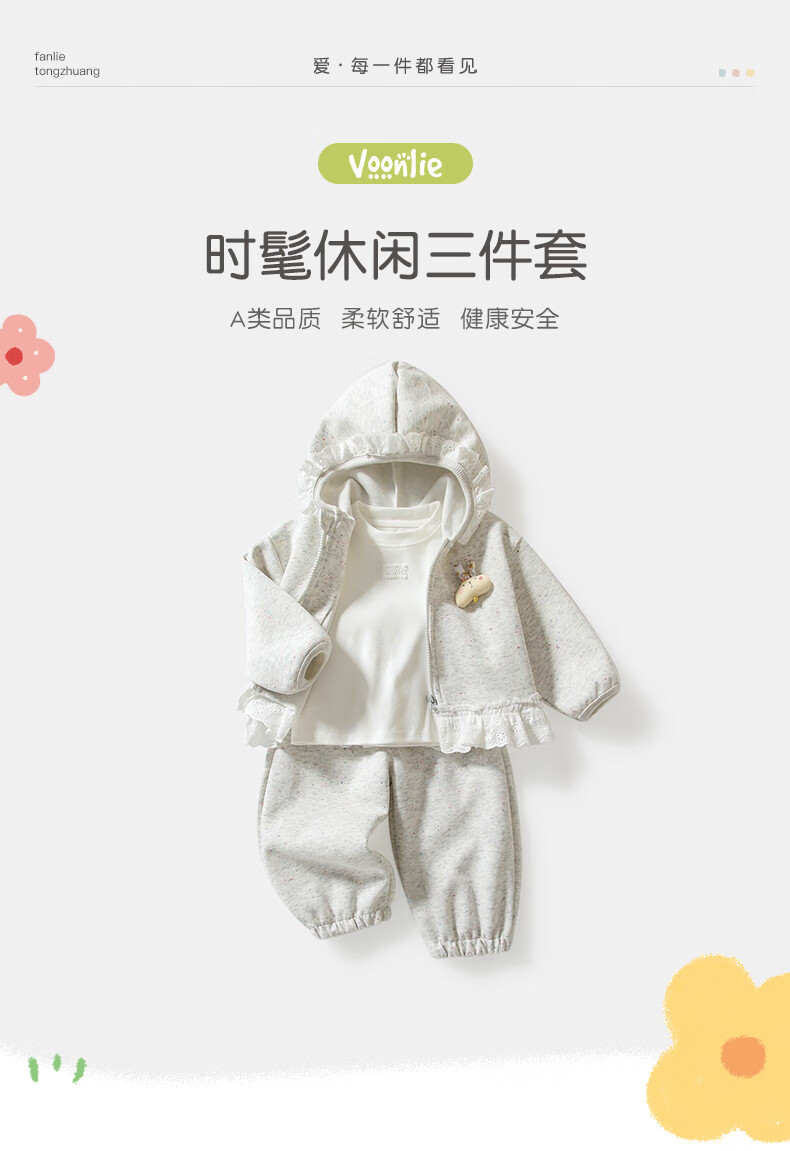 Fanlie VOONLIE Girls Suit Autumn 2025 New Children's Style Little Girl Clothes Baby Jacket Pants Three-piece Set Spring and Autumn Gray 80 cm
