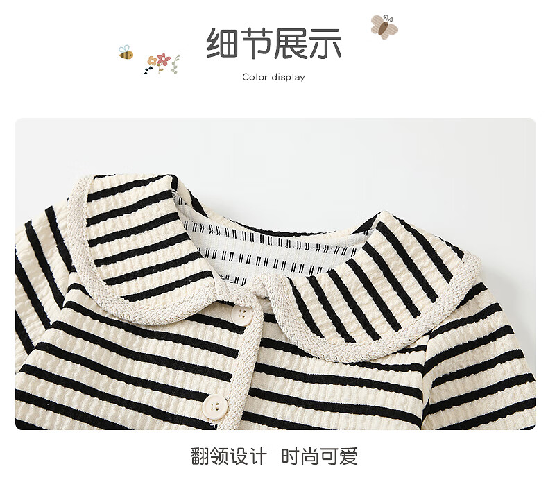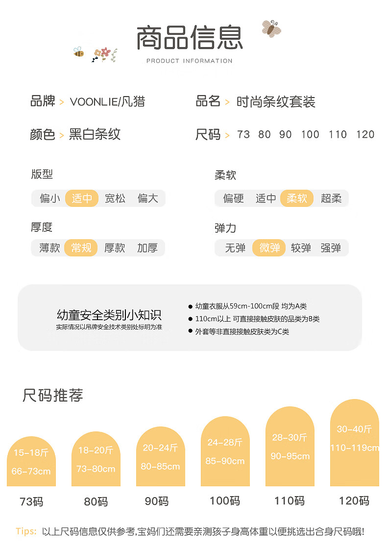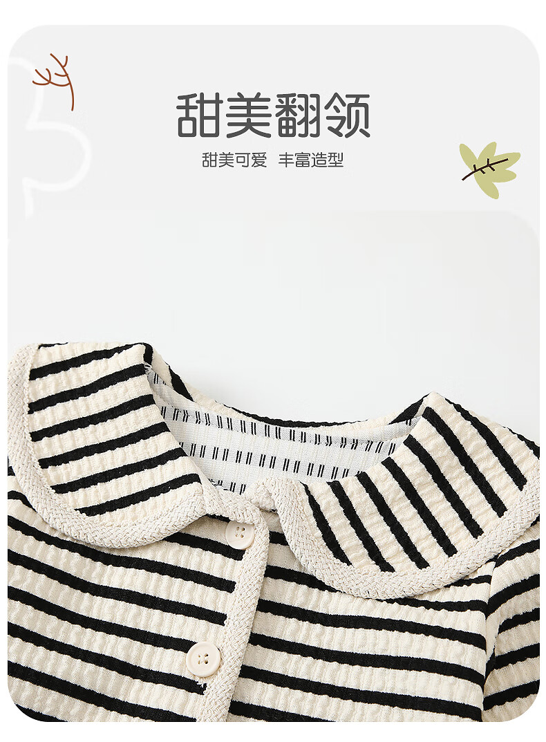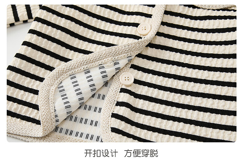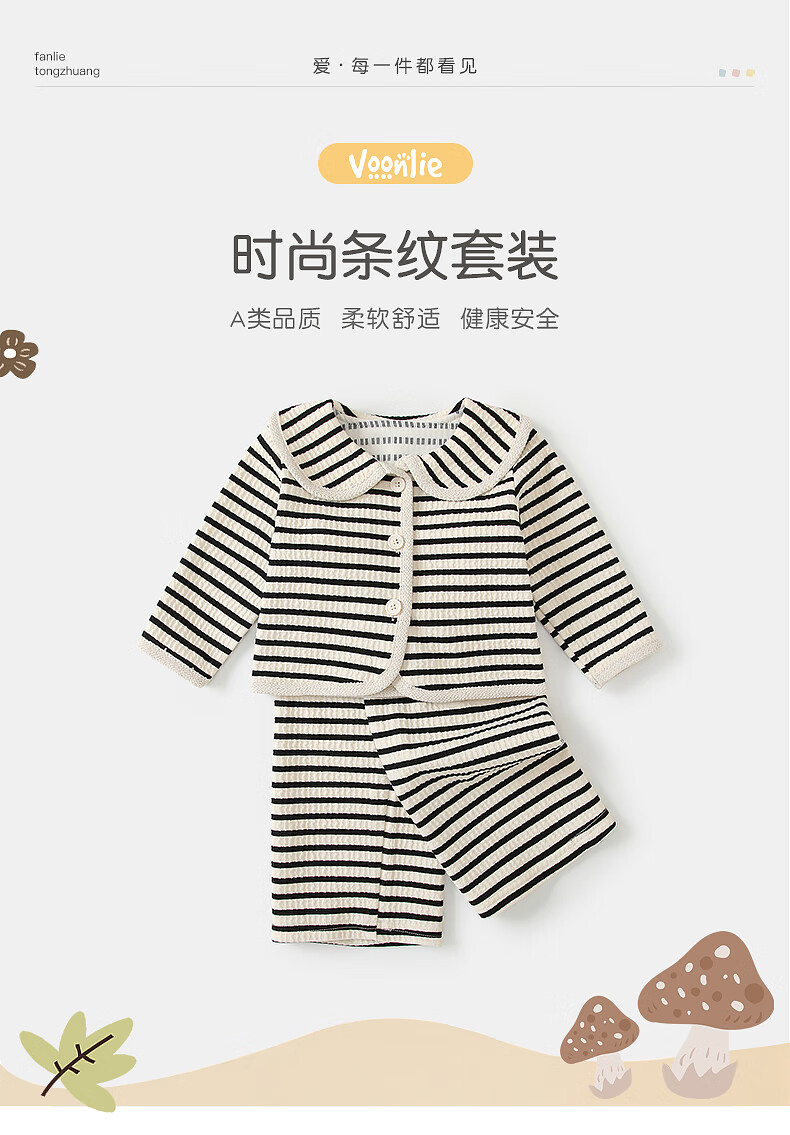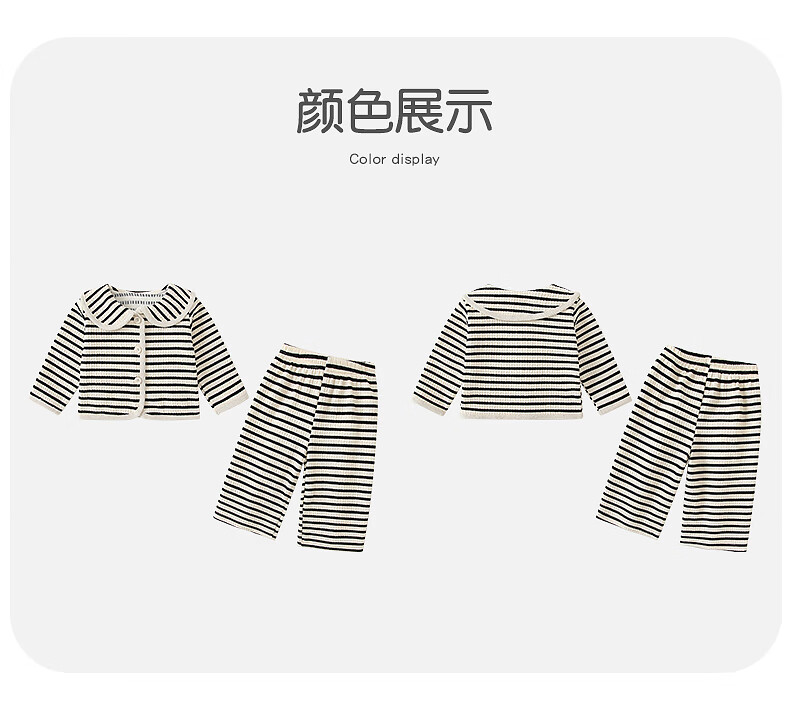 Fanlie VOONLIE Girls Suit Autumn 2025 New Baby Fashionable Two-piece Set Baby Striped Jacket Pants Spring and Autumn Trend Black and White Stripes 80 cm