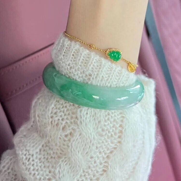 珐莱儿翡翠手镯冰种正品白底青飘绿玉手镯阳绿飘花高冰翡翠冰糯种玉手镯 54mm圈口