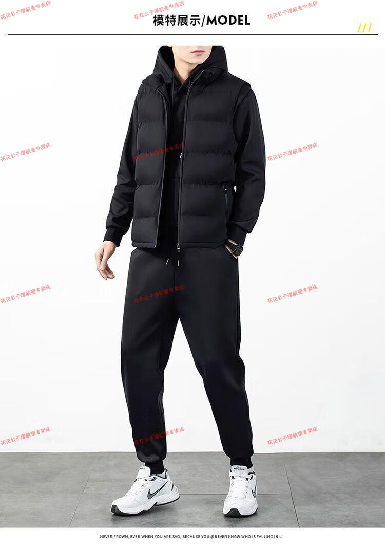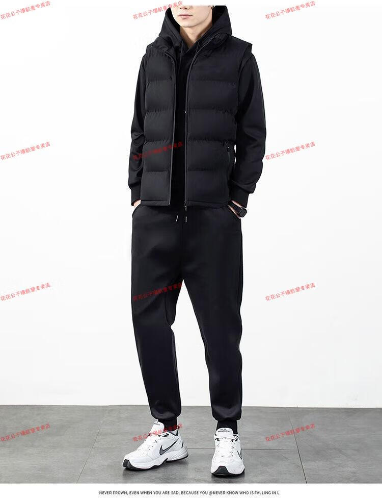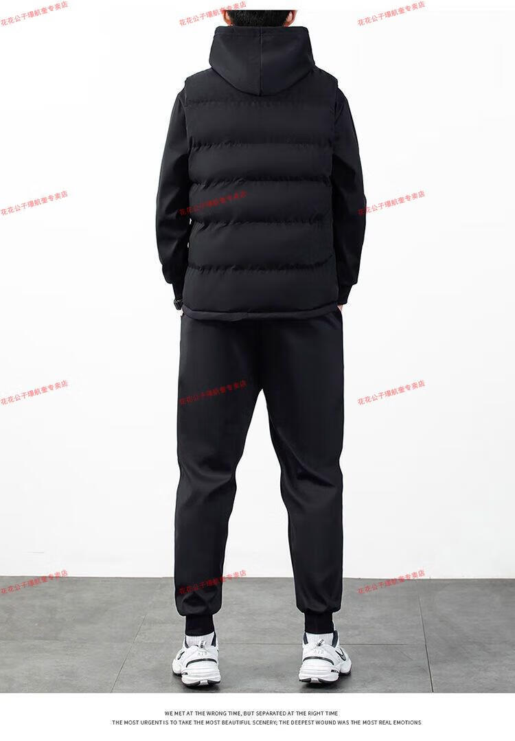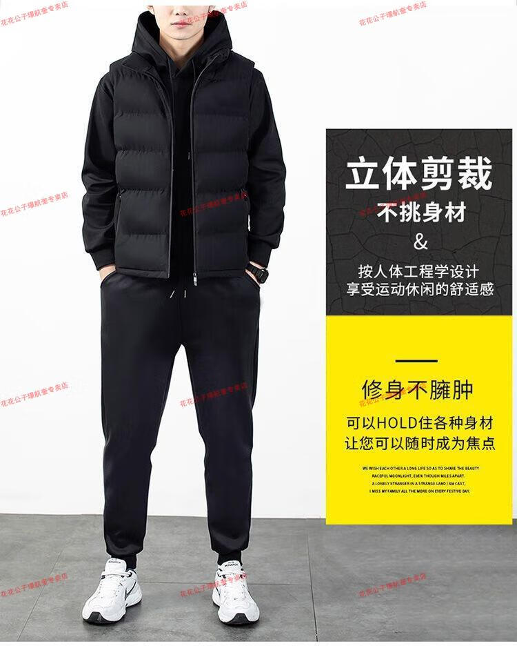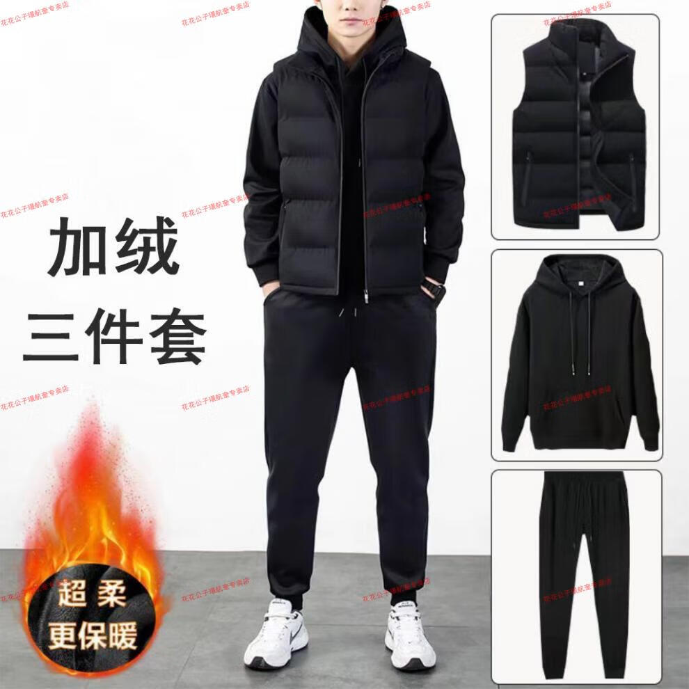 Playboy thickened velvet three-piece autumn and winter men's sports suit men's casual hooded sweatshirt plus velvet men's vest jacket black three-piece set pure cotton plus velvet XL 115-130Jin Jin equals 0.5 kg
