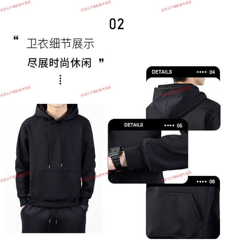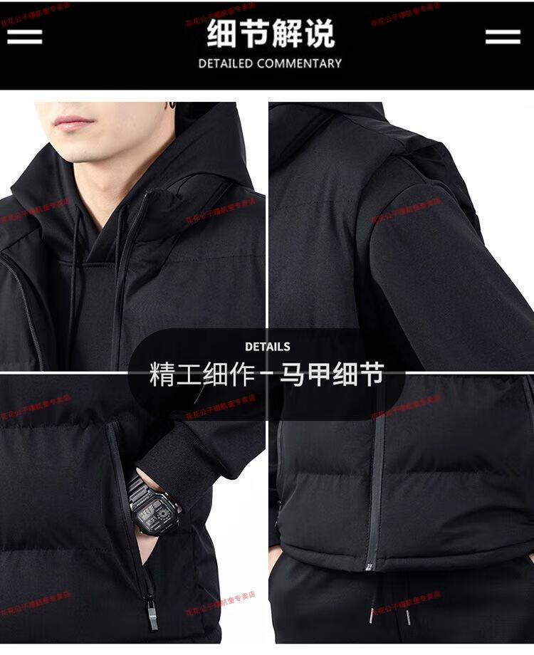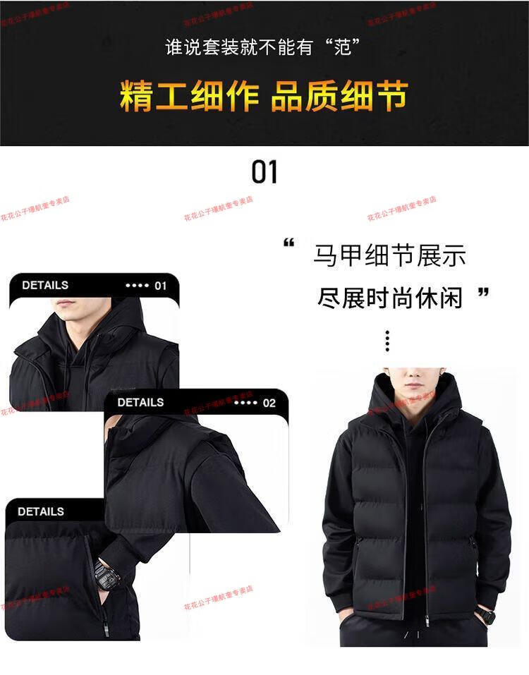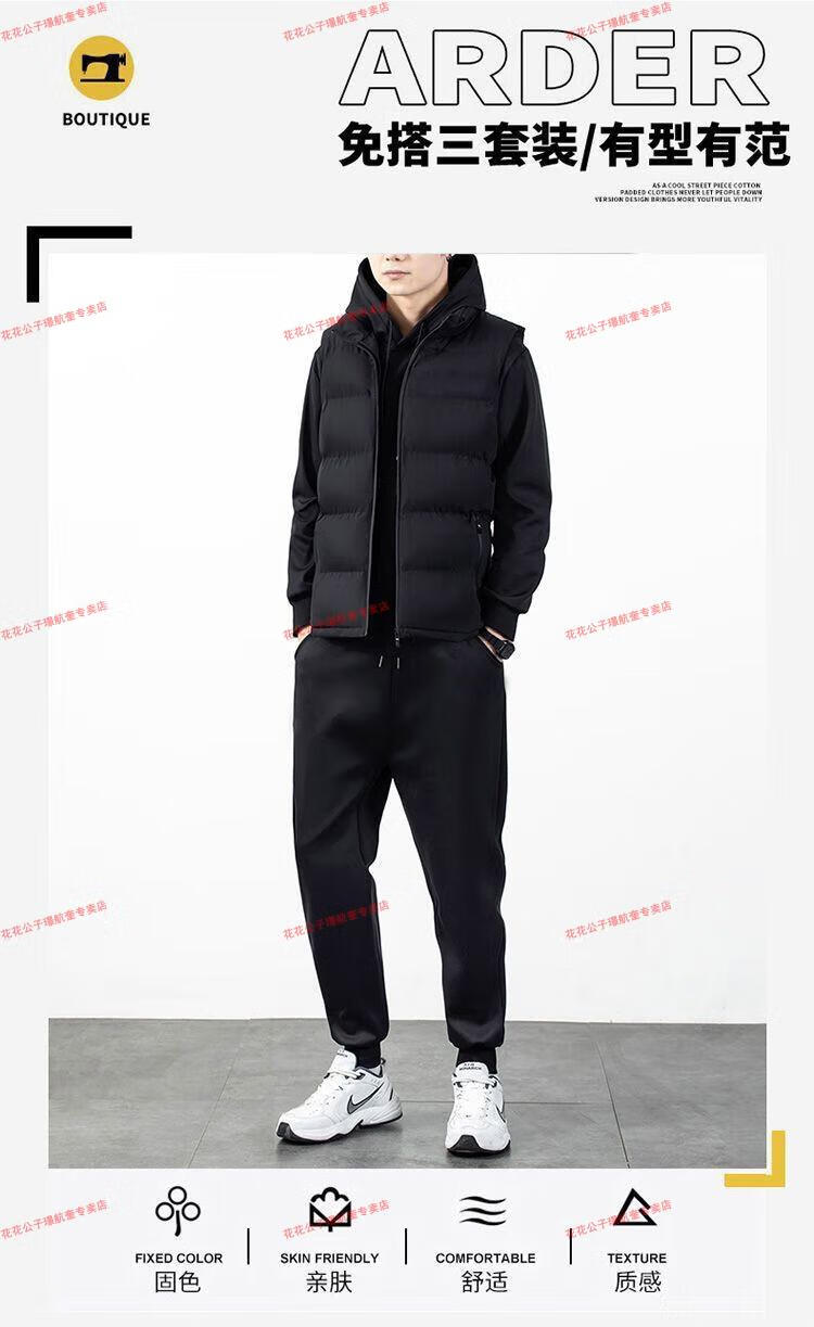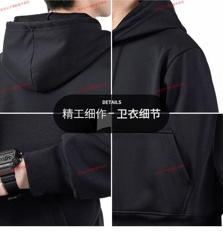 Playboy thickened velvet three-piece autumn and winter men's sports suit men's casual hooded sweatshirt plus velvet men's vest jacket black three-piece set pure cotton plus velvet XL 115-130Jin Jin equals 0.5 kg