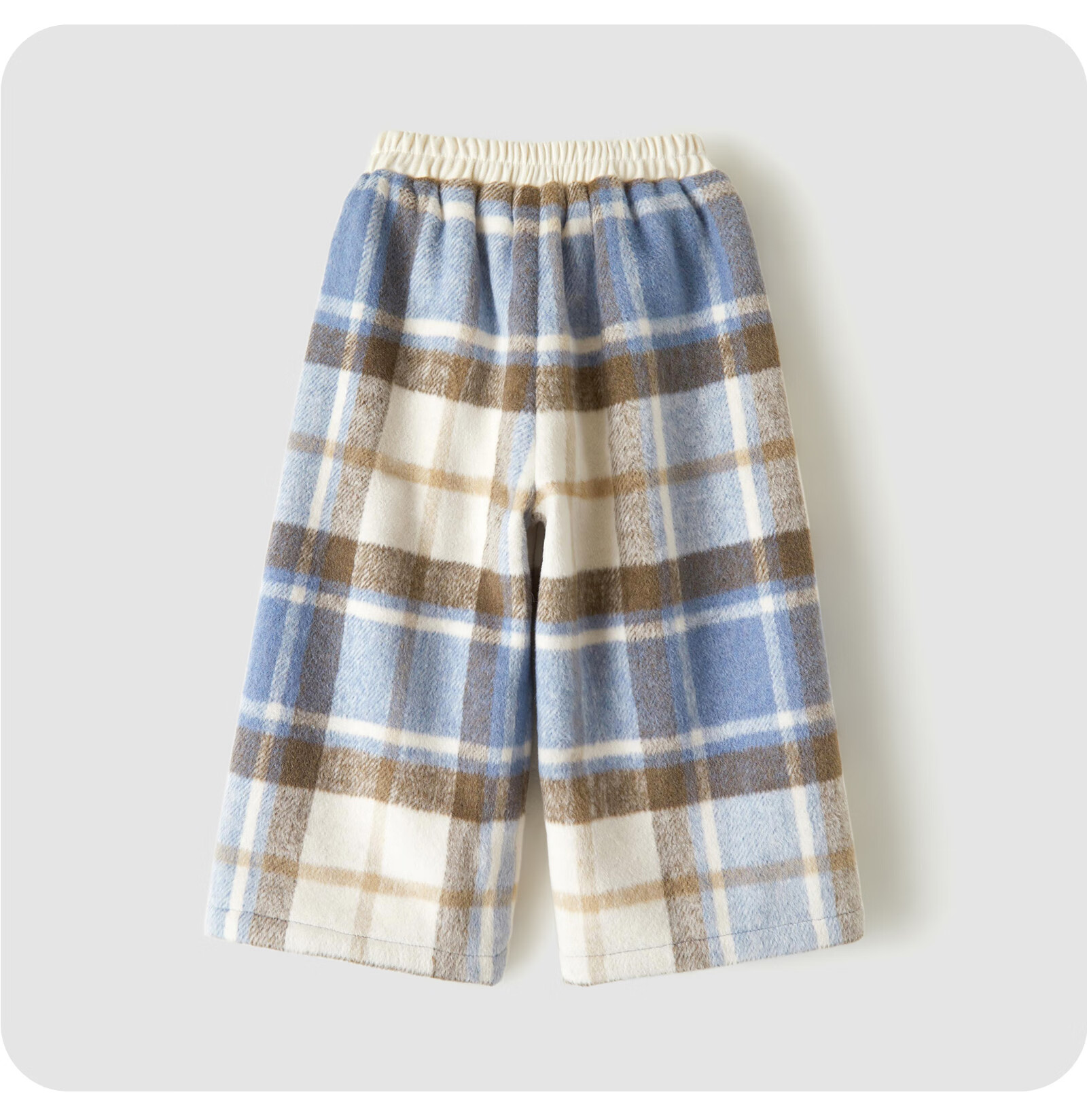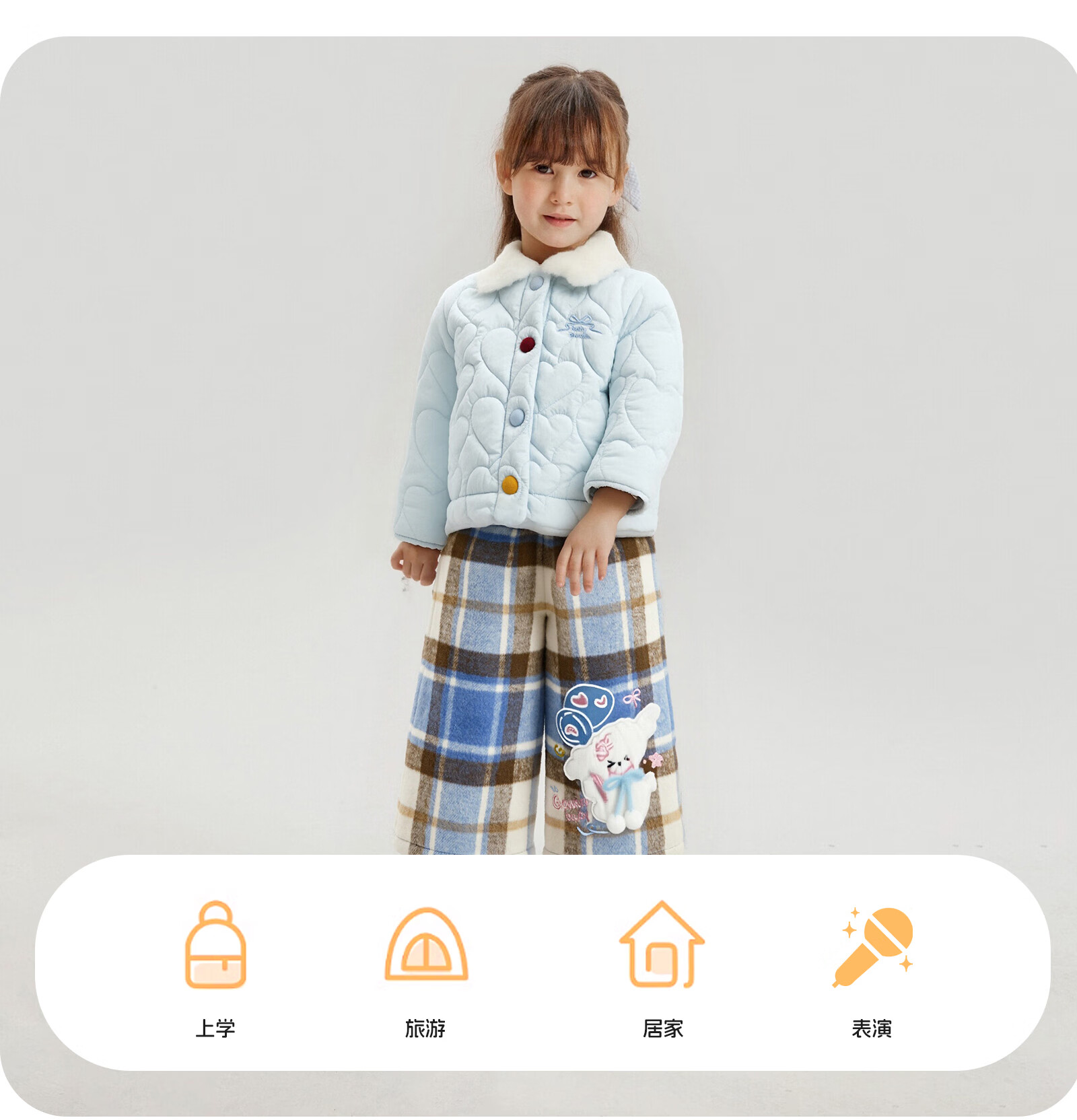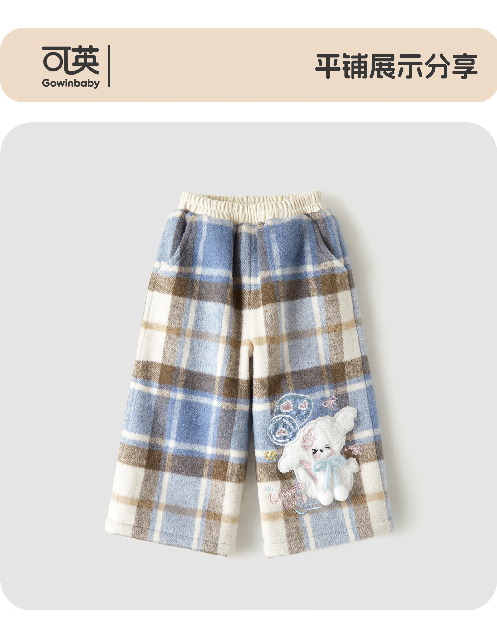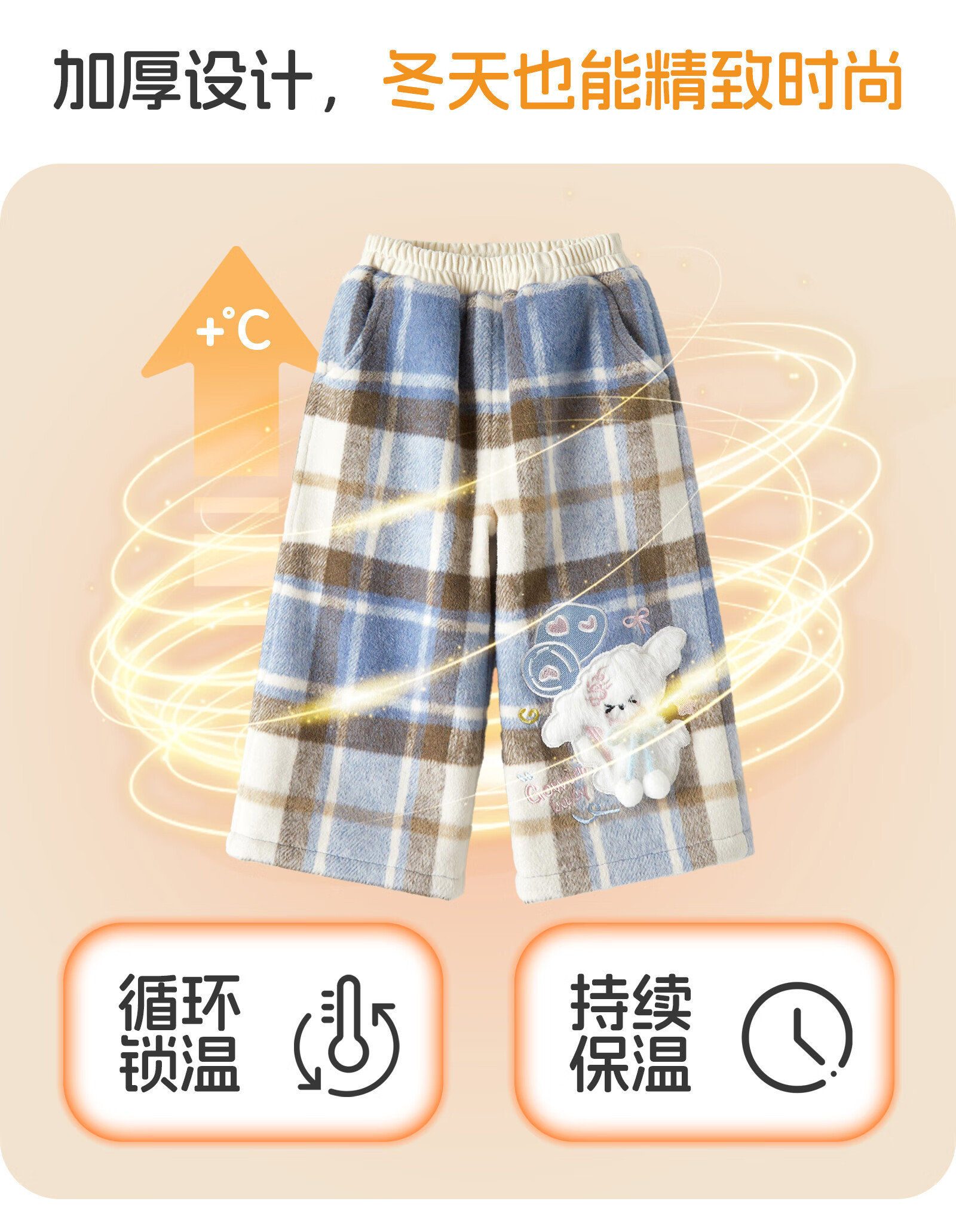 Keying Girls' Pants Plus Velvet New 2025 Autumn and Winter Girls Cartoon Warm Casual Pants Women's Anti-Style Pattern Wide-Leg Pants Blue 110 (Suitable for Height 100cm-110cm)