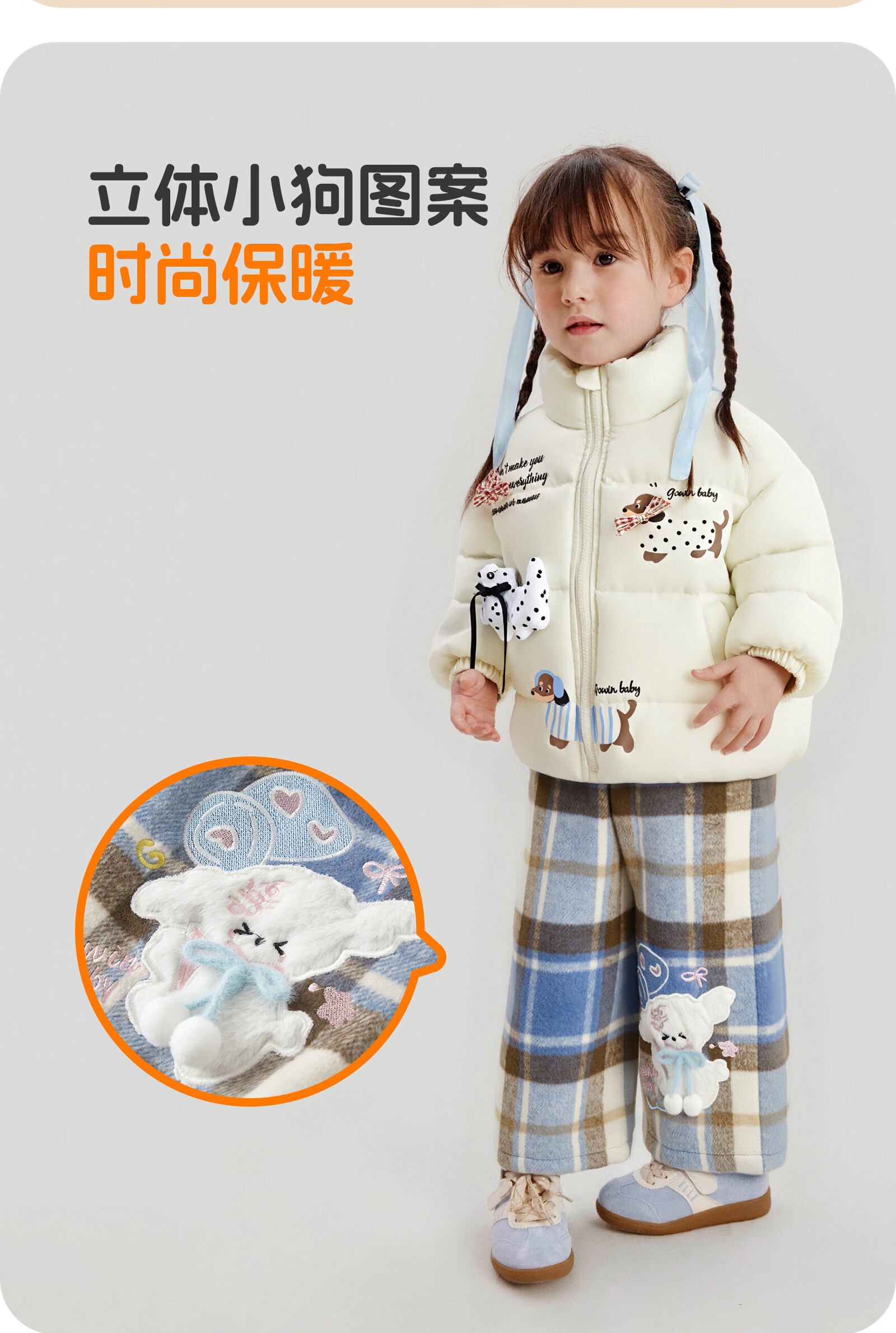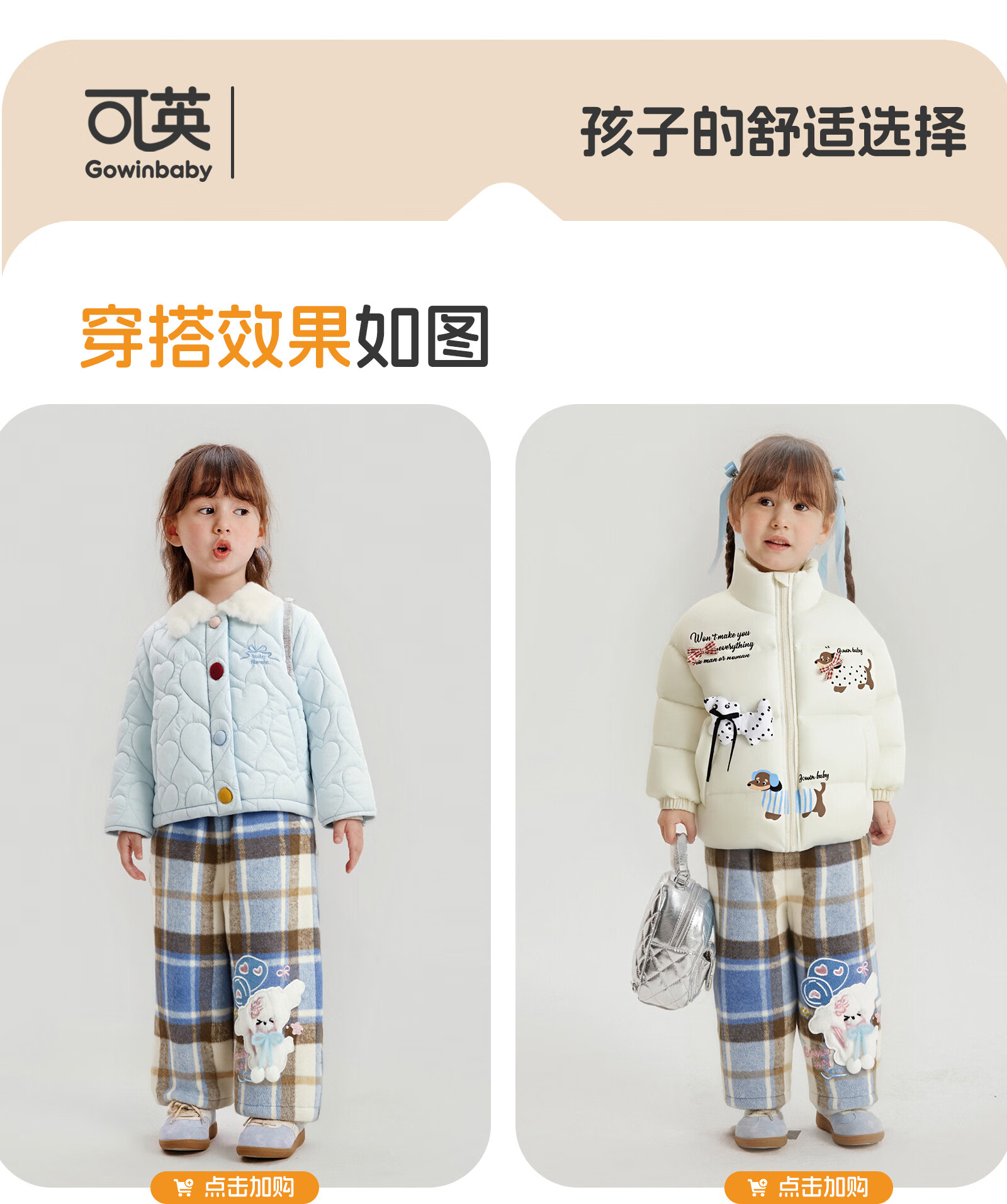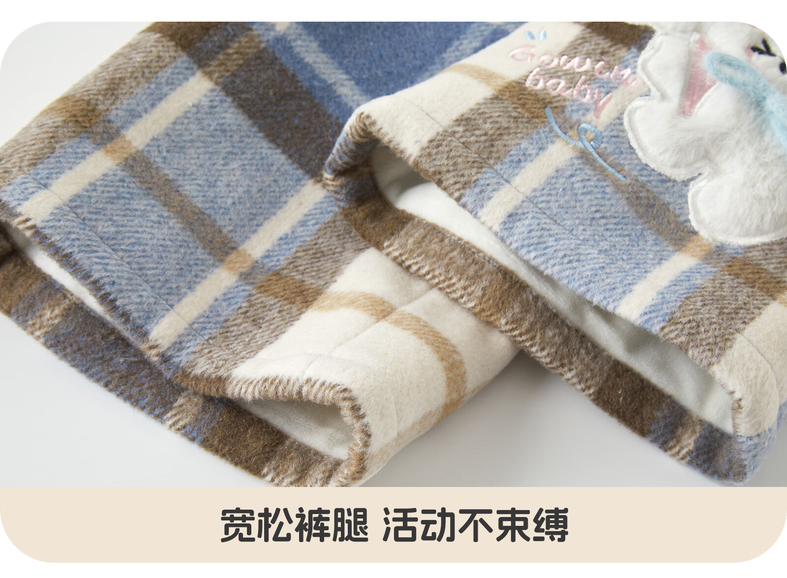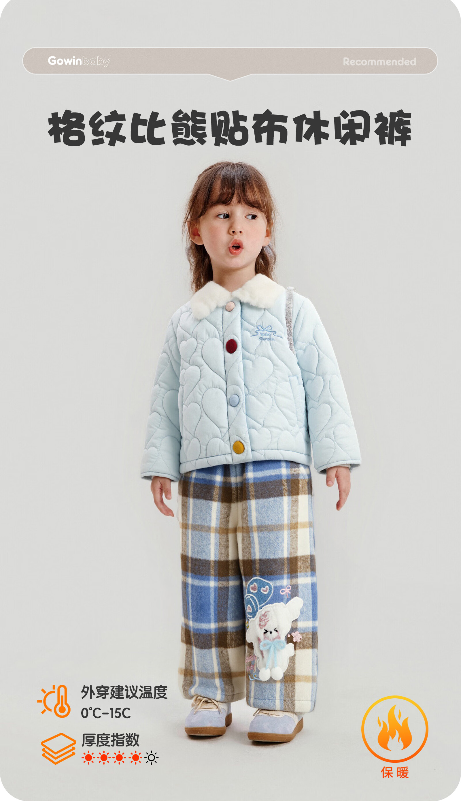 Keying Girls' Pants Plus Velvet New 2025 Autumn and Winter Girls Cartoon Warm Casual Pants Women's Anti-Style Pattern Wide-Leg Pants Blue 110 (Suitable for Height 100cm-110cm)
