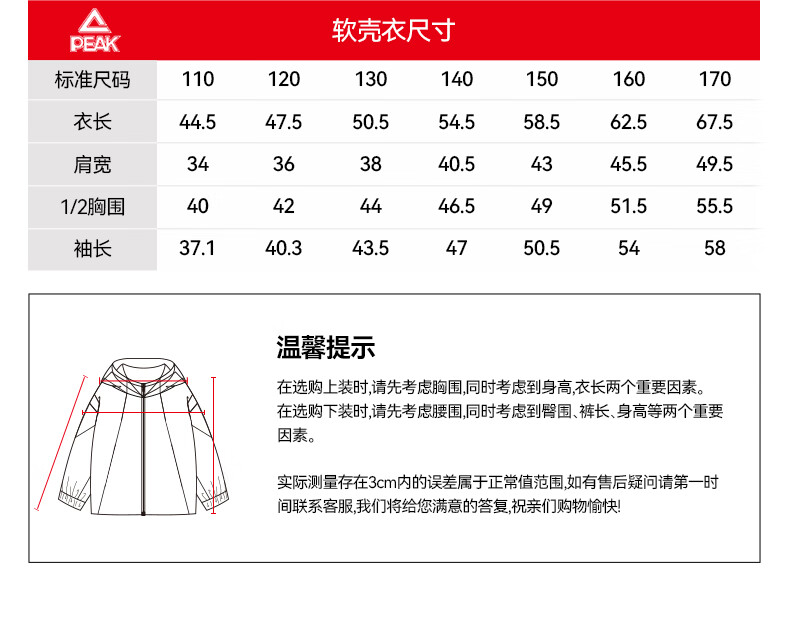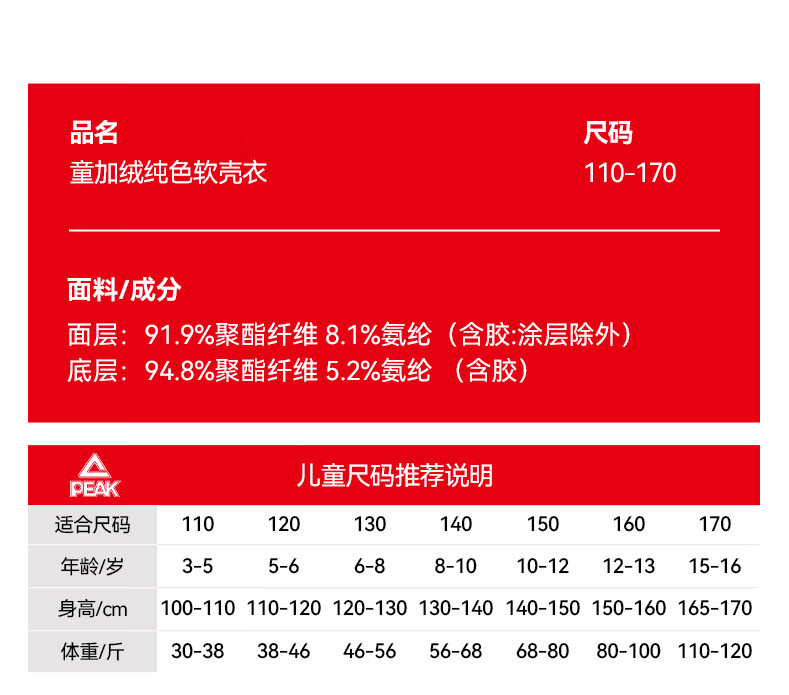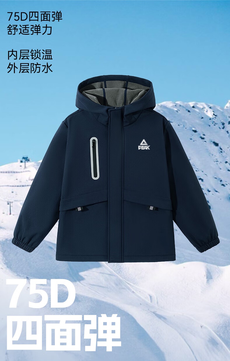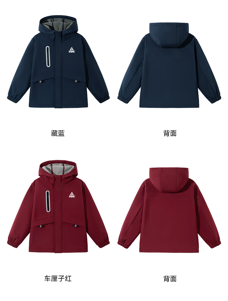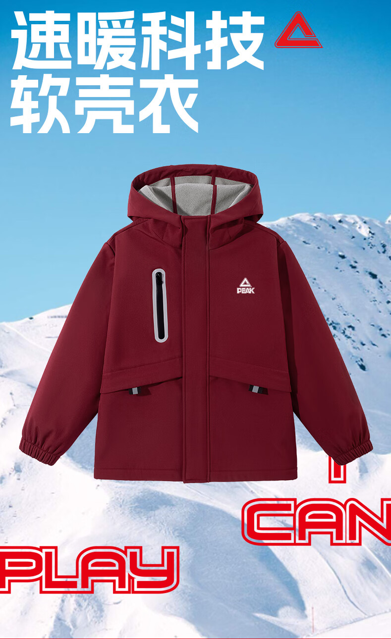 匹克童装儿童外套秋冬款2025新款男童保暖软壳衣服冬季女童防水运动服 【加绒软壳衣】车厘子红 160