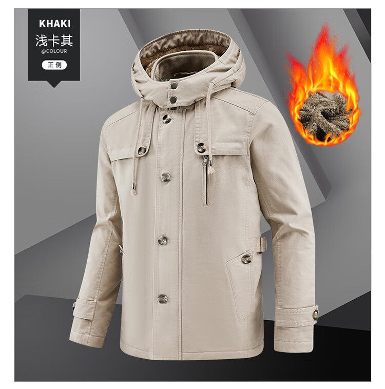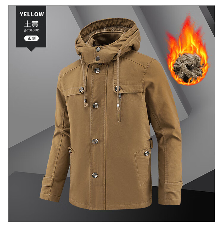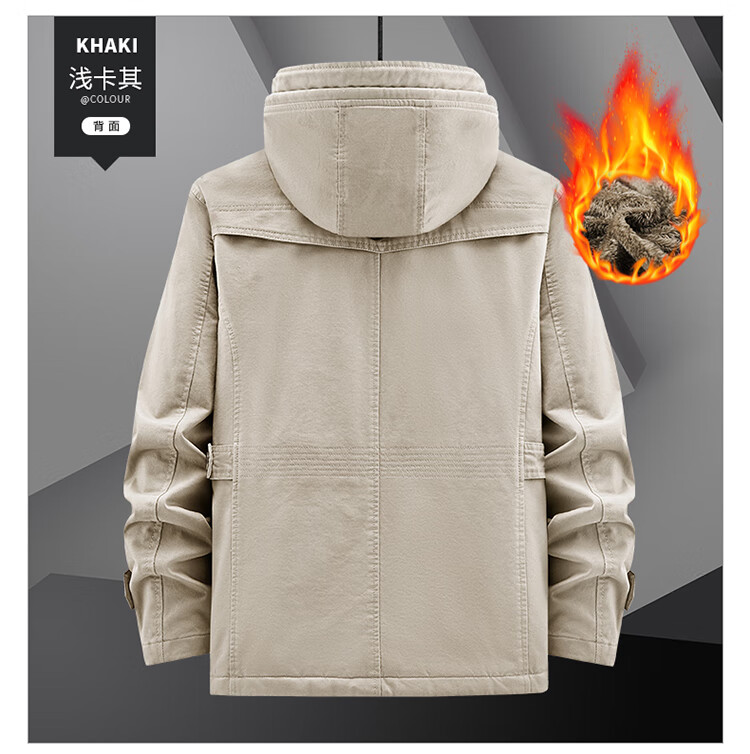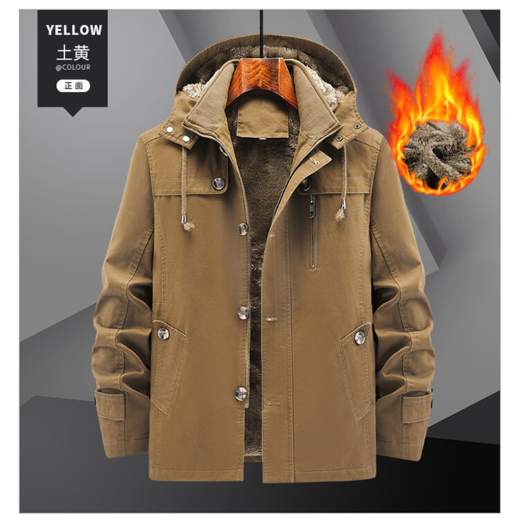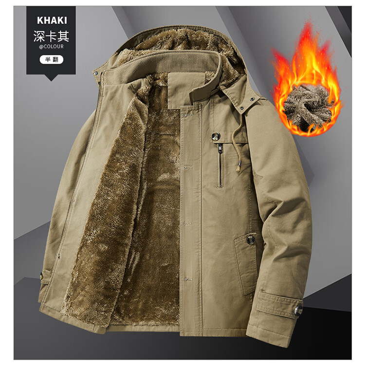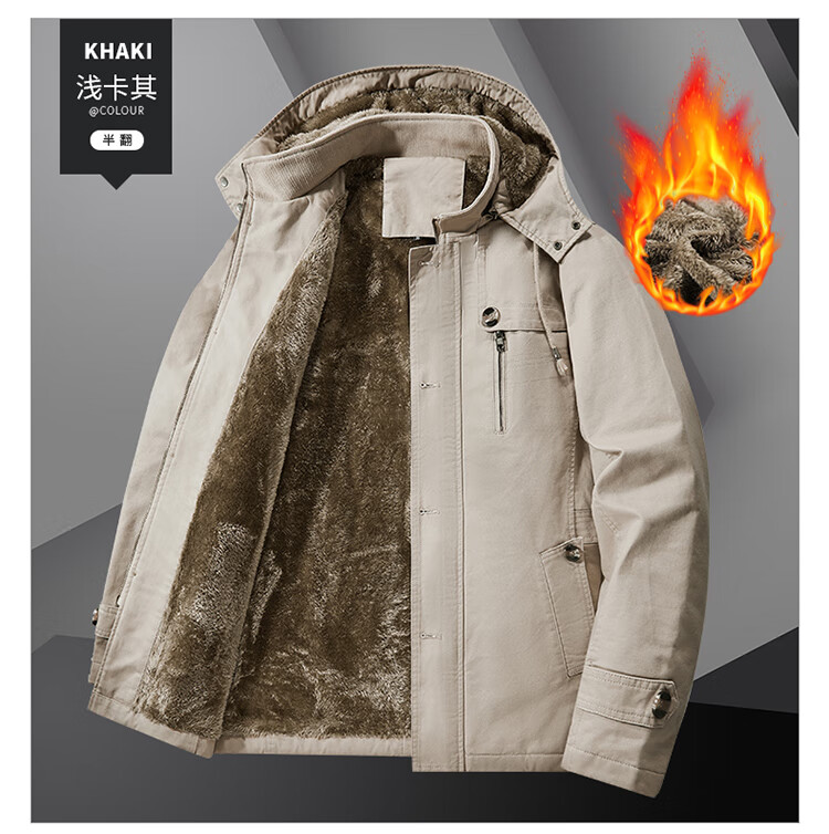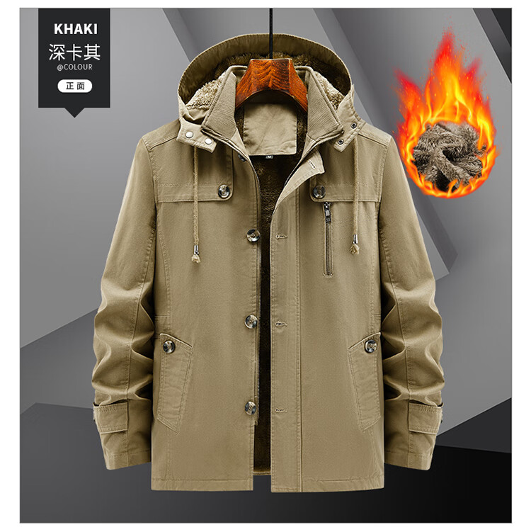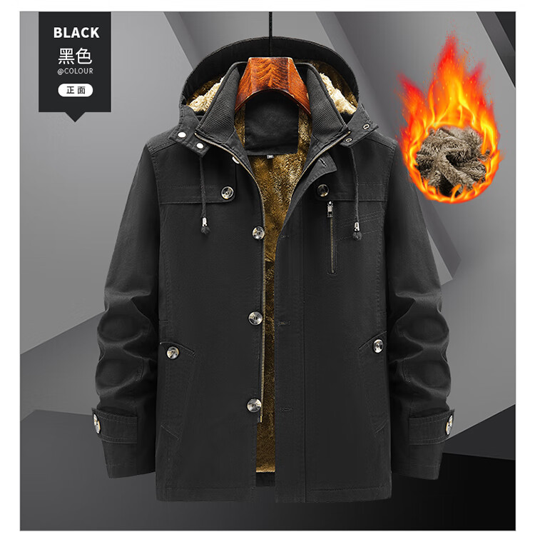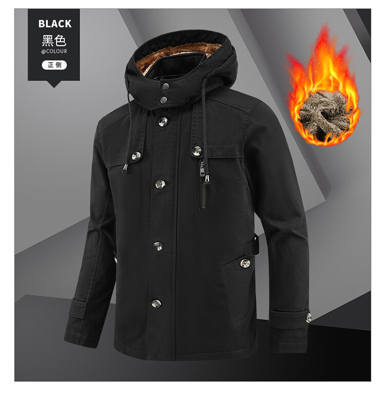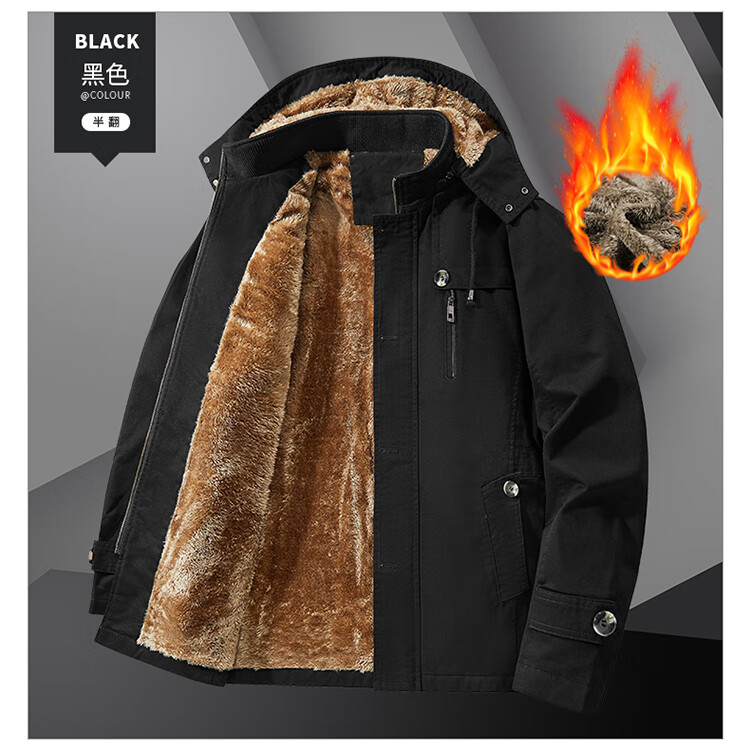罗蒙(ROMON)纯棉男士秋冬季加绒加厚休闲连帽大码夹克衫风衣外套防风保暖棉袄 加绒黑色 厚款 L 建议110-120斤