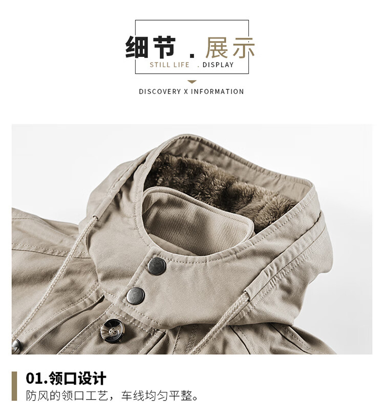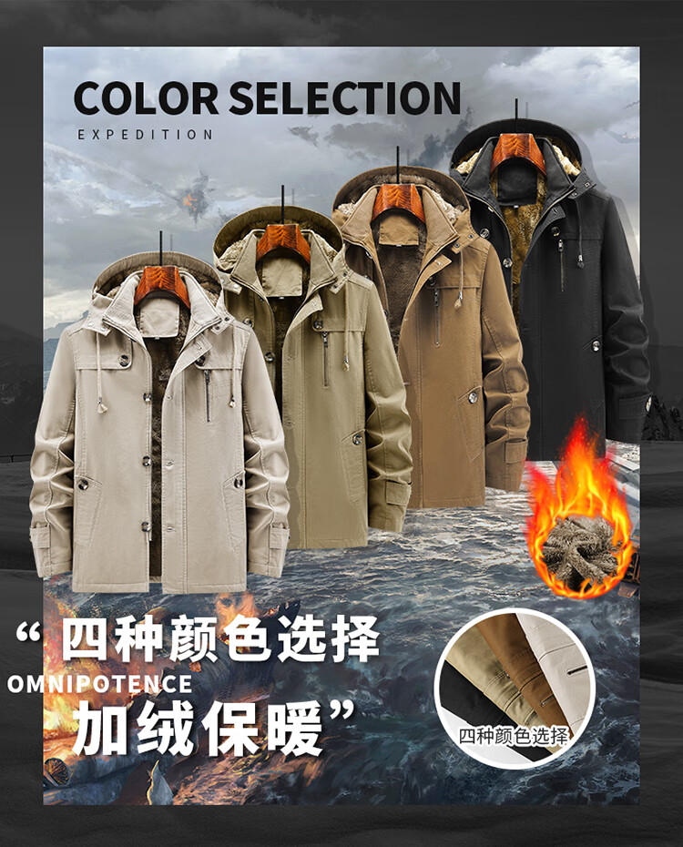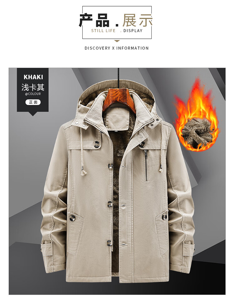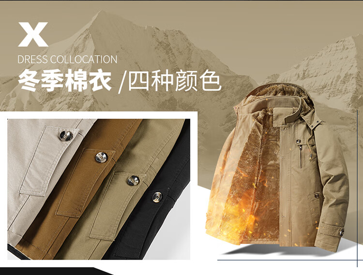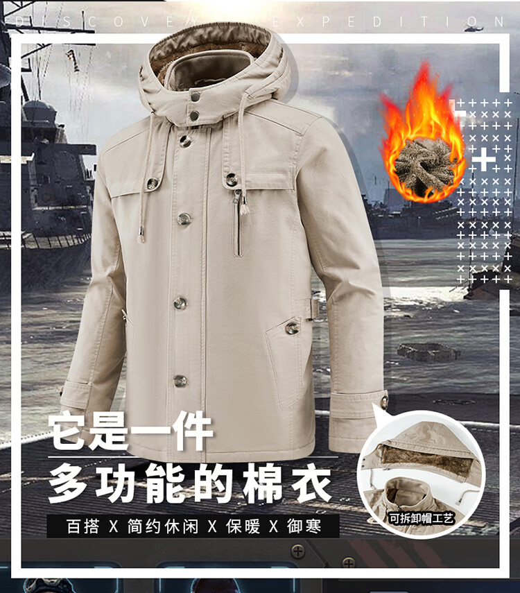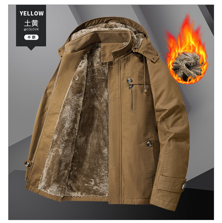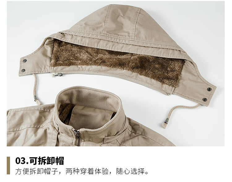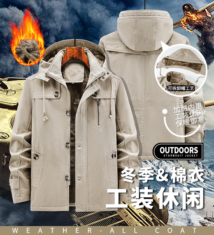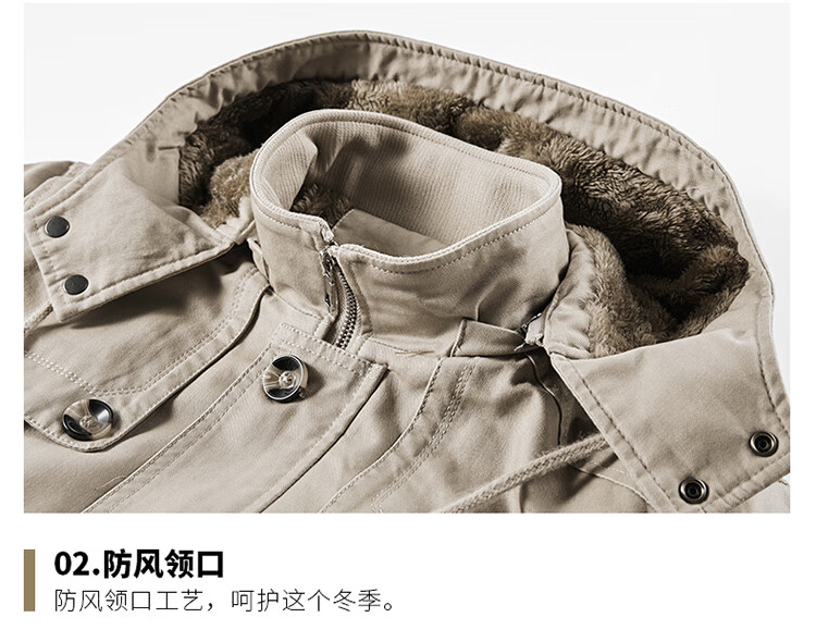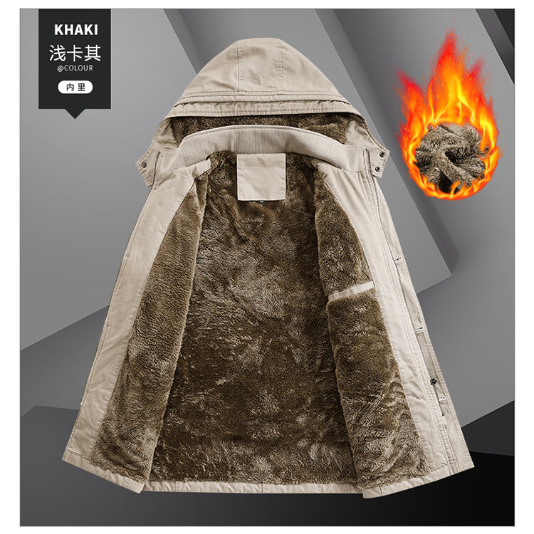 罗蒙(ROMON)纯棉男士秋冬季加绒加厚休闲连帽大码夹克衫风衣外套防风保暖棉袄 加绒黑色 厚款 L 建议110-120斤