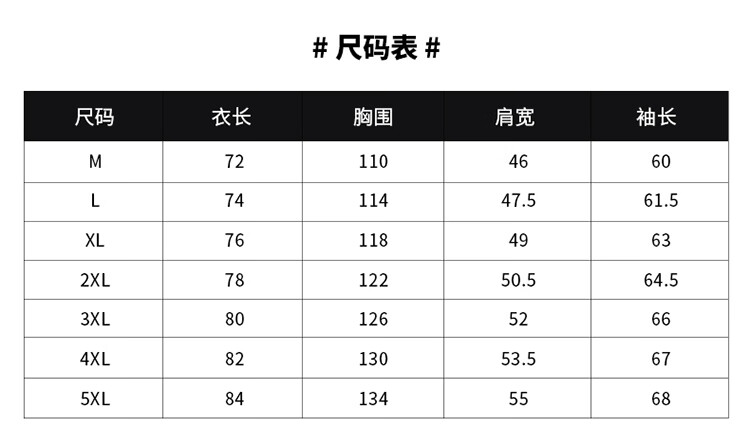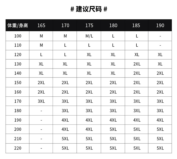 China (cm) 165 / 88-90 170 / 96-98 175 / 108-110 180 / 118-122 185 / 126-130