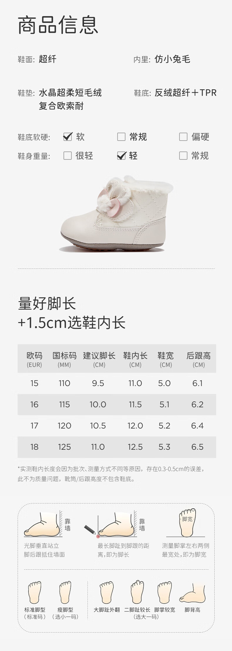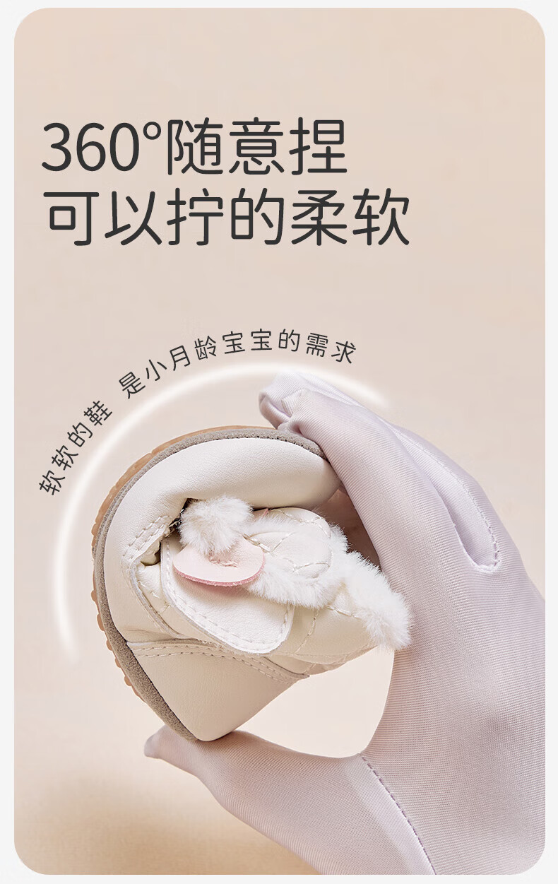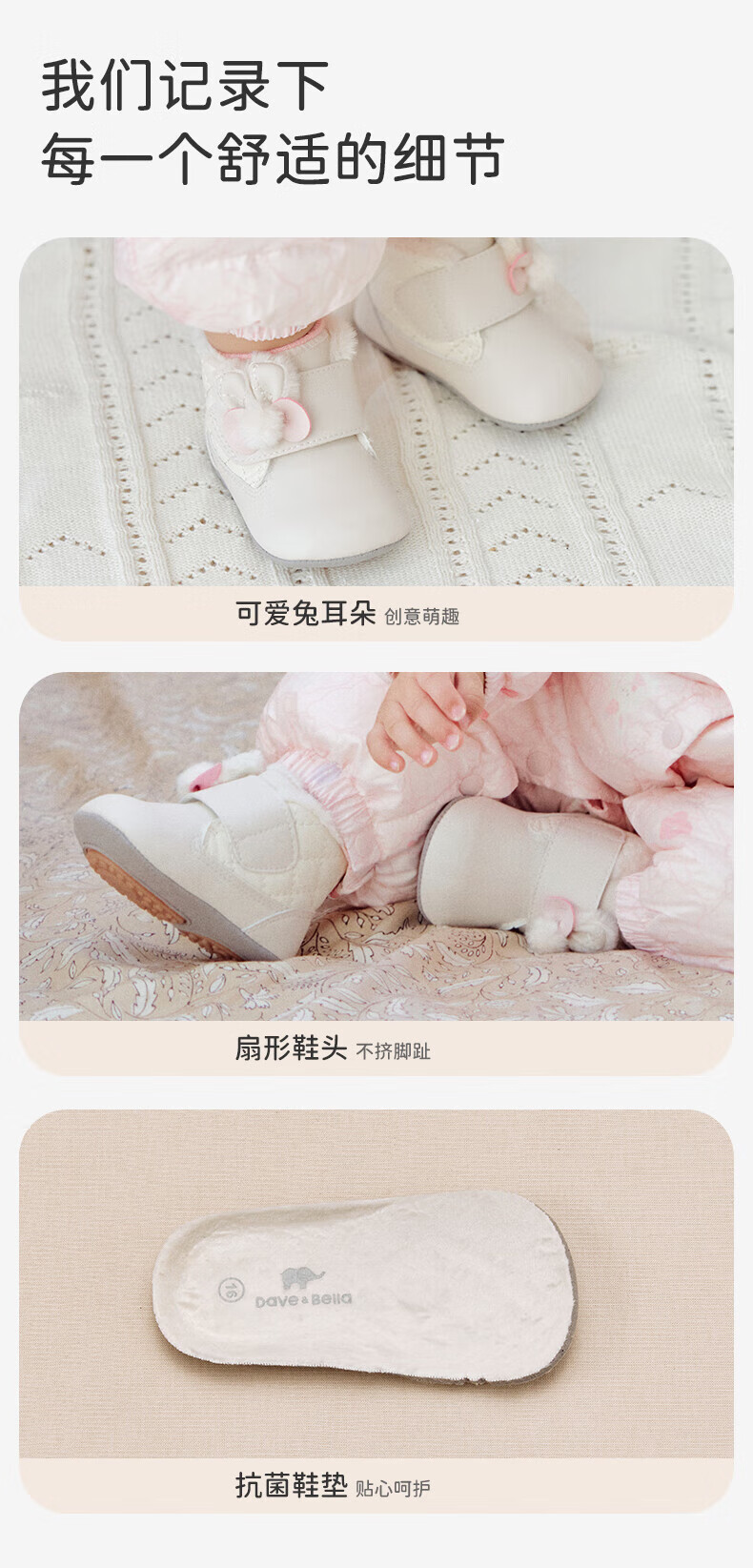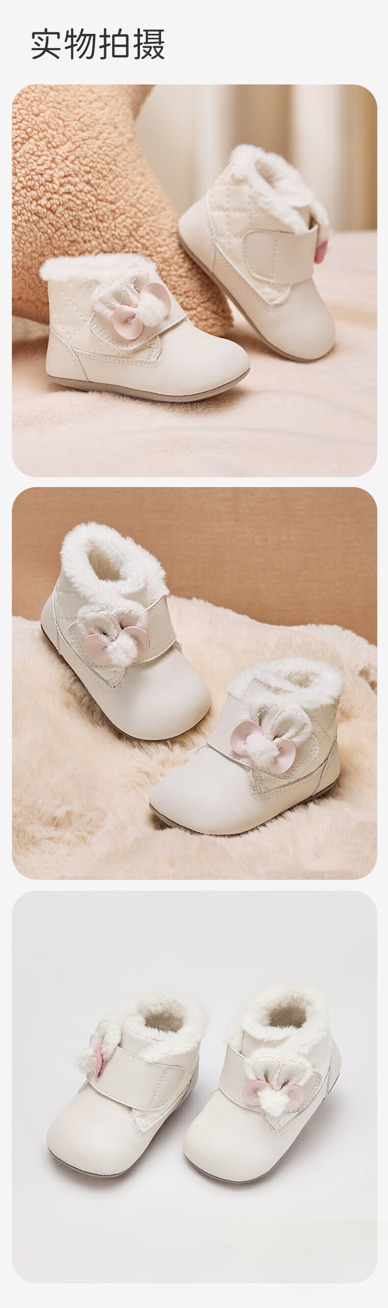 DAVE&BELLA Winter-Pre-Step-Schuhe für neue Baby-Mädchen, Baby-Prinzessin-Schuhe für Neugeborene, weiche Sohlen, Kleinkind-Schuhe, Creme-Aprikose, bereit, Größe 15