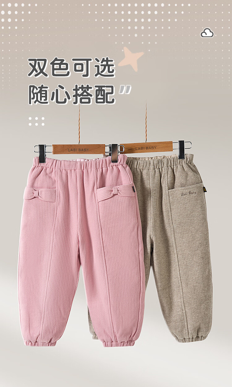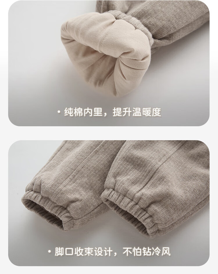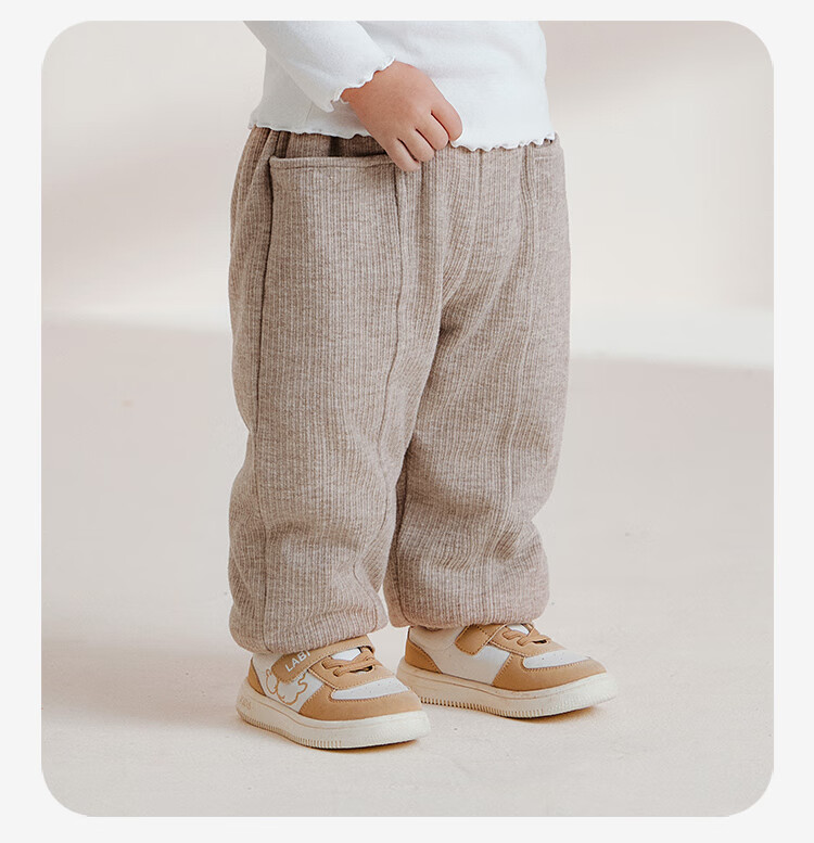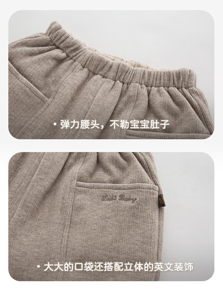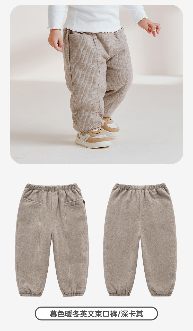 Rabbi children's girdle trousers 80g cotton-padded warm 2025 autumn and winter new style thickened warm casual trousers for boys and girls, dark khaki 110 cm