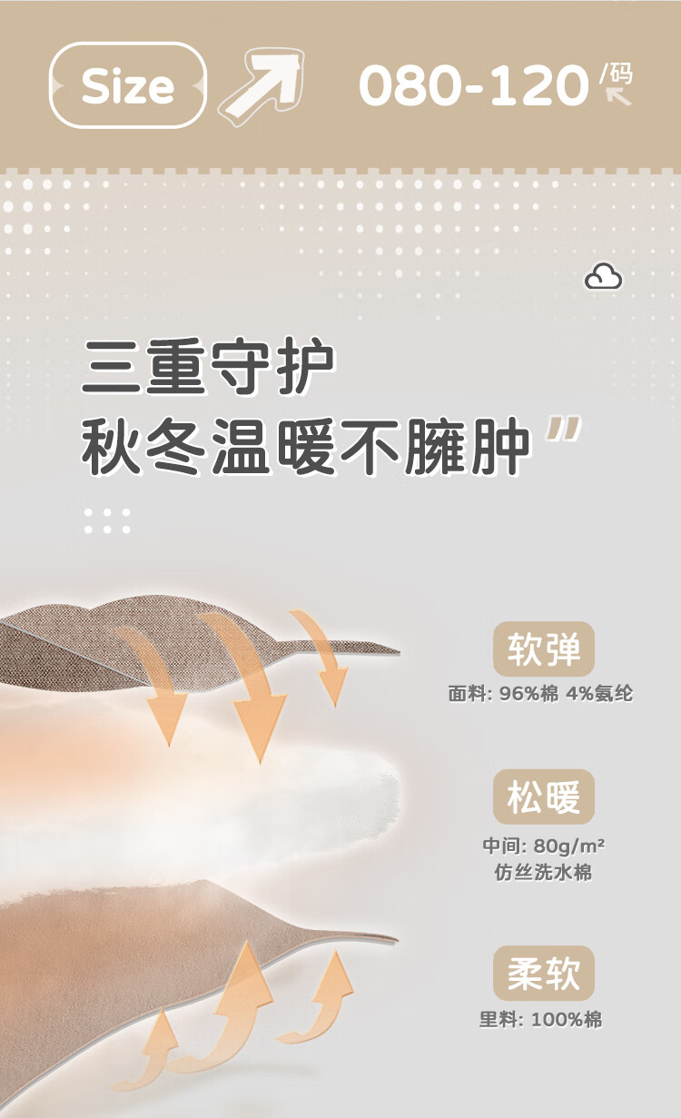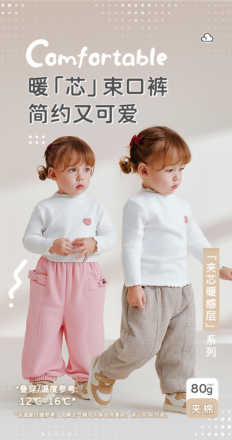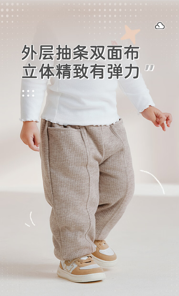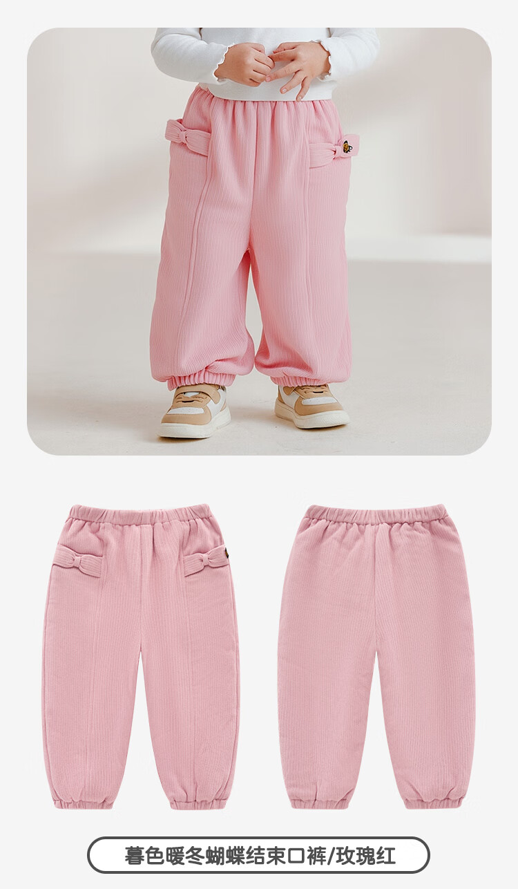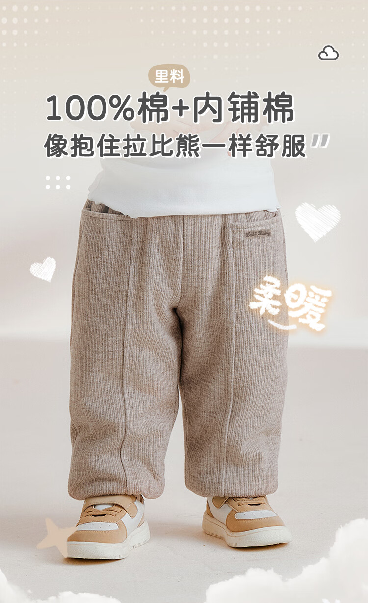 Rabbi children's girdle trousers 80g cotton-padded warm 2025 autumn and winter new style thickened warm casual trousers for boys and girls, dark khaki 110 cm