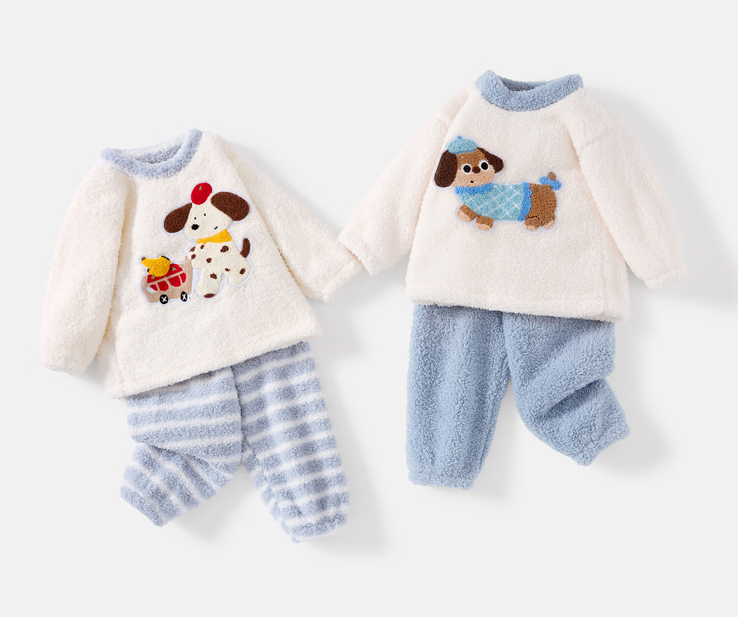 班喜迪儿童睡衣秋冬2025新款珊瑚绒套装女童上衣宝宝裤子秋季男童家居服 蓝条纹 100