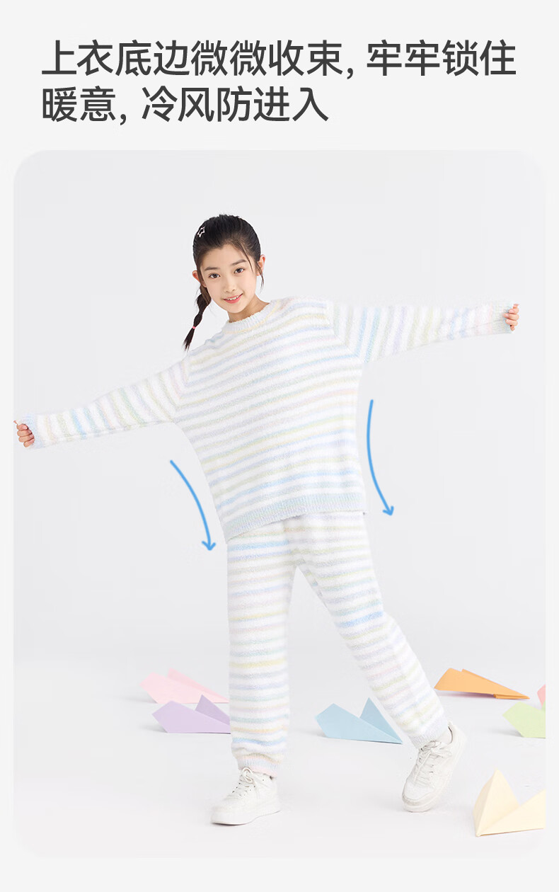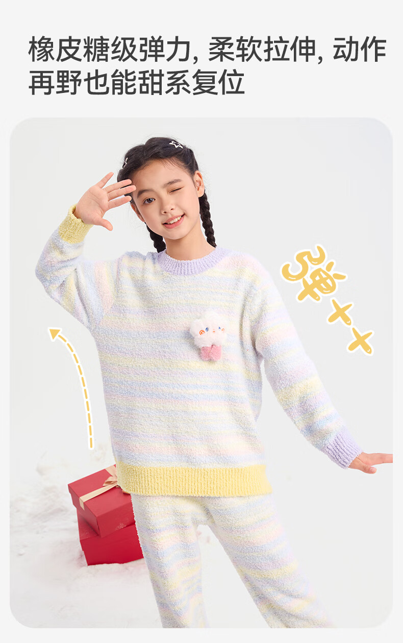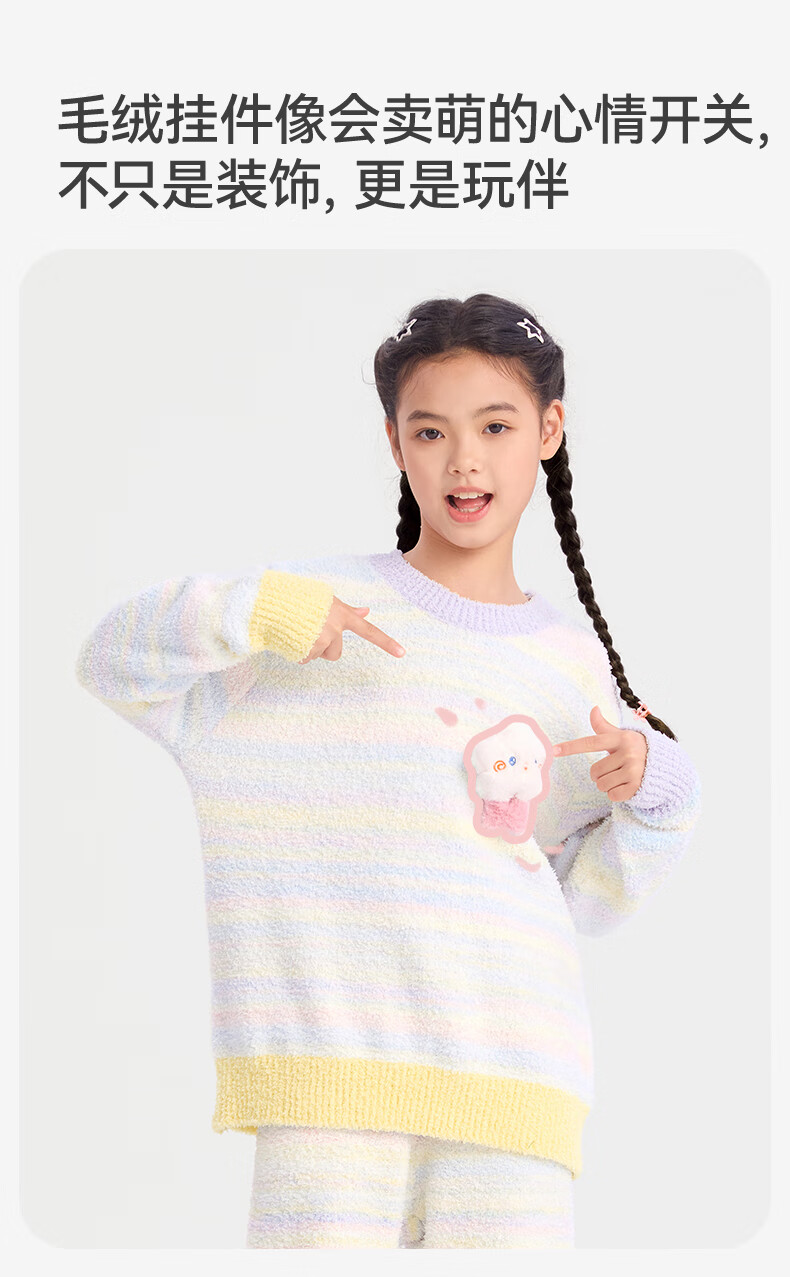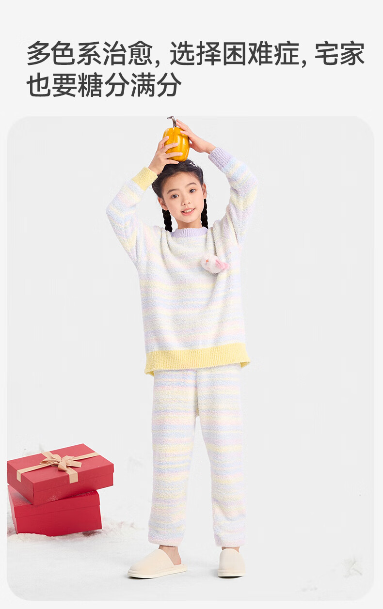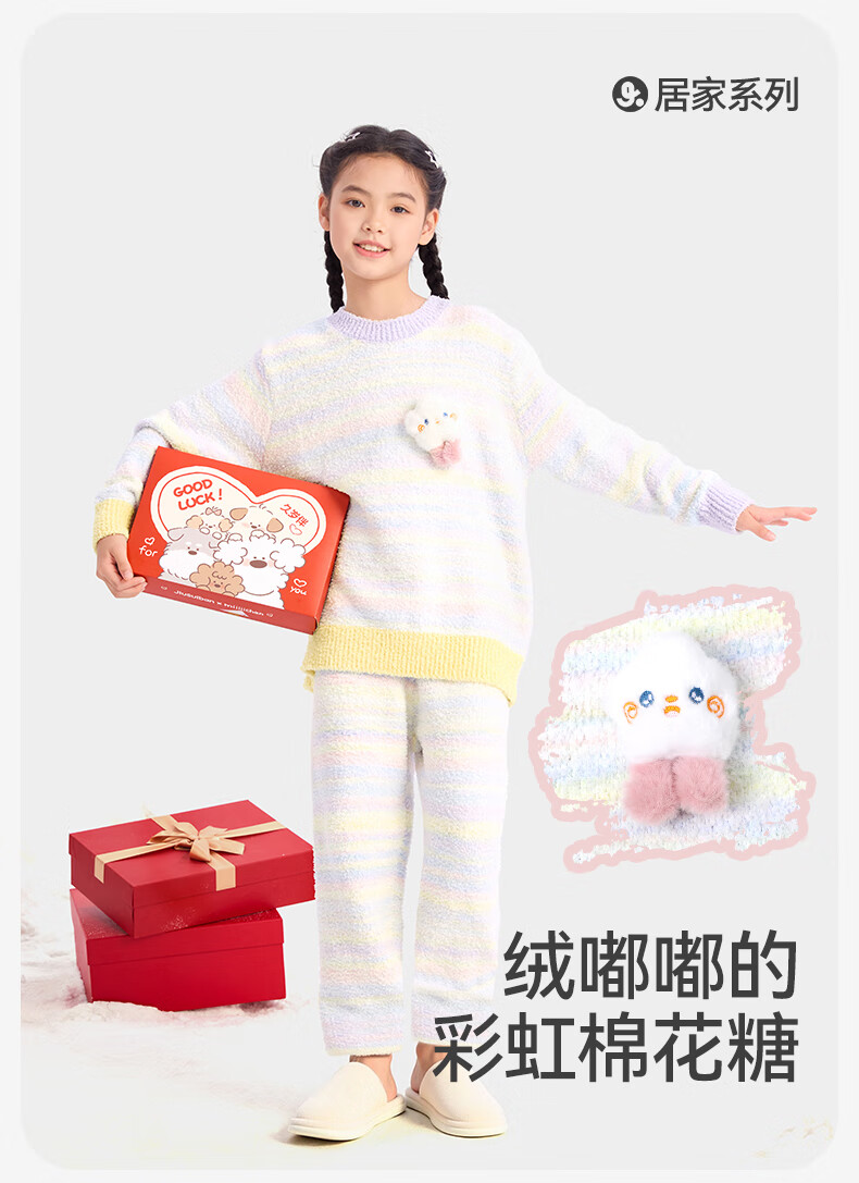 Long-term companion children's pajamas girls half-velvet home clothes autumn and winter older children category A can be worn outside plus velvet thickened warm suit color powder /510168 120
