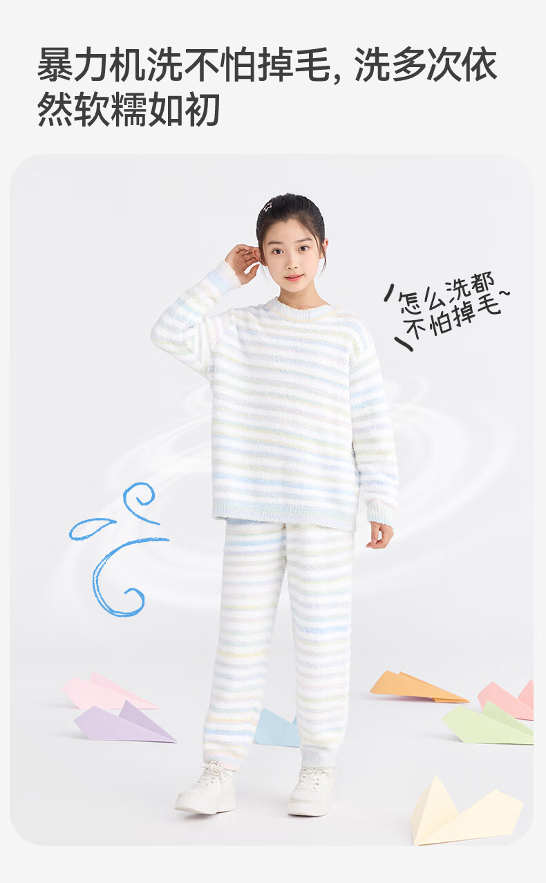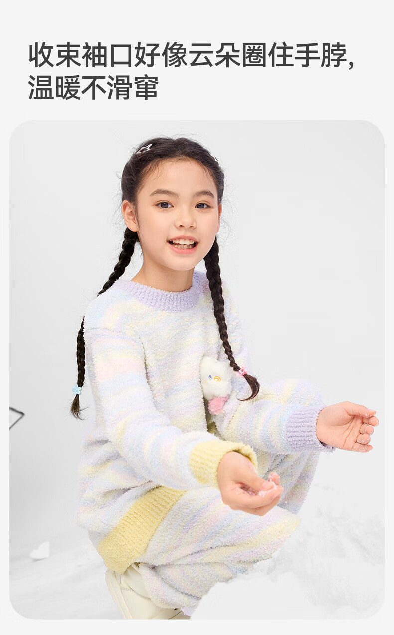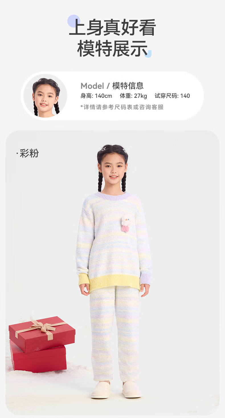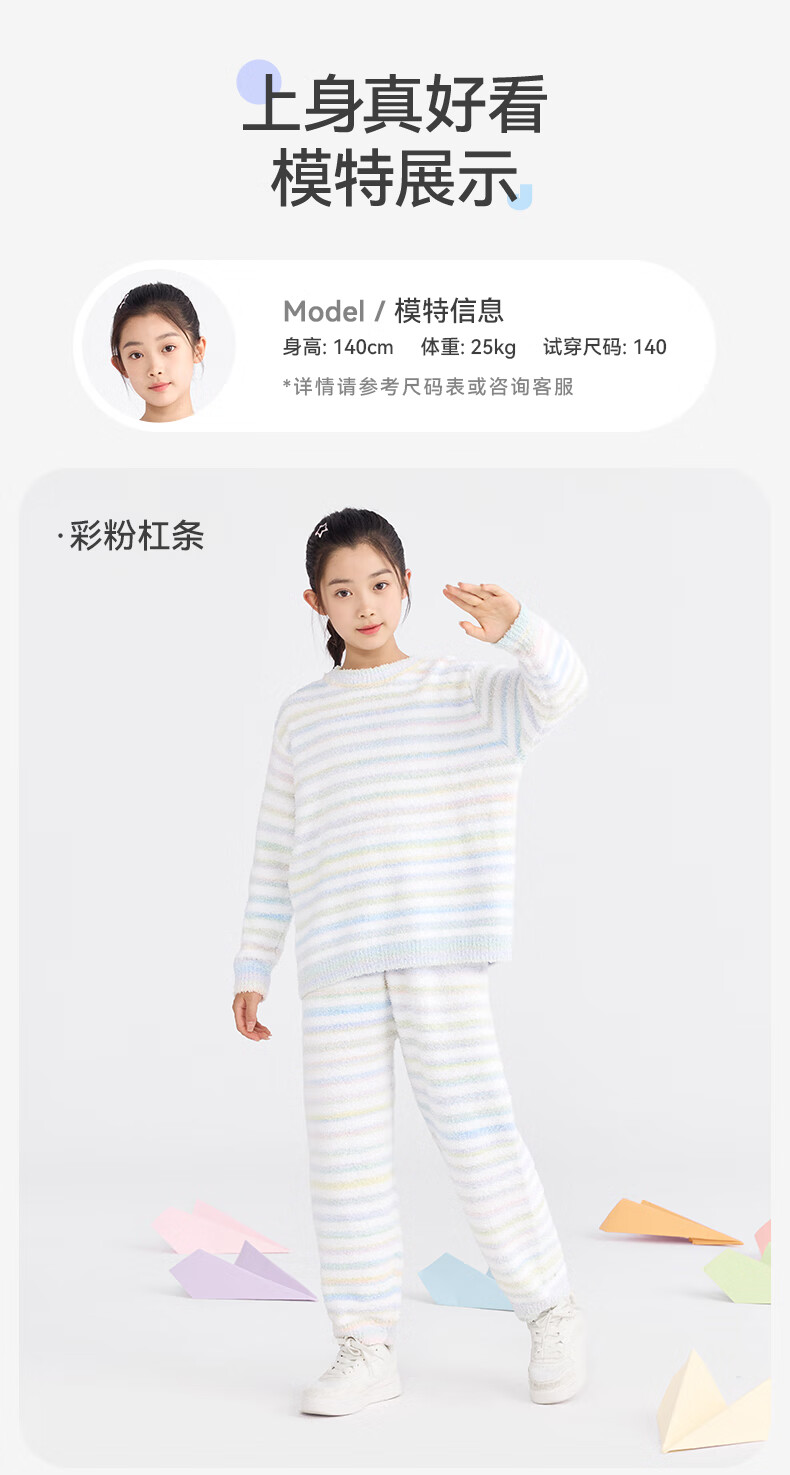 Long-term companion children's pajamas girls half-velvet home clothes autumn and winter older children category A can be worn outside plus velvet thickened warm suit color powder /510168 120