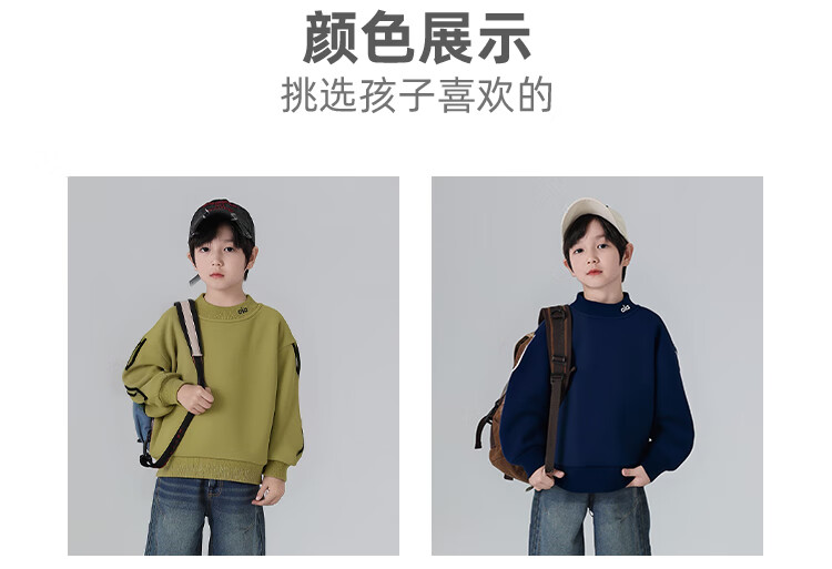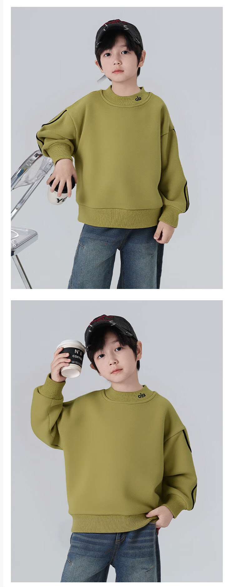YOUYOUTONGHUA Autumn and Winter Children's Sweaters Plush Cotton Comfortable 2025 Boys Winter Clothes Western Style Inner Bottoming Shirt for Middle and Large Children Yellow Green 150 72