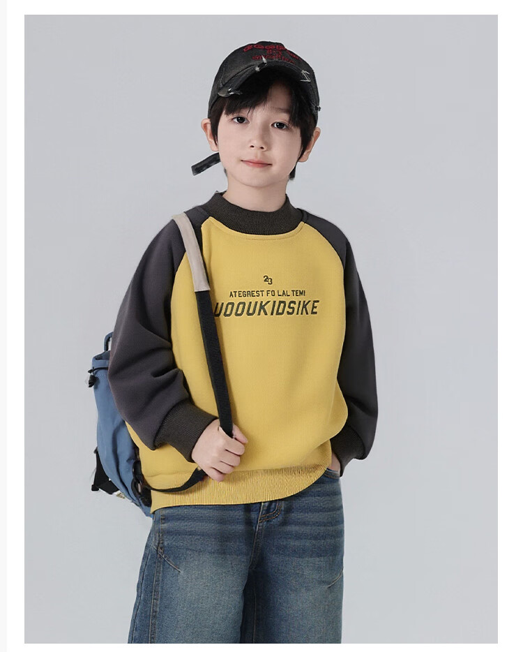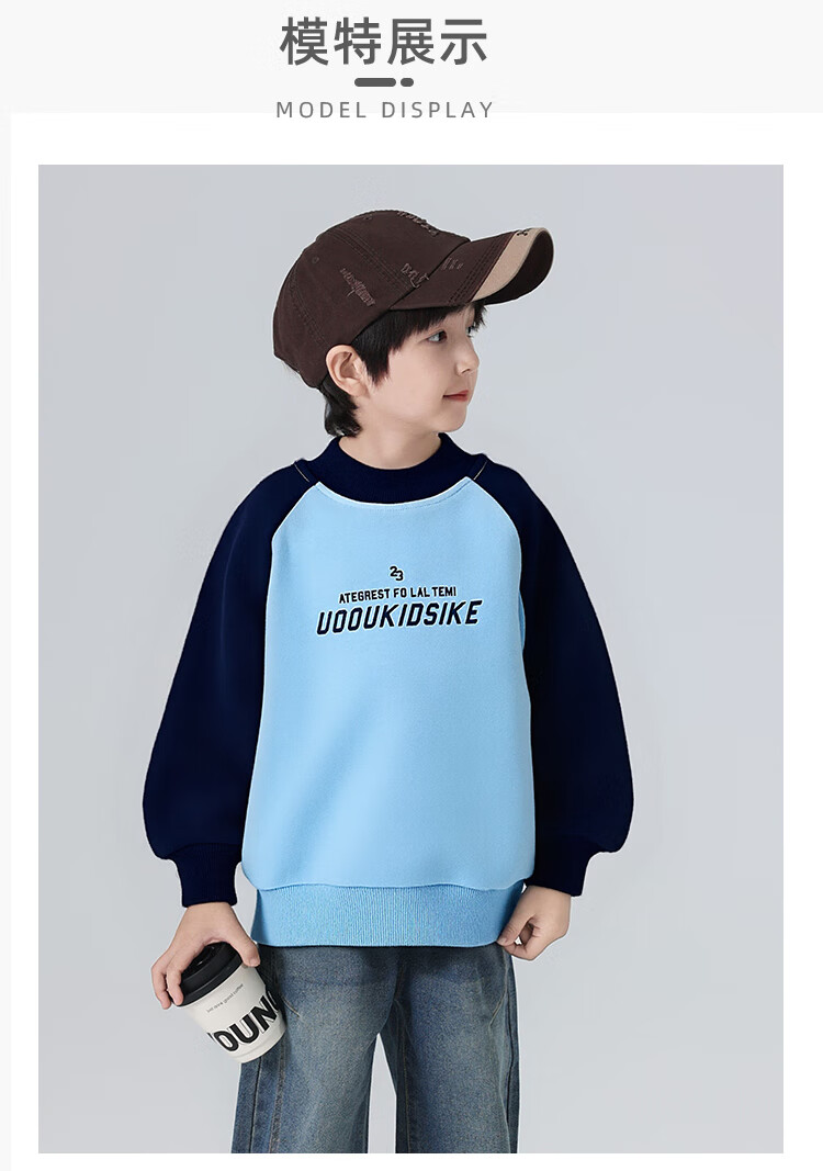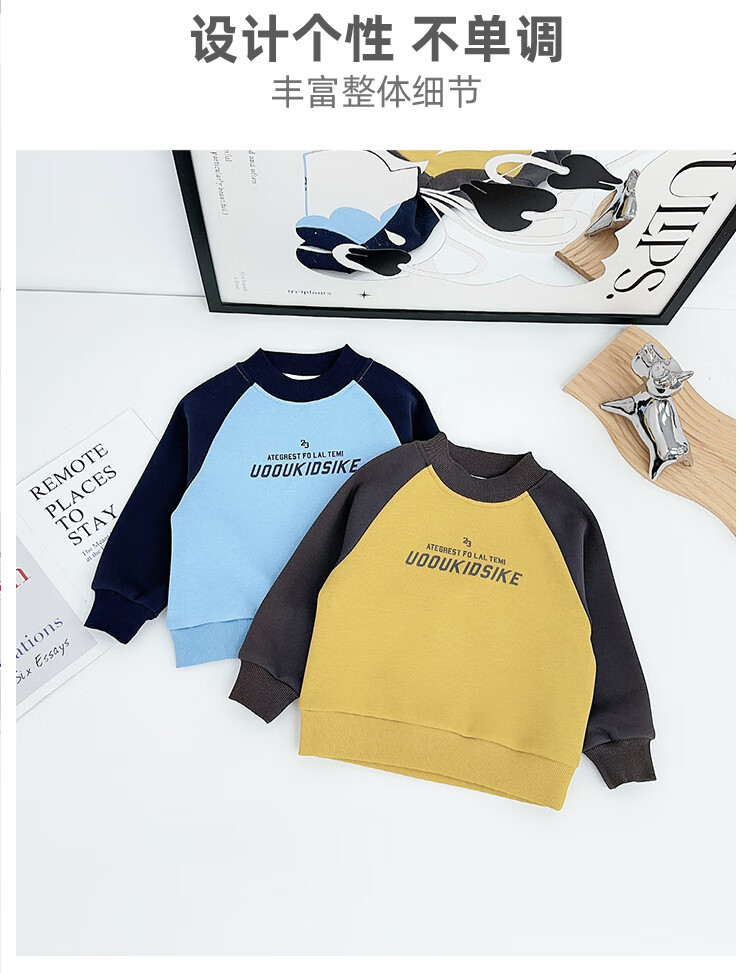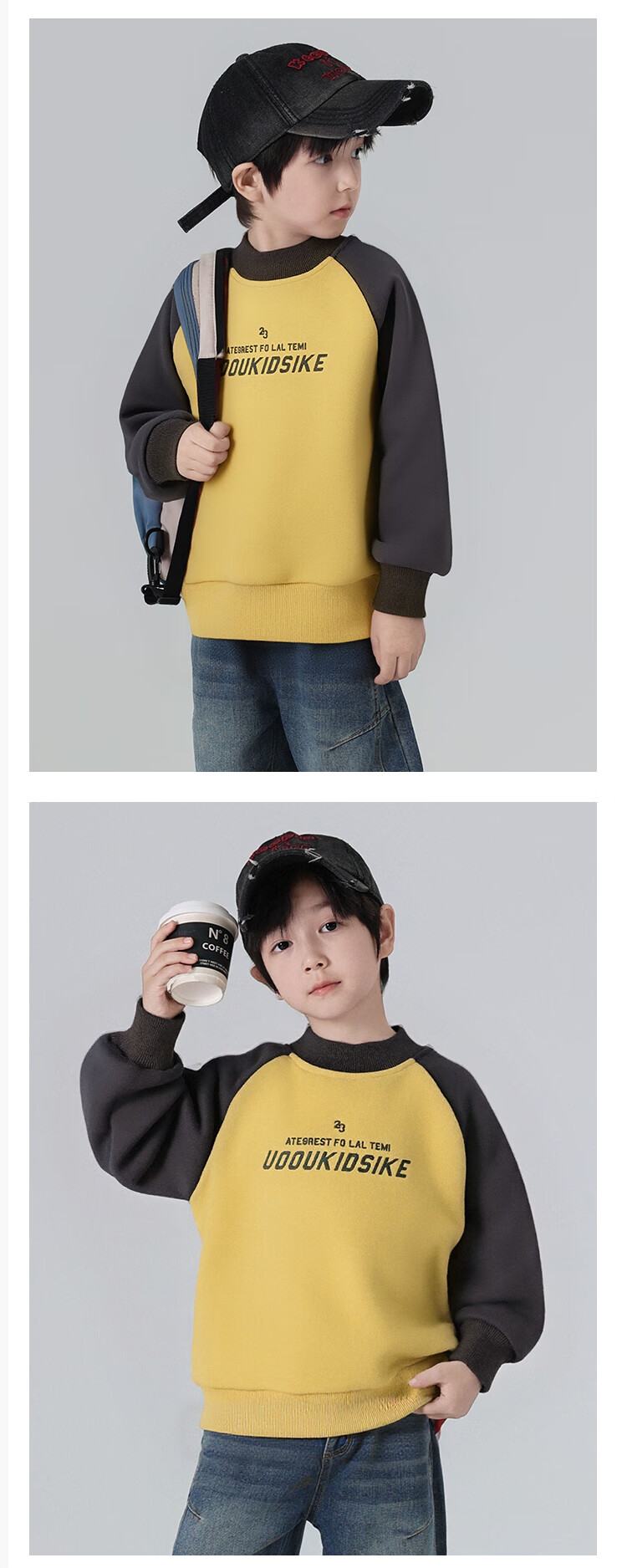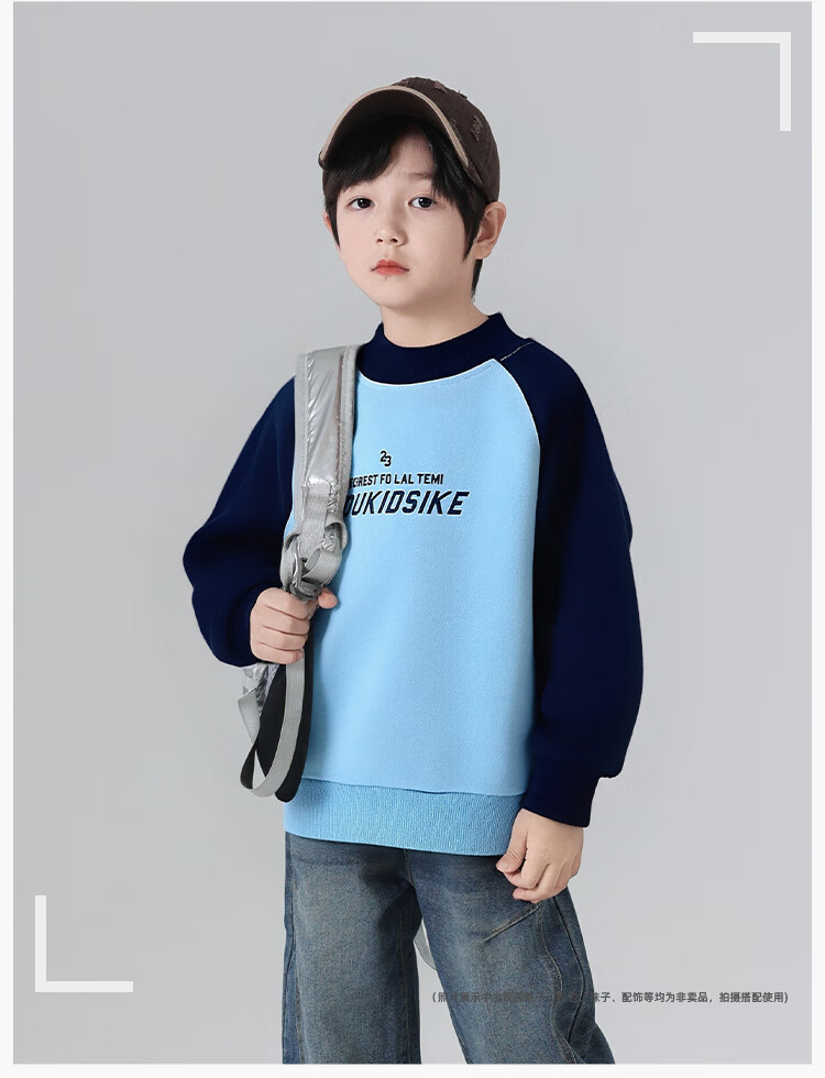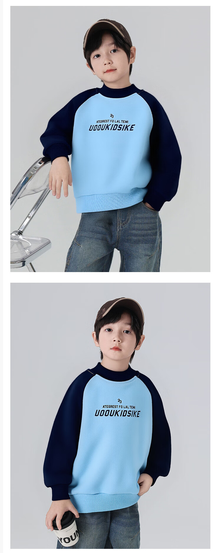 YOUYOUTONGHUA Herbst- und Winterpullover für Jungen und Samt, 2025, Kinder-Winterkleidung, modische Oberteile im westlichen Stil für mittlere und große Kinder, verdicktes Innenblau + Marineblau 100 52