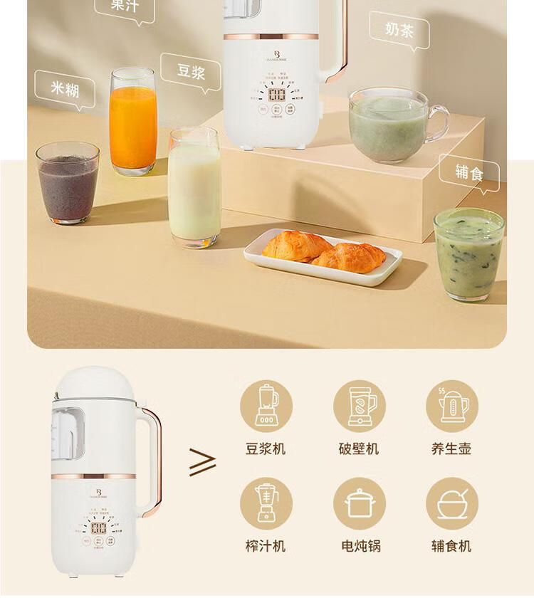 巴慕斯豆浆机智能语音旗舰款微压焖香多功能膳食破壁机数显全自动料理机 【小号基础款】1-2人用 0.8L