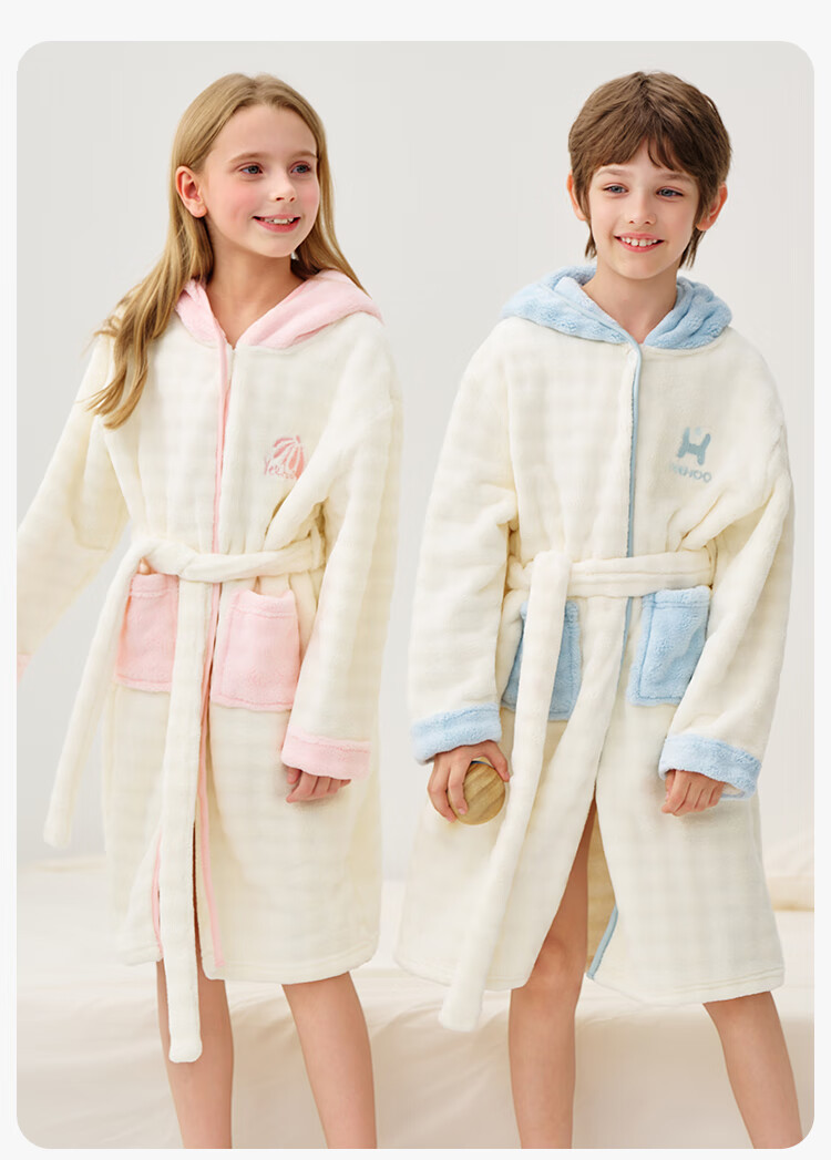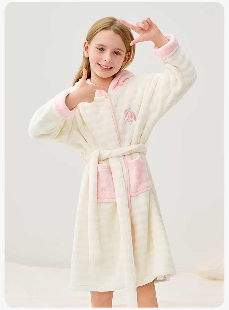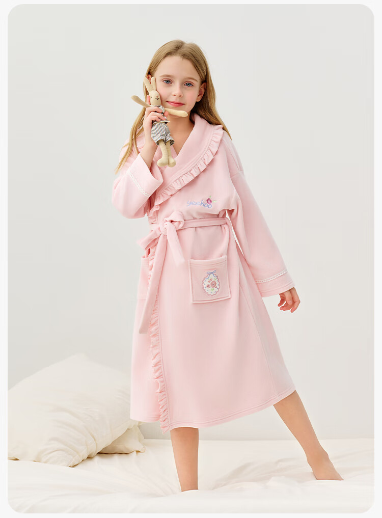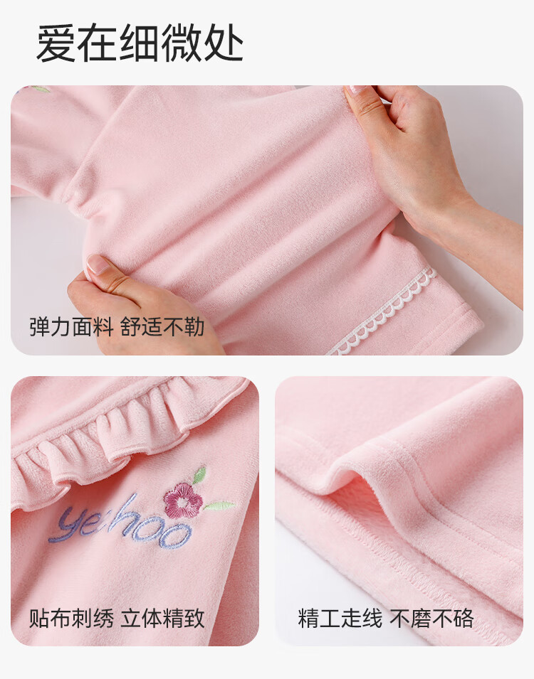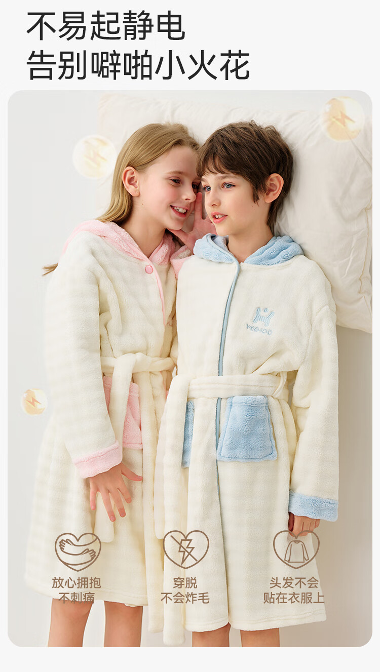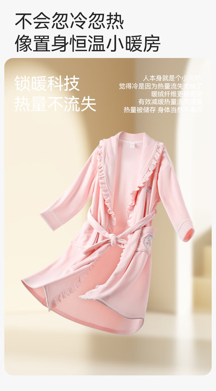 英氏(YEEHOO)儿童睡袍男女童秋冬聚热锁温【速干吸湿】不易掉毛连帽睡衣 马卡龙粉 【320g】 140