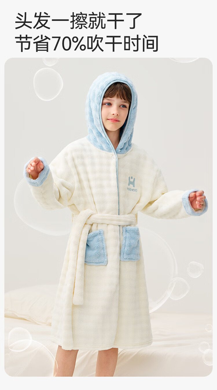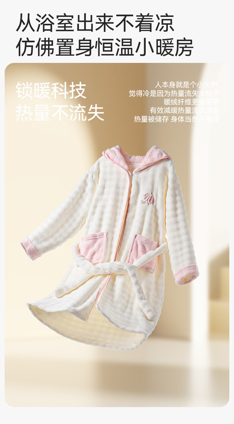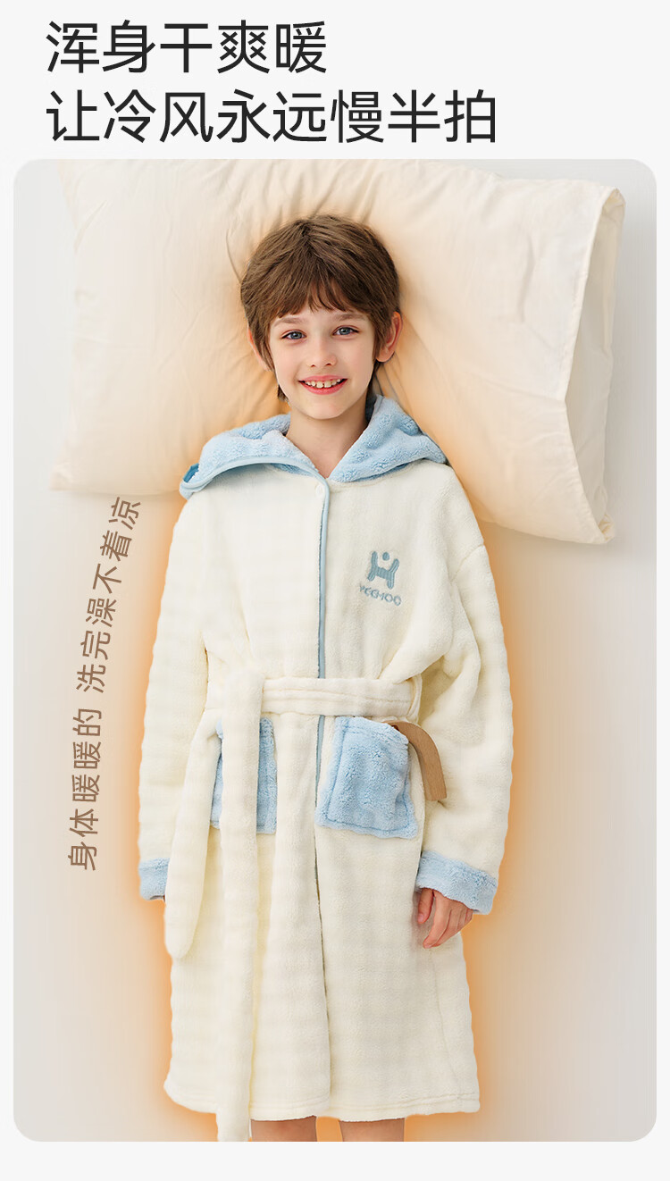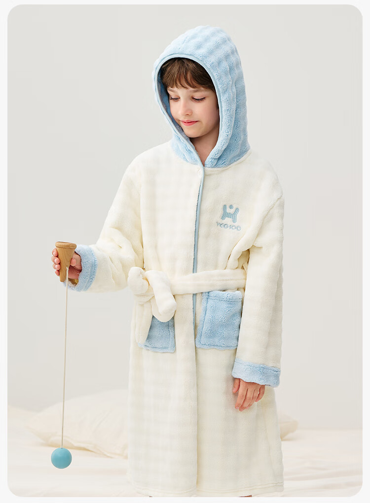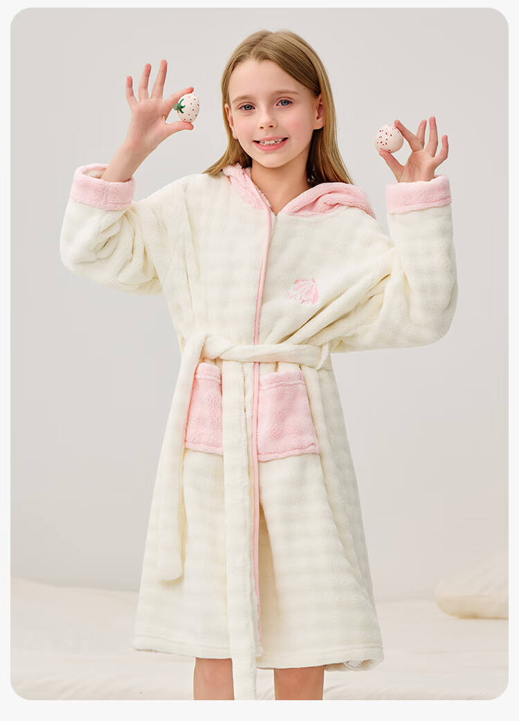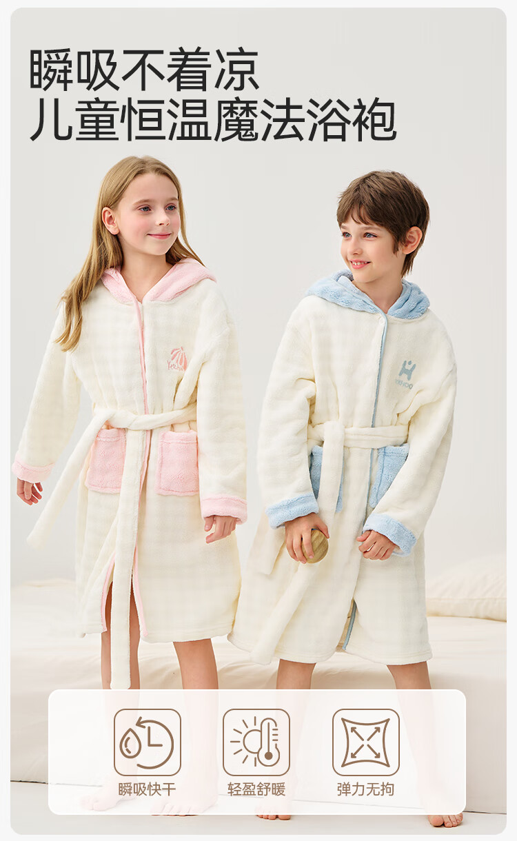英氏(YEEHOO)儿童睡袍男女童秋冬聚热锁温【速干吸湿】不易掉毛连帽睡衣 马卡龙粉 【320g】 140