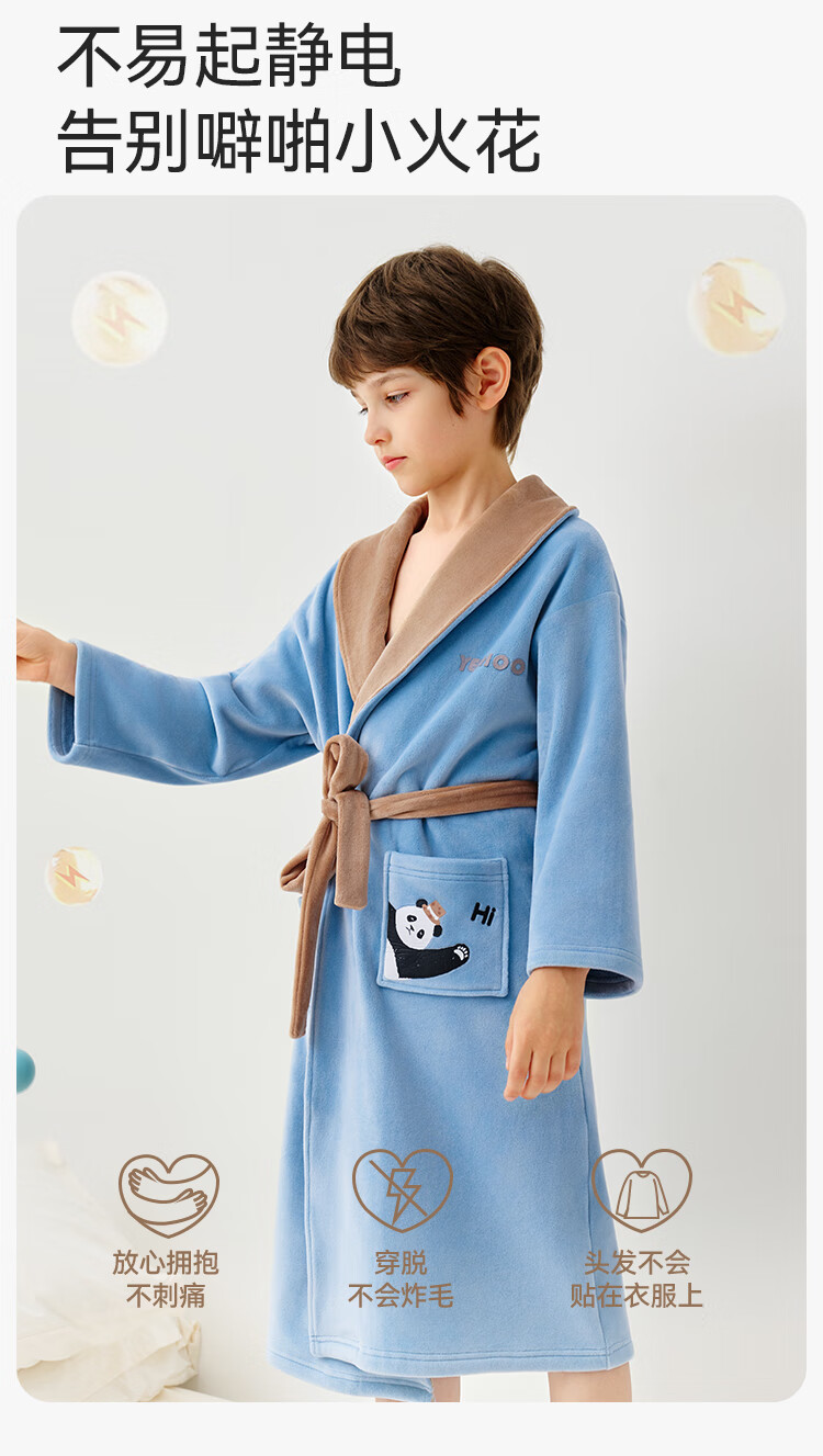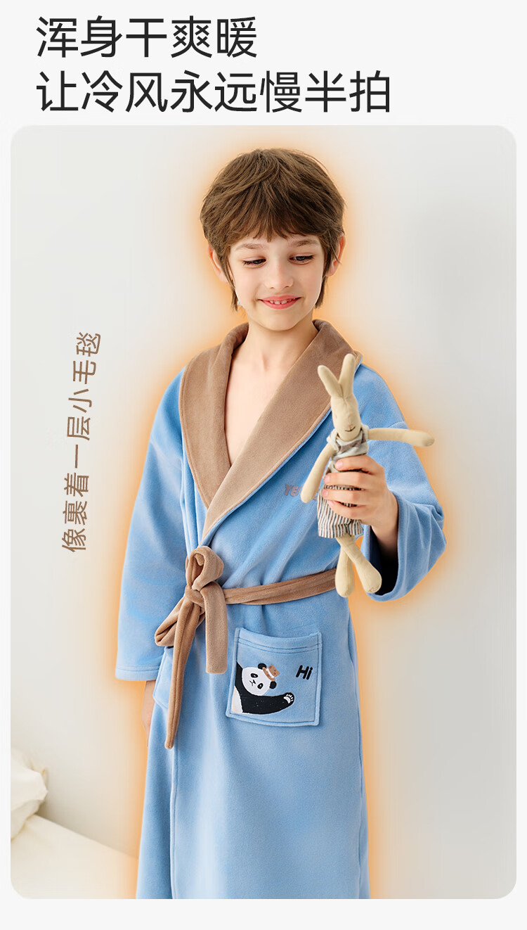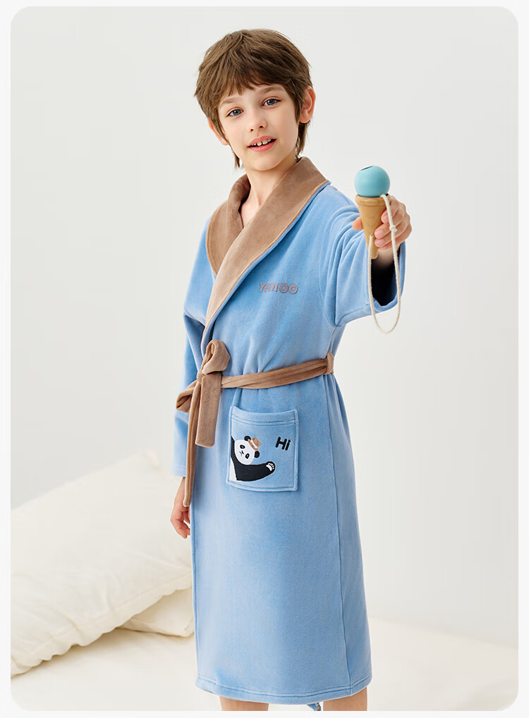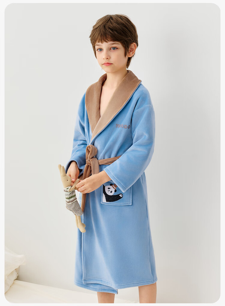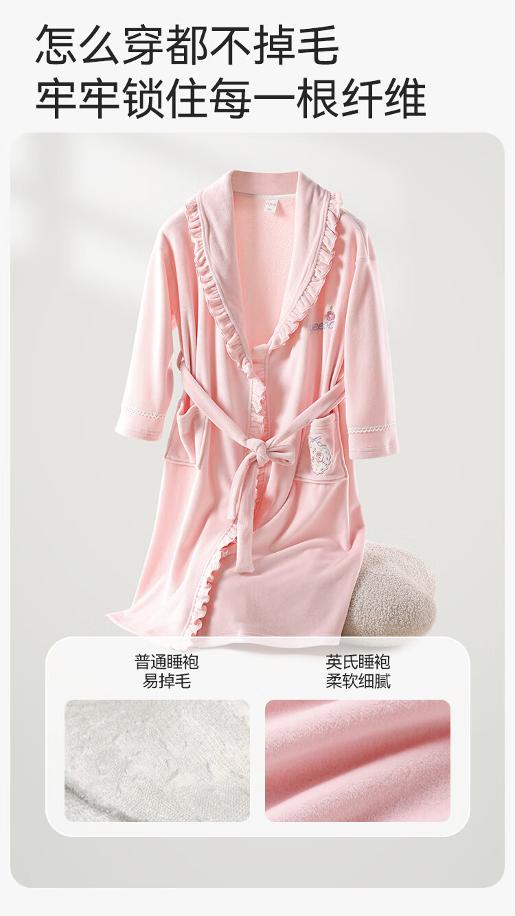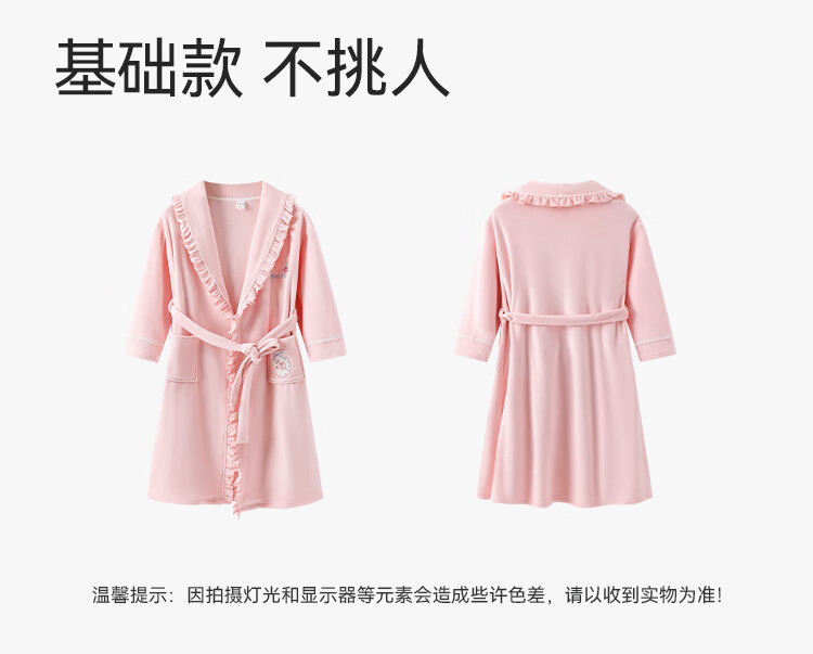 英氏(YEEHOO)儿童睡袍男女童秋冬聚热锁温【速干吸湿】不易掉毛连帽睡衣 马卡龙粉 【320g】 140