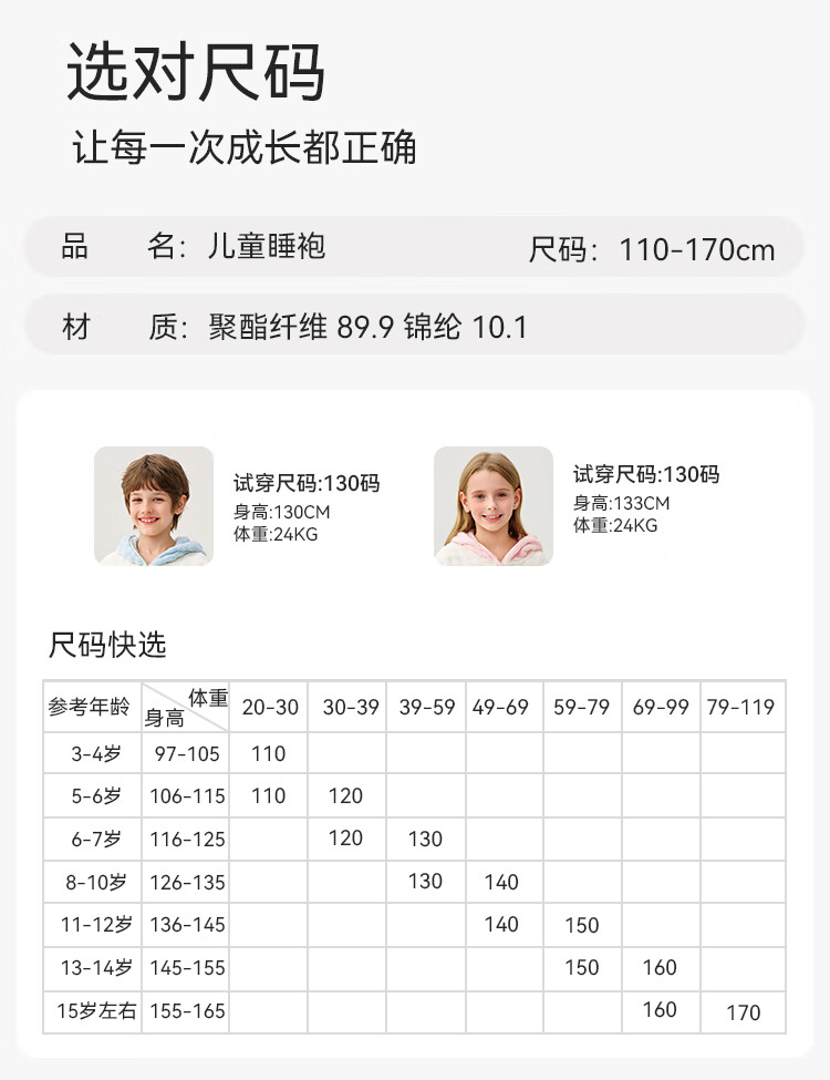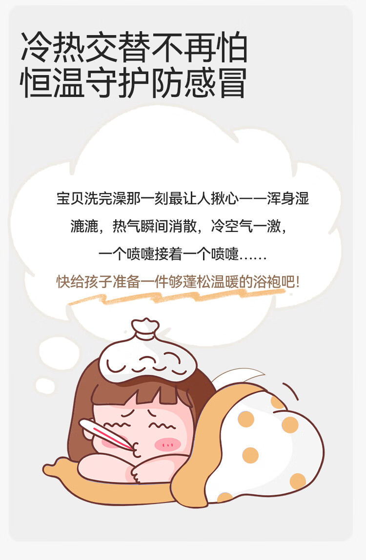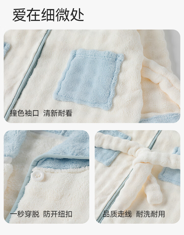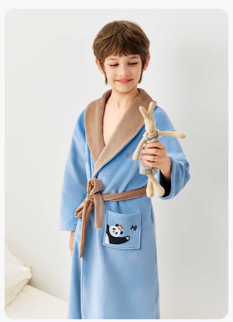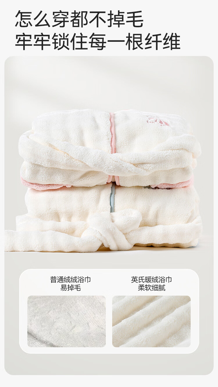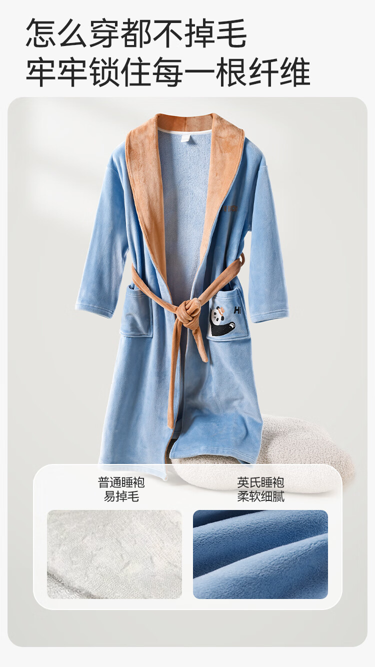 英氏(YEEHOO)儿童睡袍男女童秋冬聚热锁温【速干吸湿】不易掉毛连帽睡衣 马卡龙粉 【320g】 140