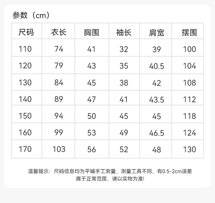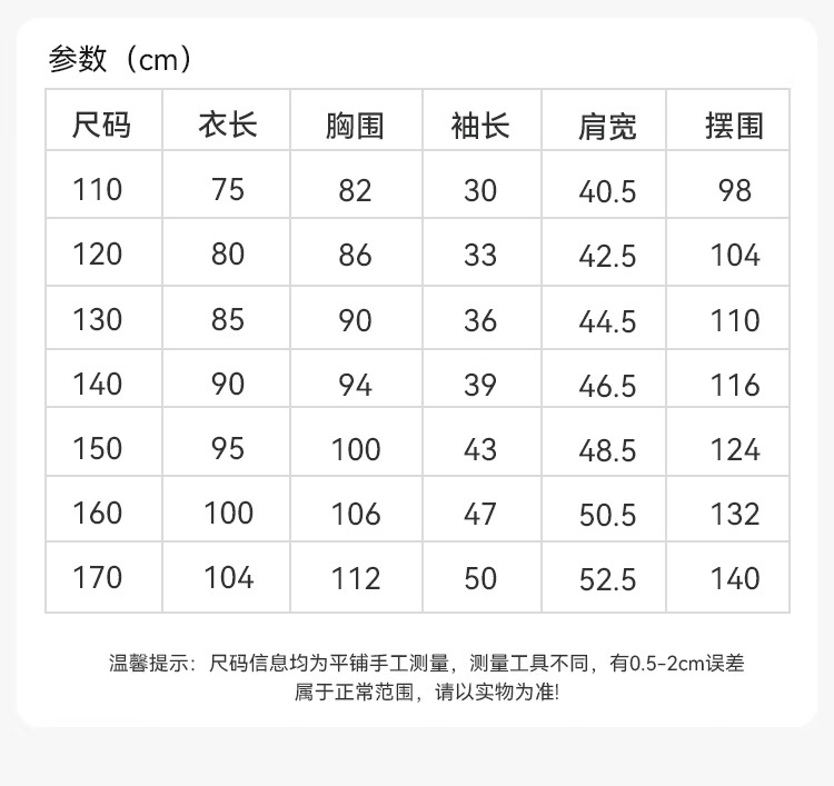 Size (cm) 42 44 46 48 50